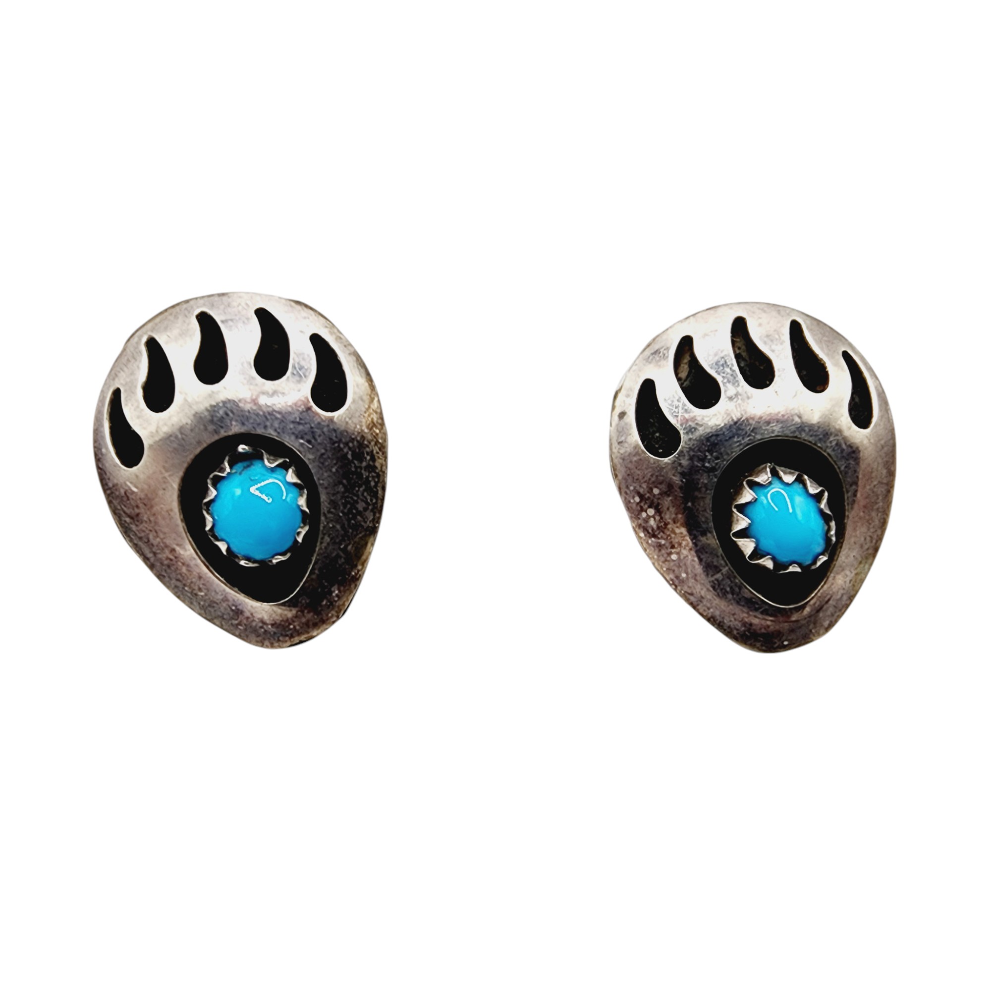 Sterling Shadowbox Turquoise Bear Paw Stud Earrings 1.9g