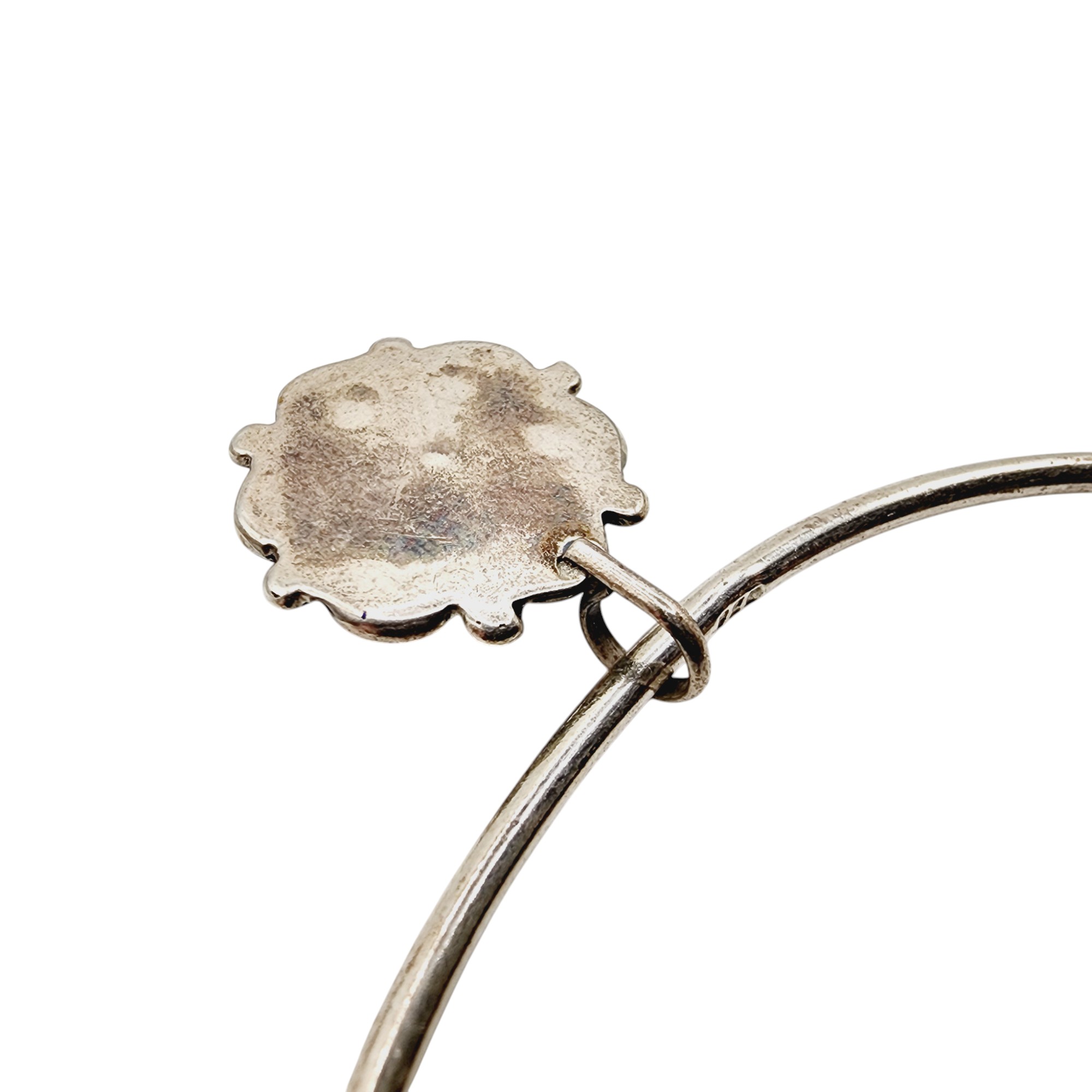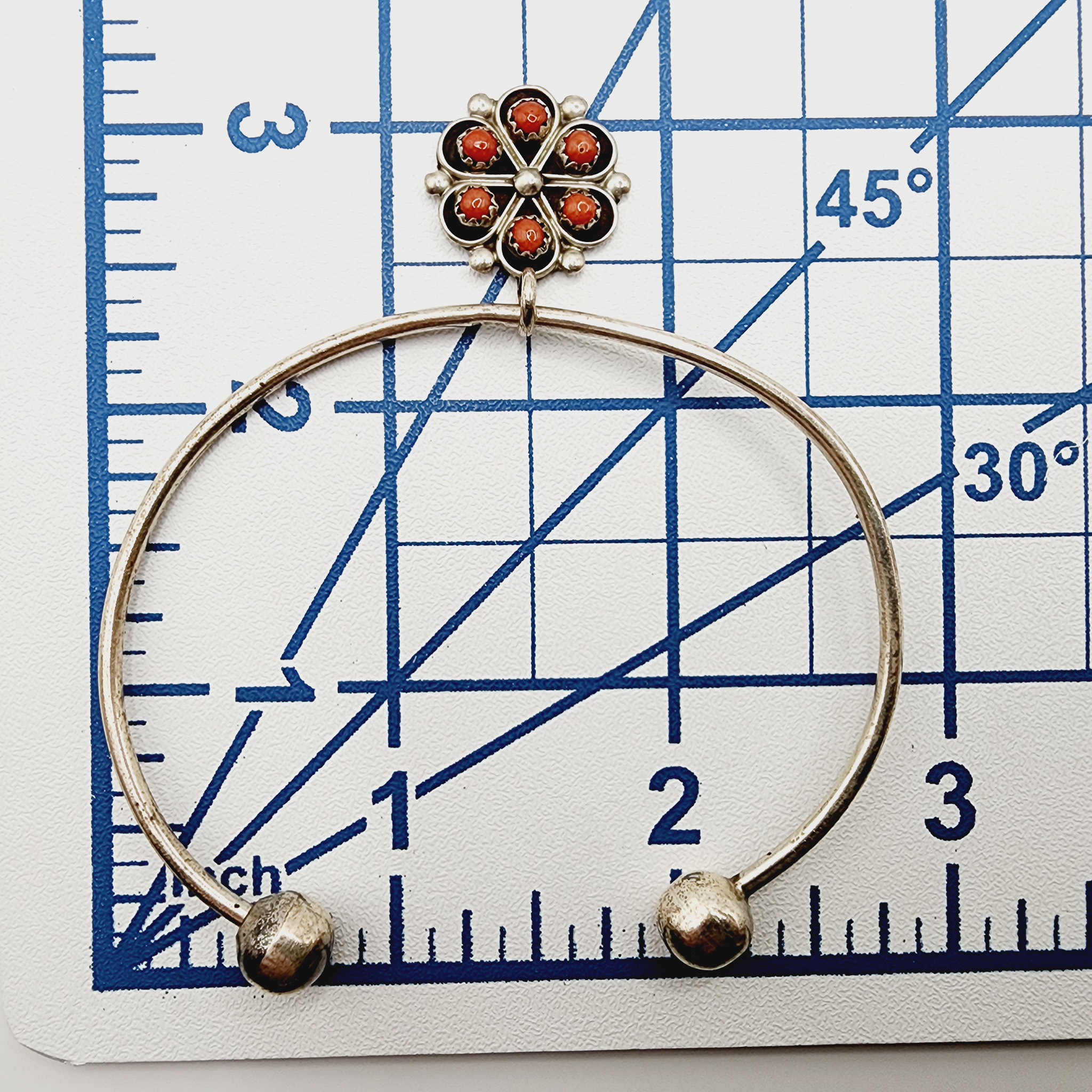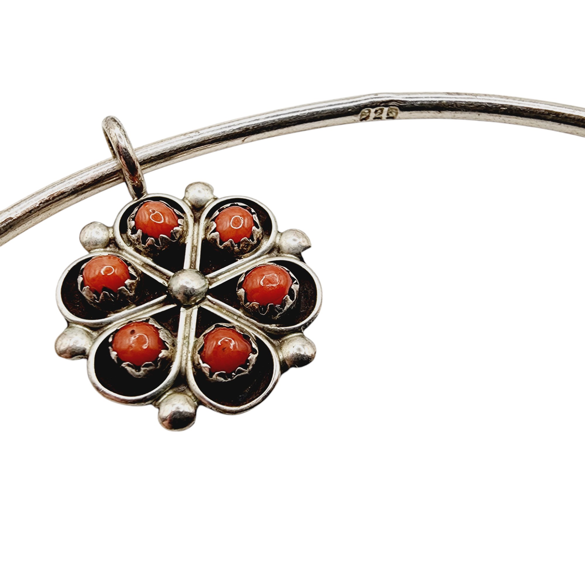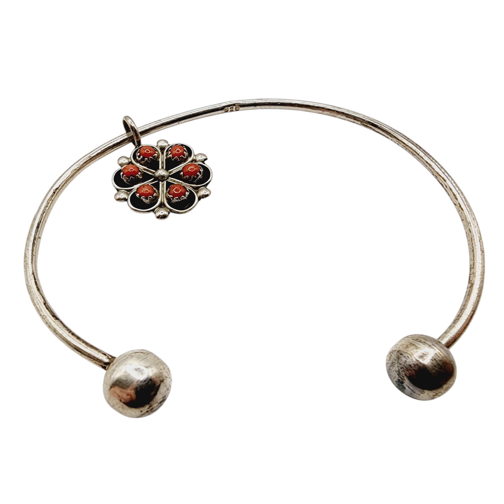 Sterling Bead Bangle with Coral Cluster Charm 9.8g