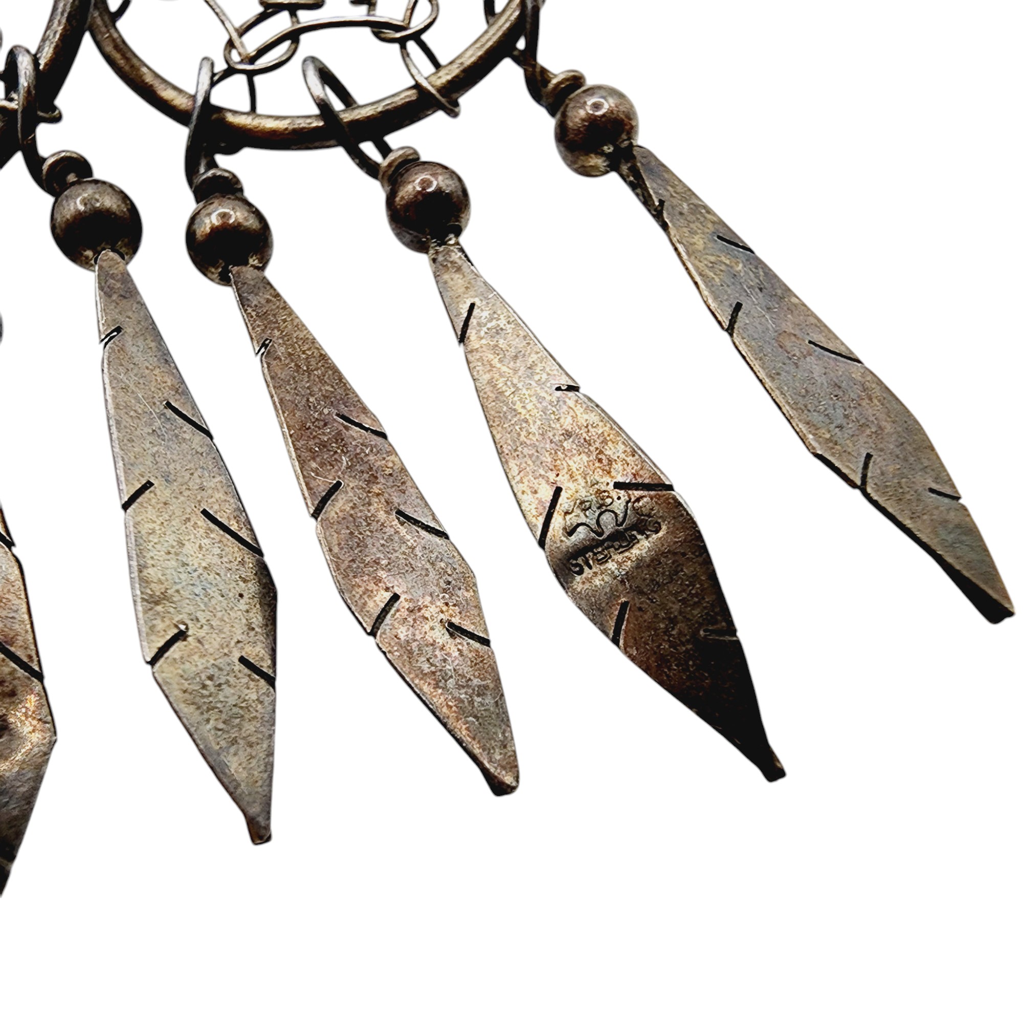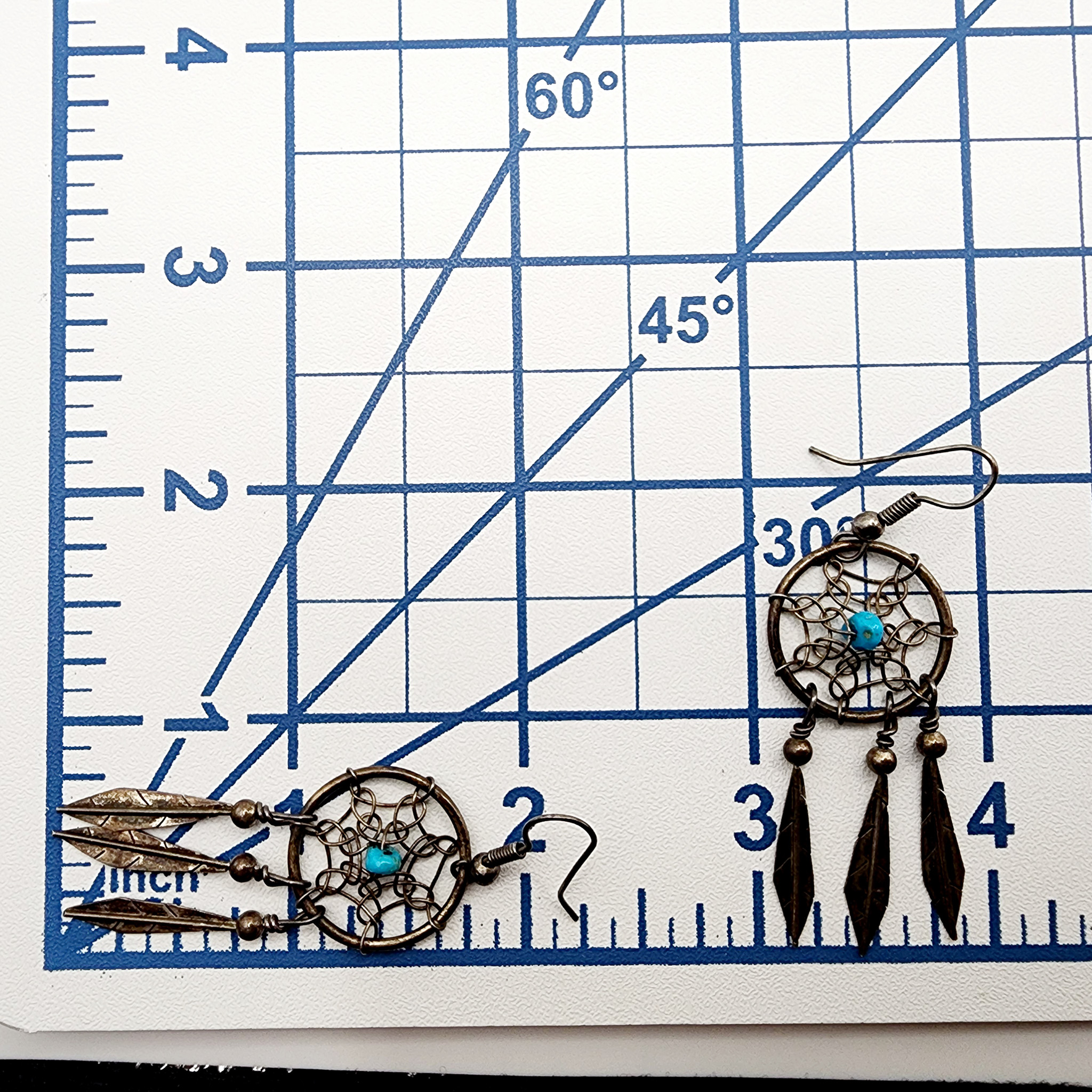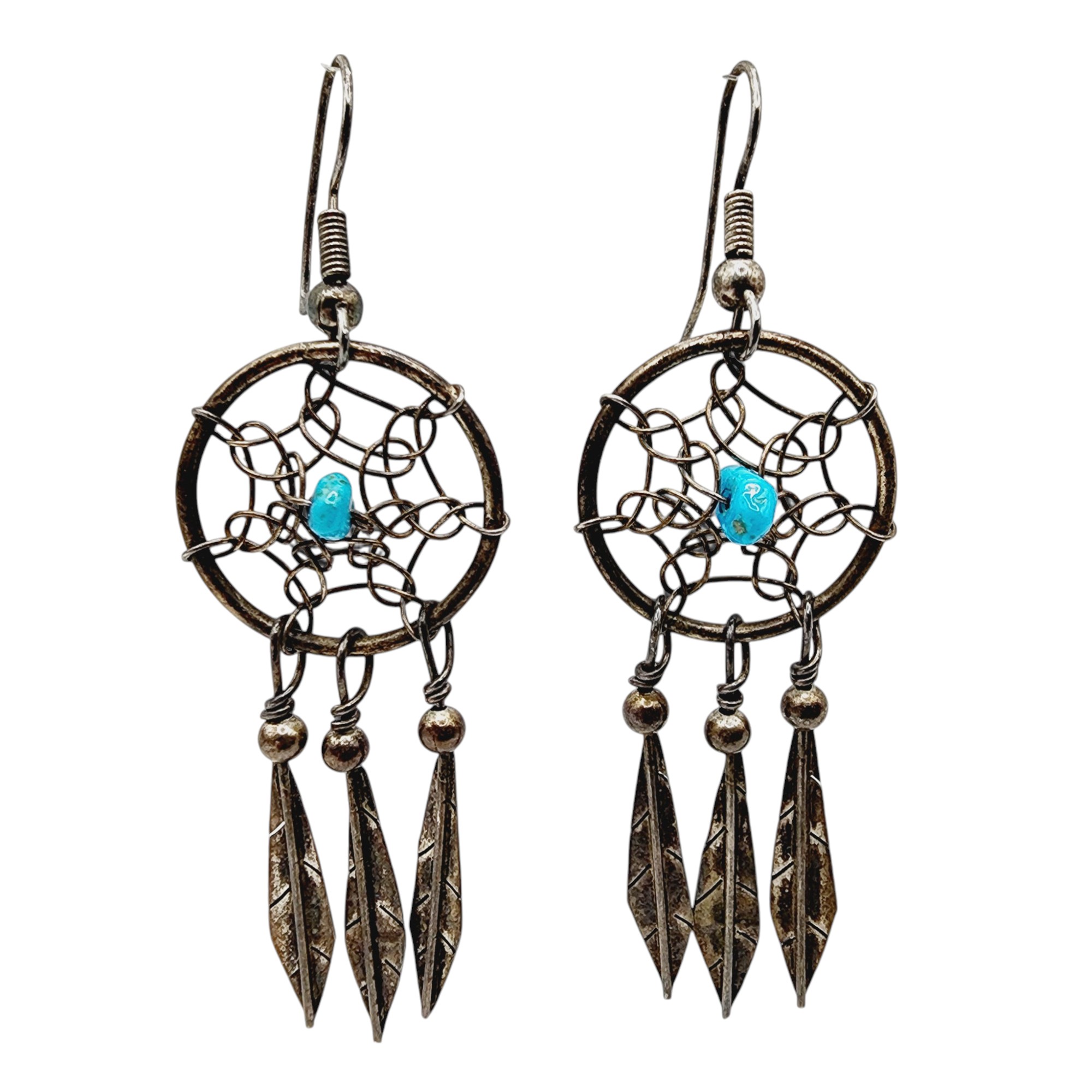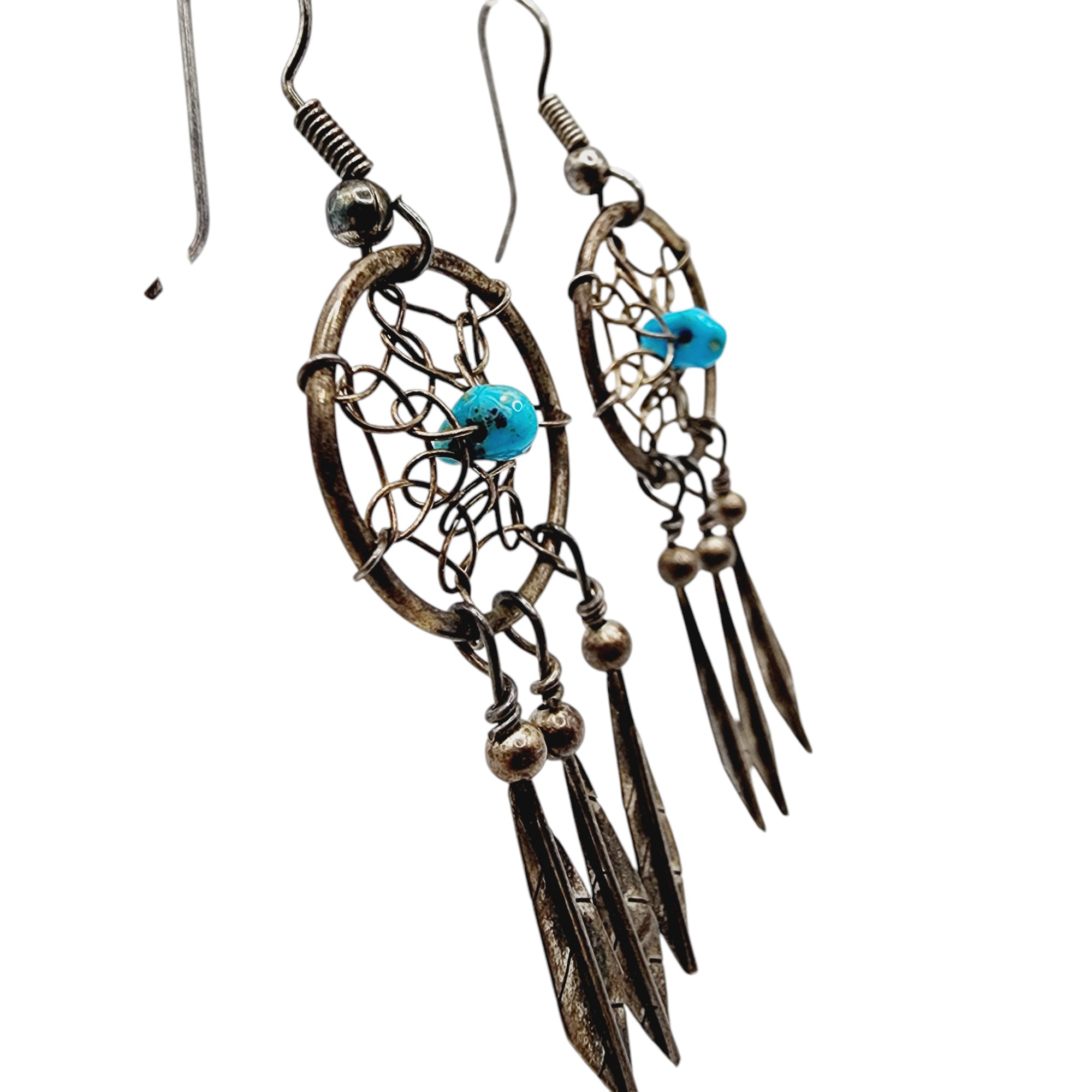 Sterling Running Bear Turquoise Dreamcatcher Dangle Earrings 5.2g