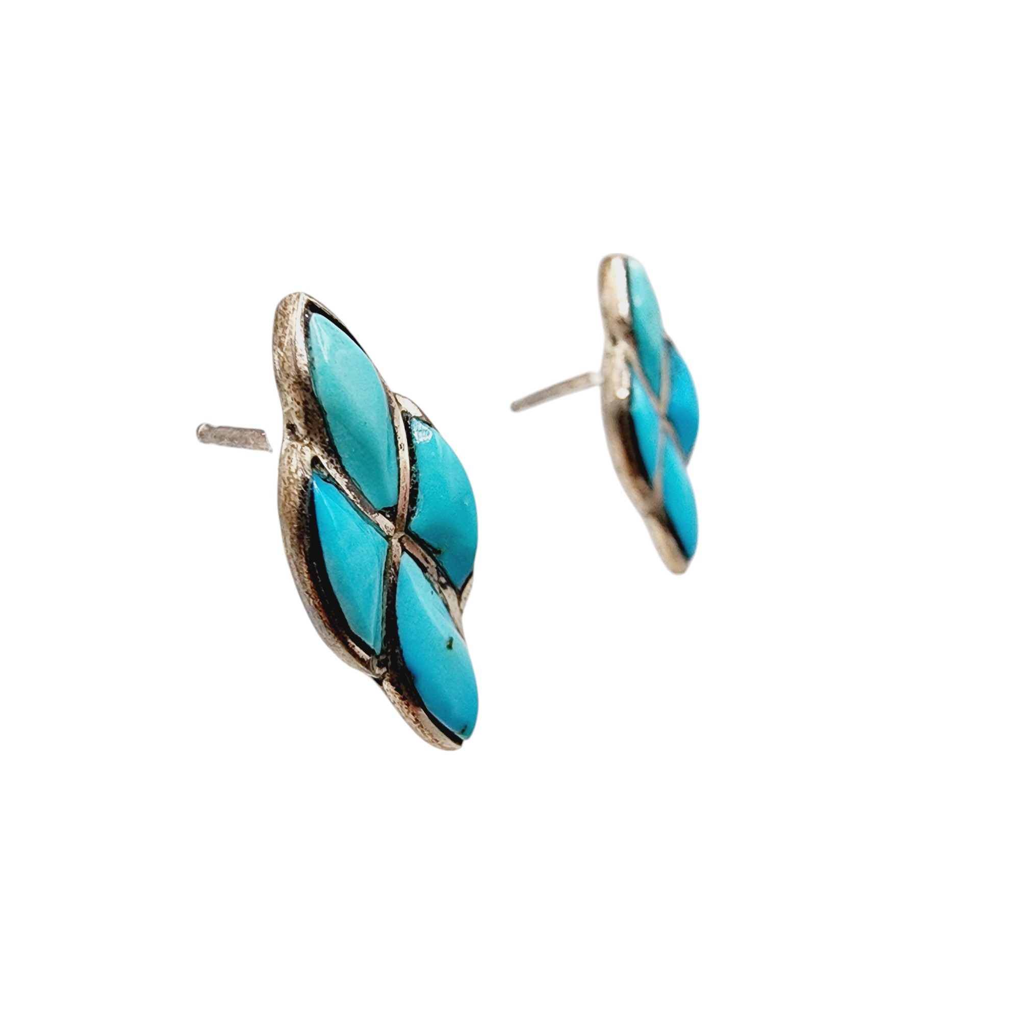 Sterling Turquoise Inlay Stud Earrings 1.9g