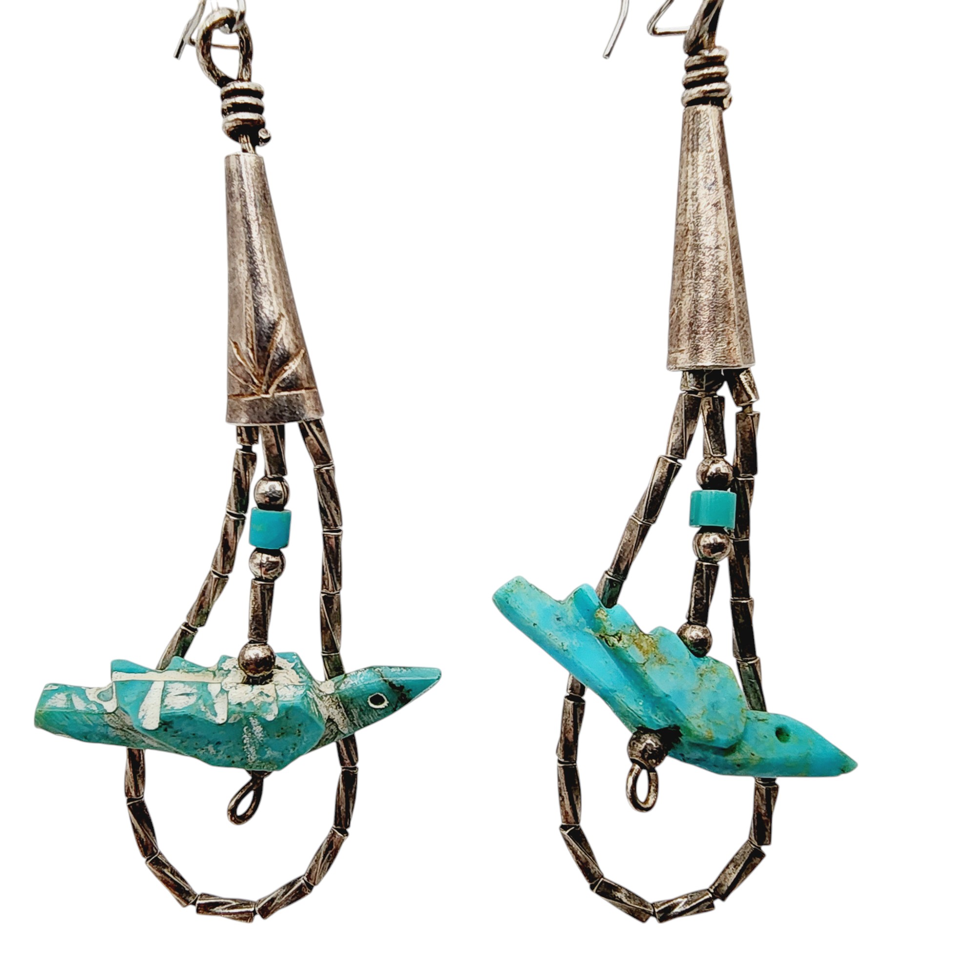 Sterling Liquid Silver Fetish Bead Dangle Earrings 4.2g