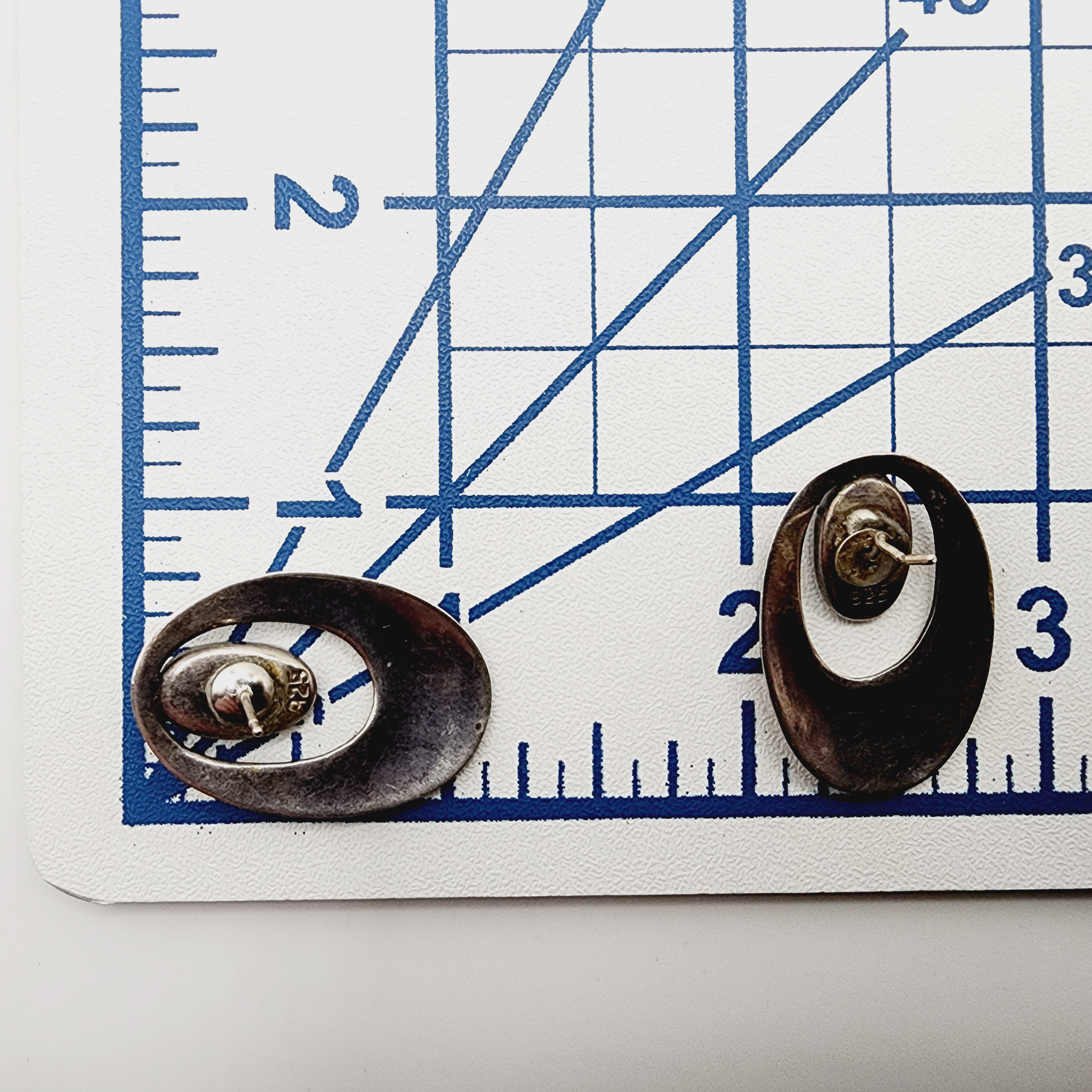 Sterling Onyx Oval Stud Earrings 6g as is bent post