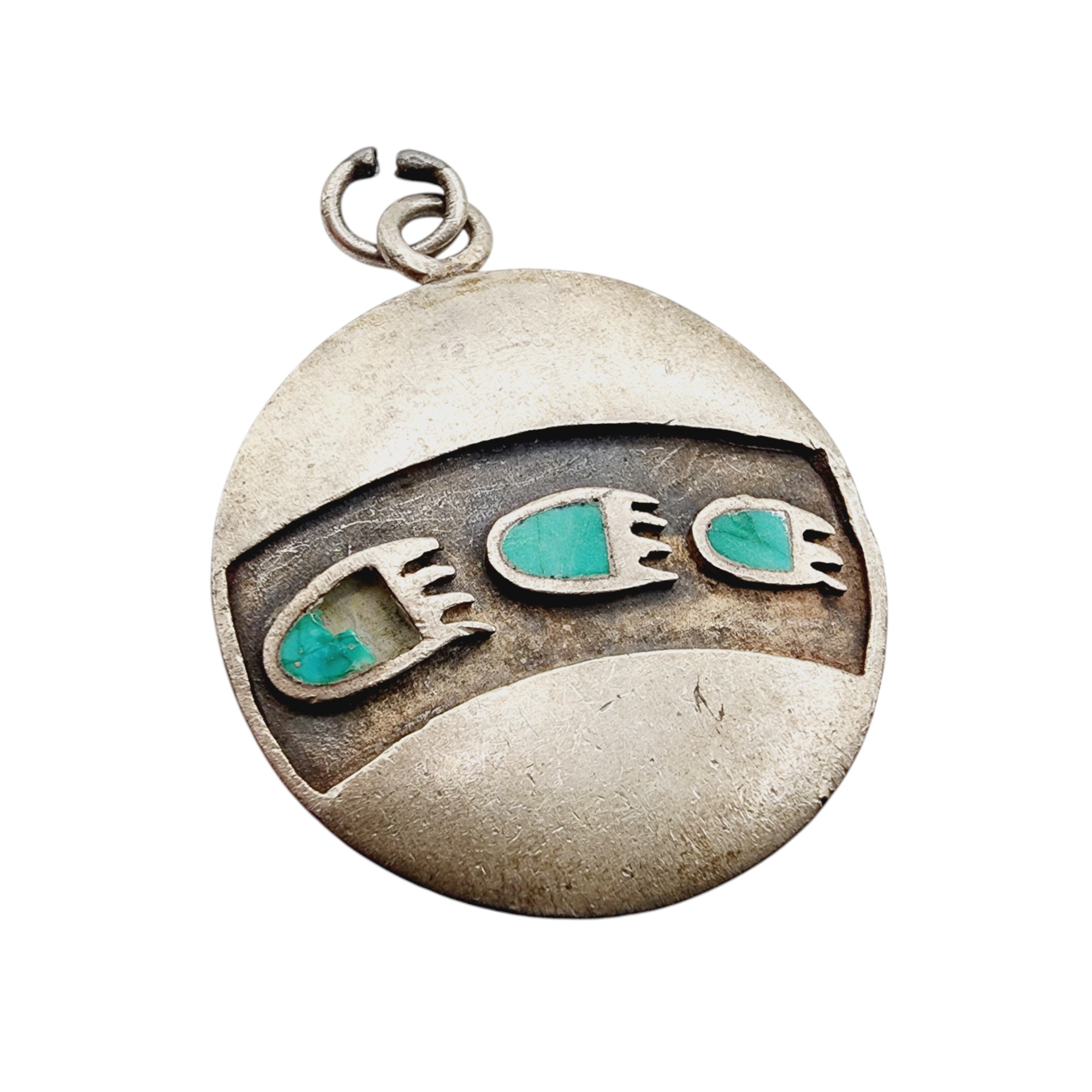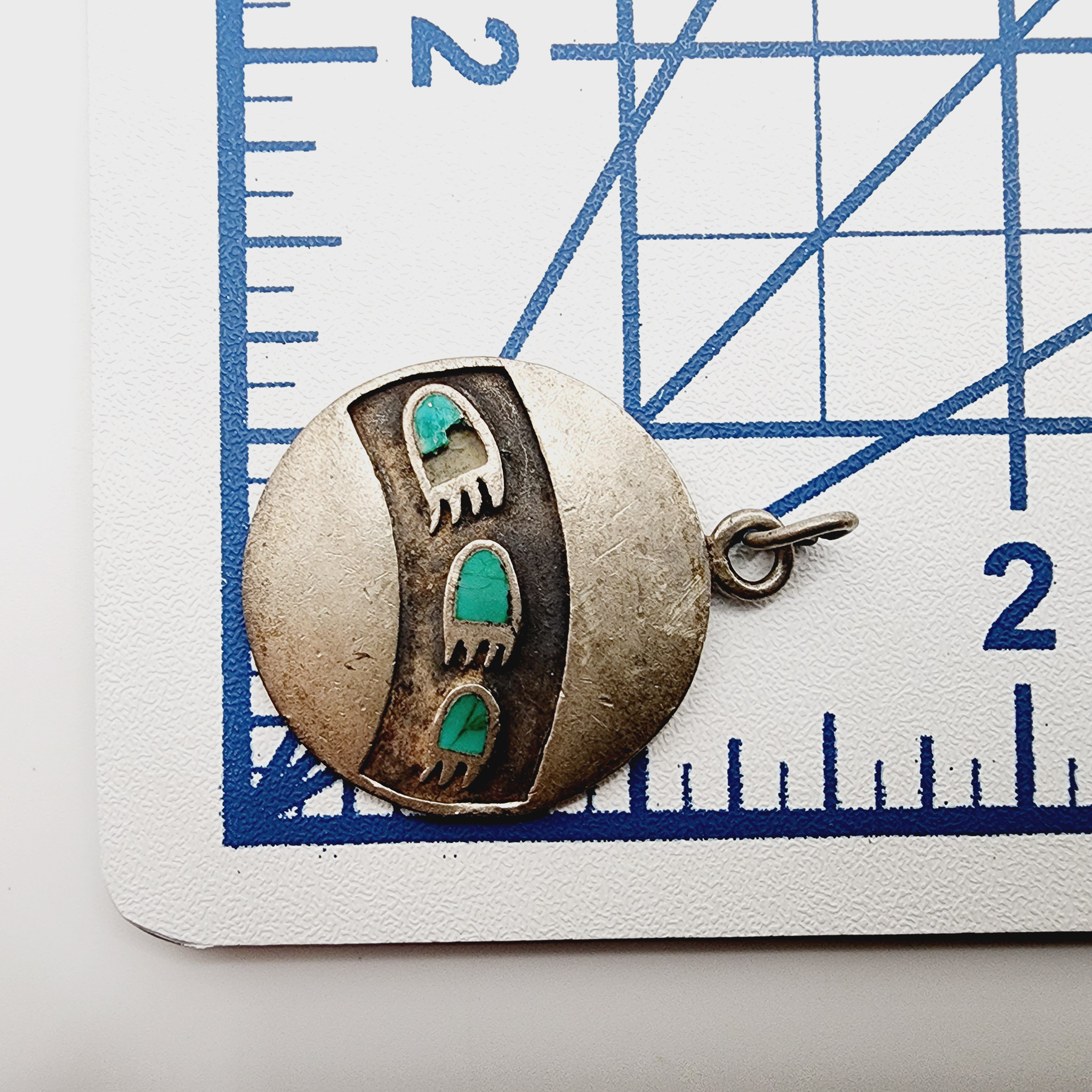 Sterling Vintage Bear Paw Turquoise Inlay Pendant As Is 8.4g