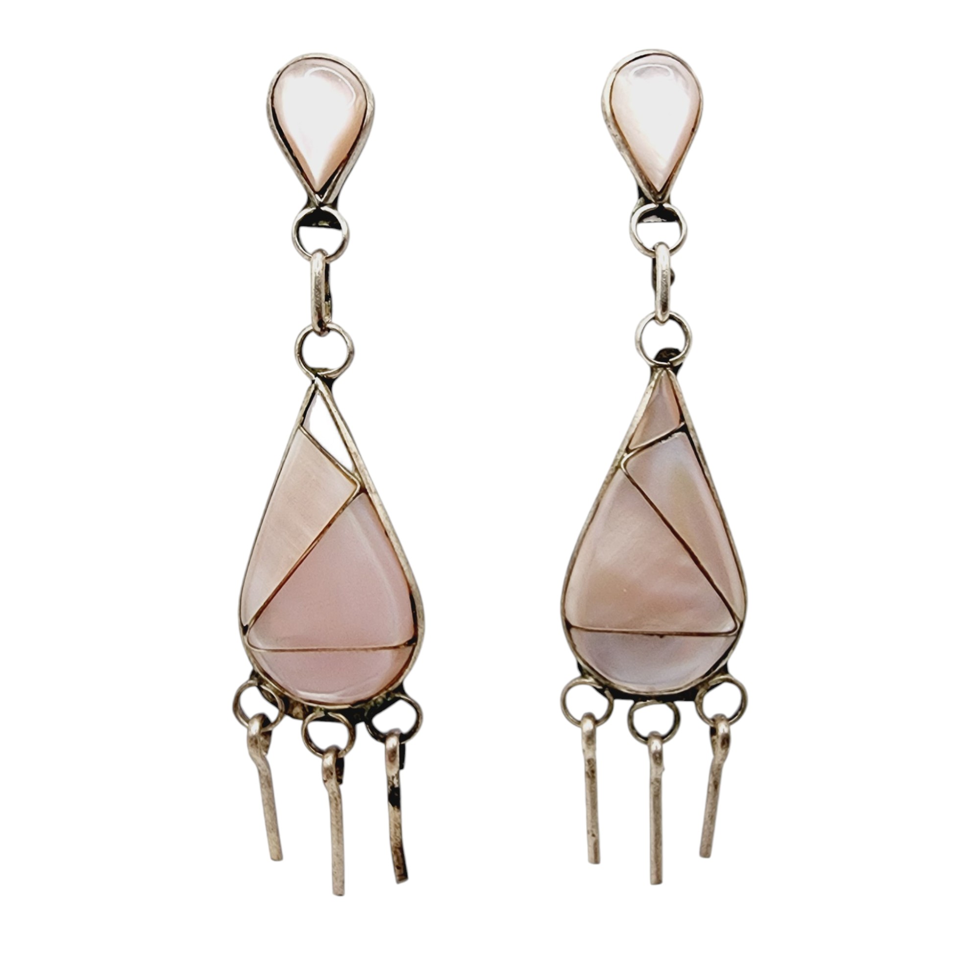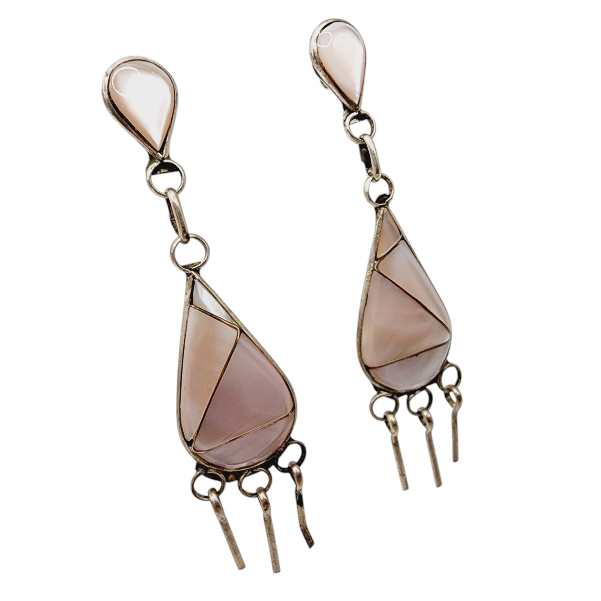 Sterling Mother of Pearl Inlay Tassel Earrings 5.4g
