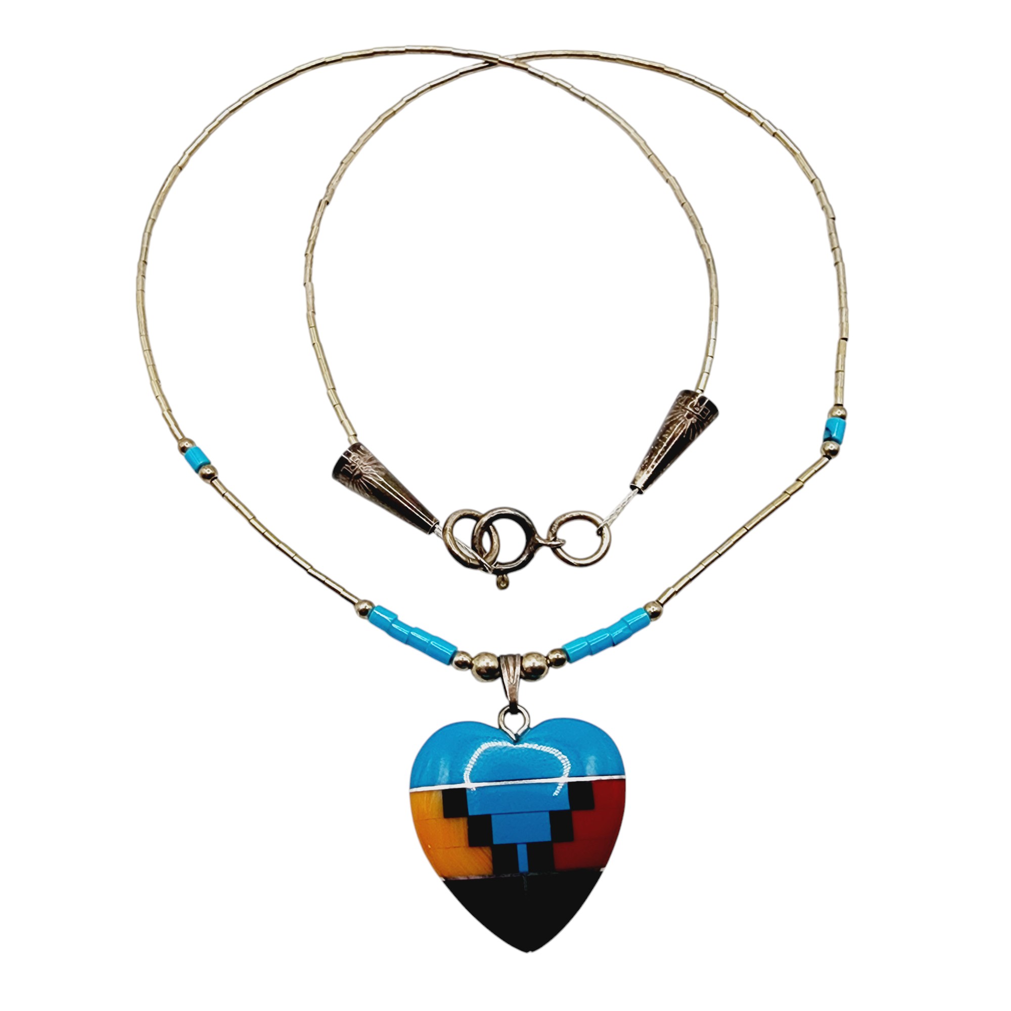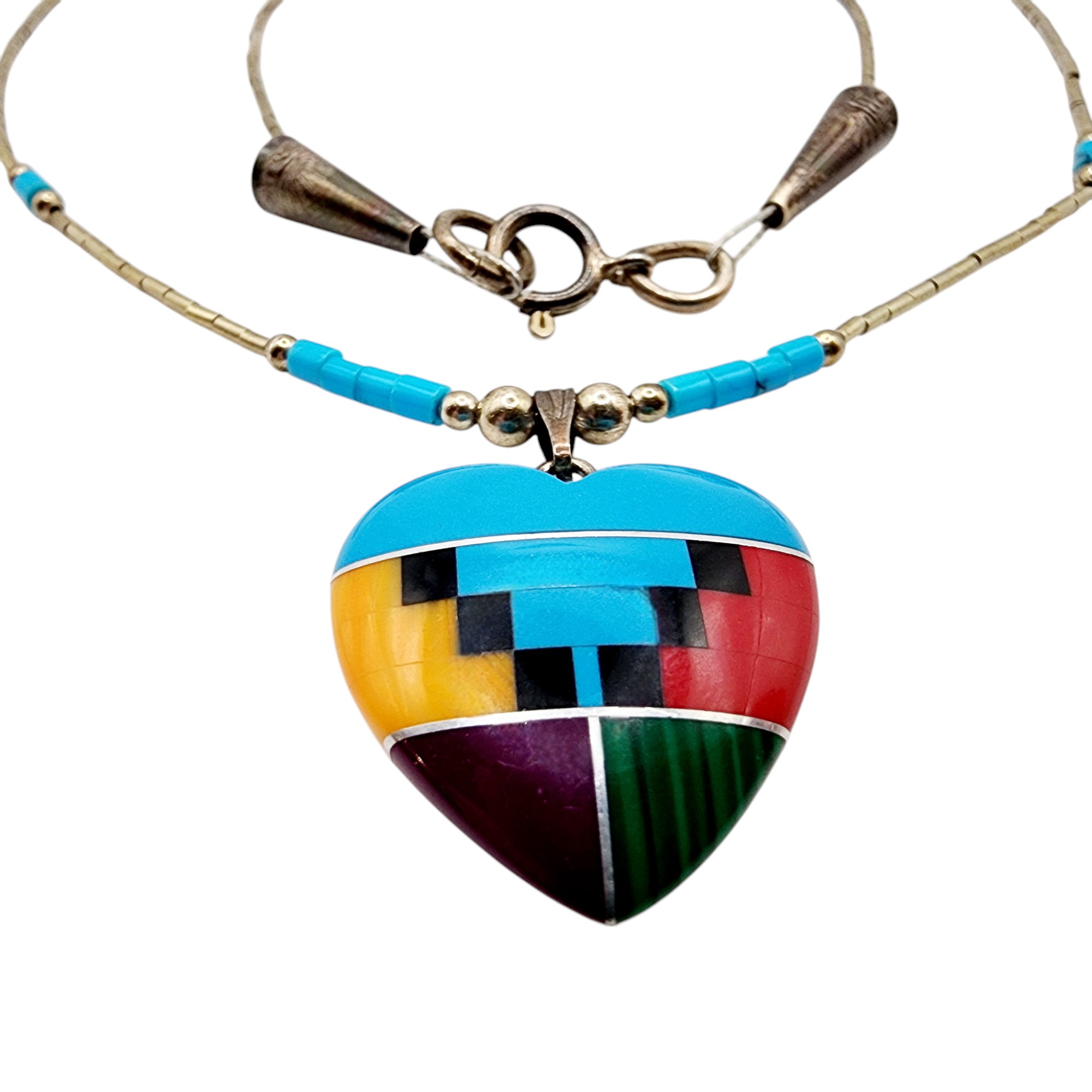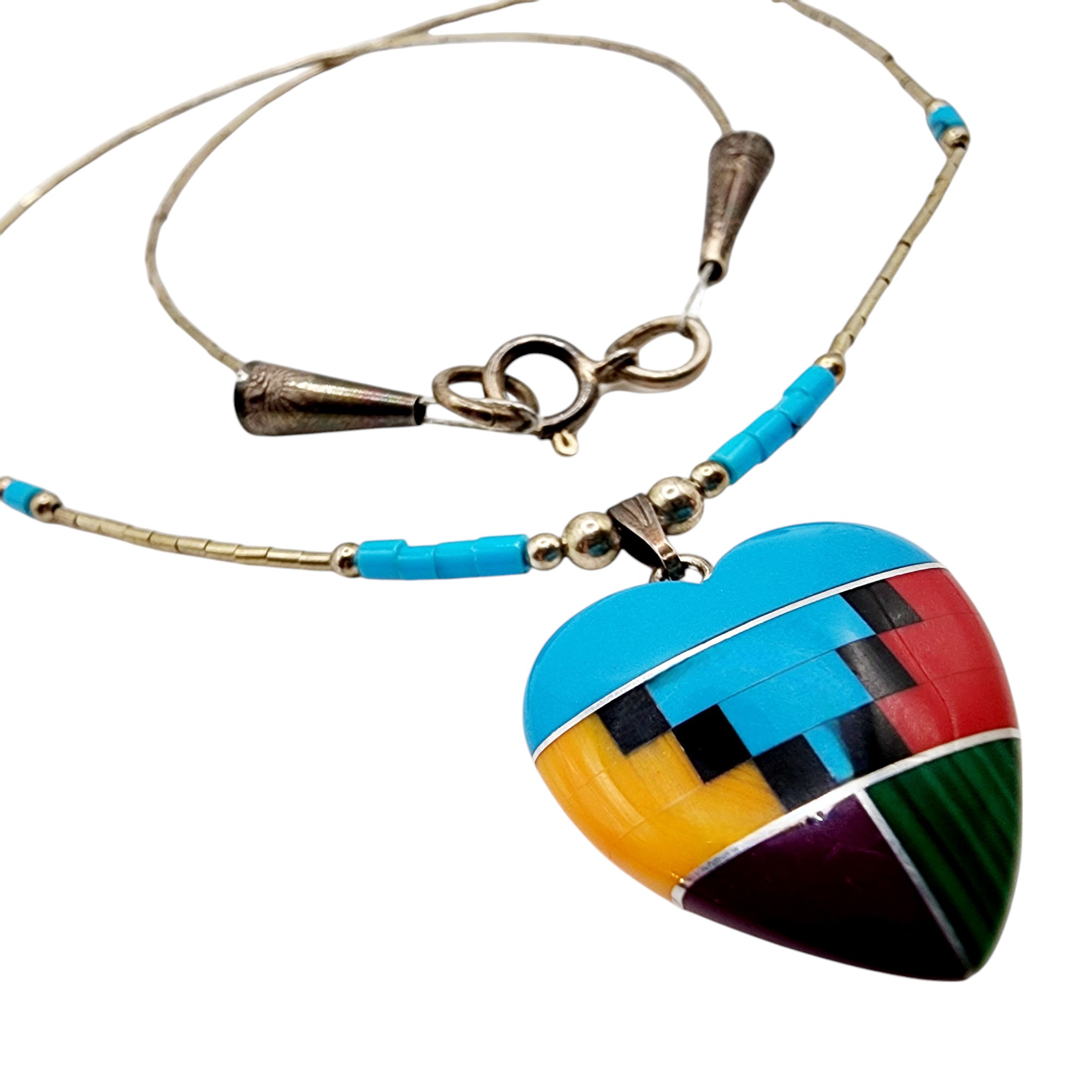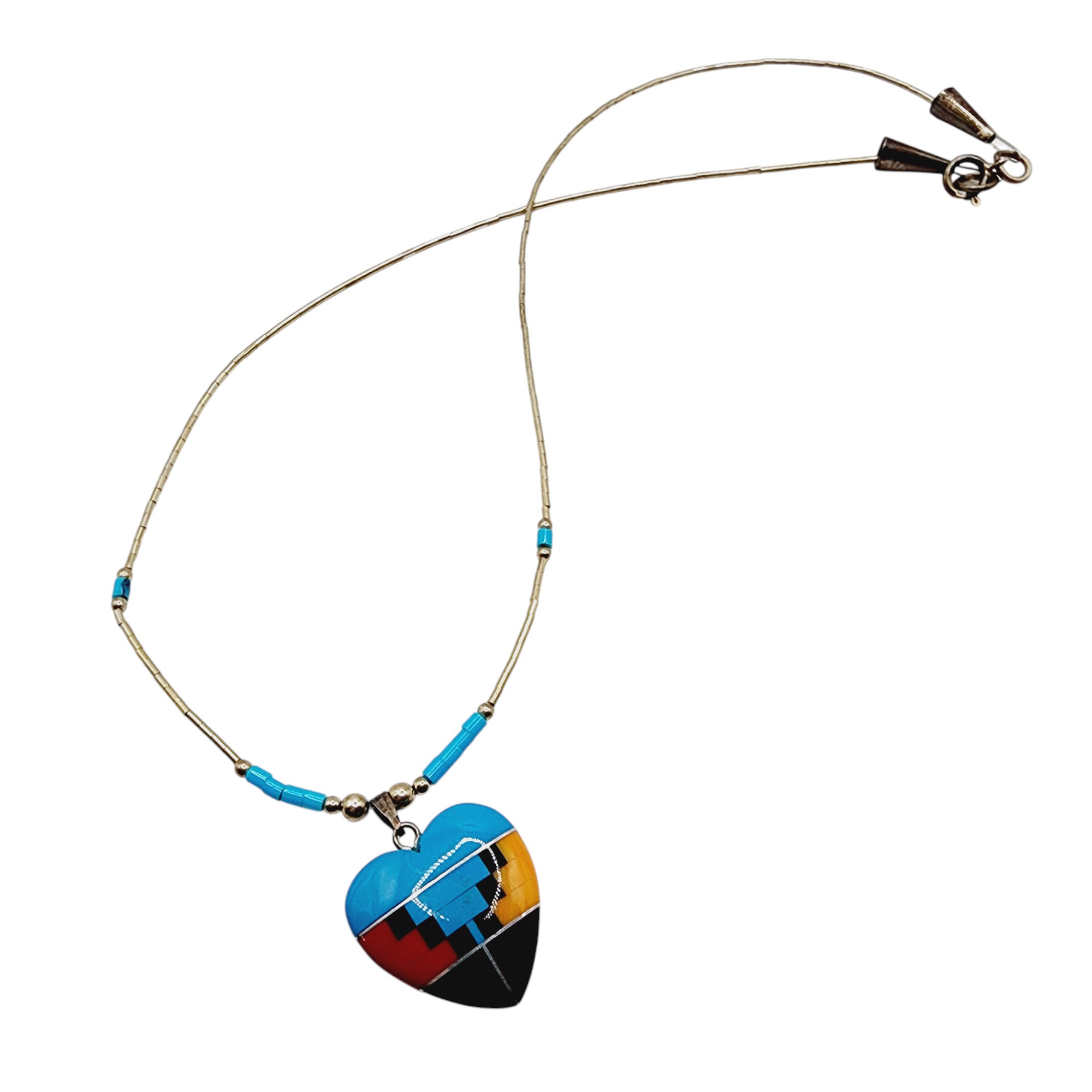 Sterling Liquid Silver Heart Inlay Necklace 6.2