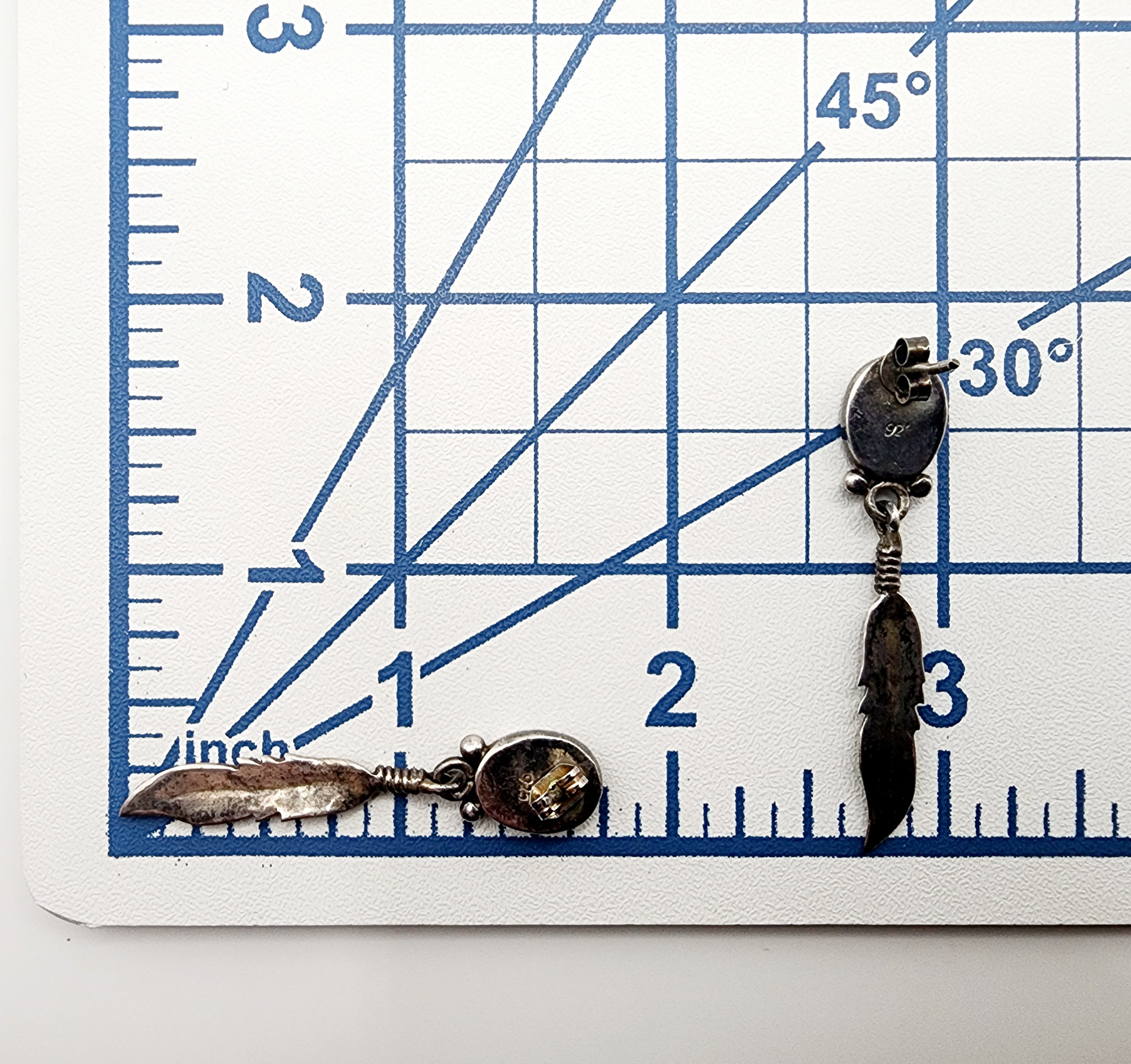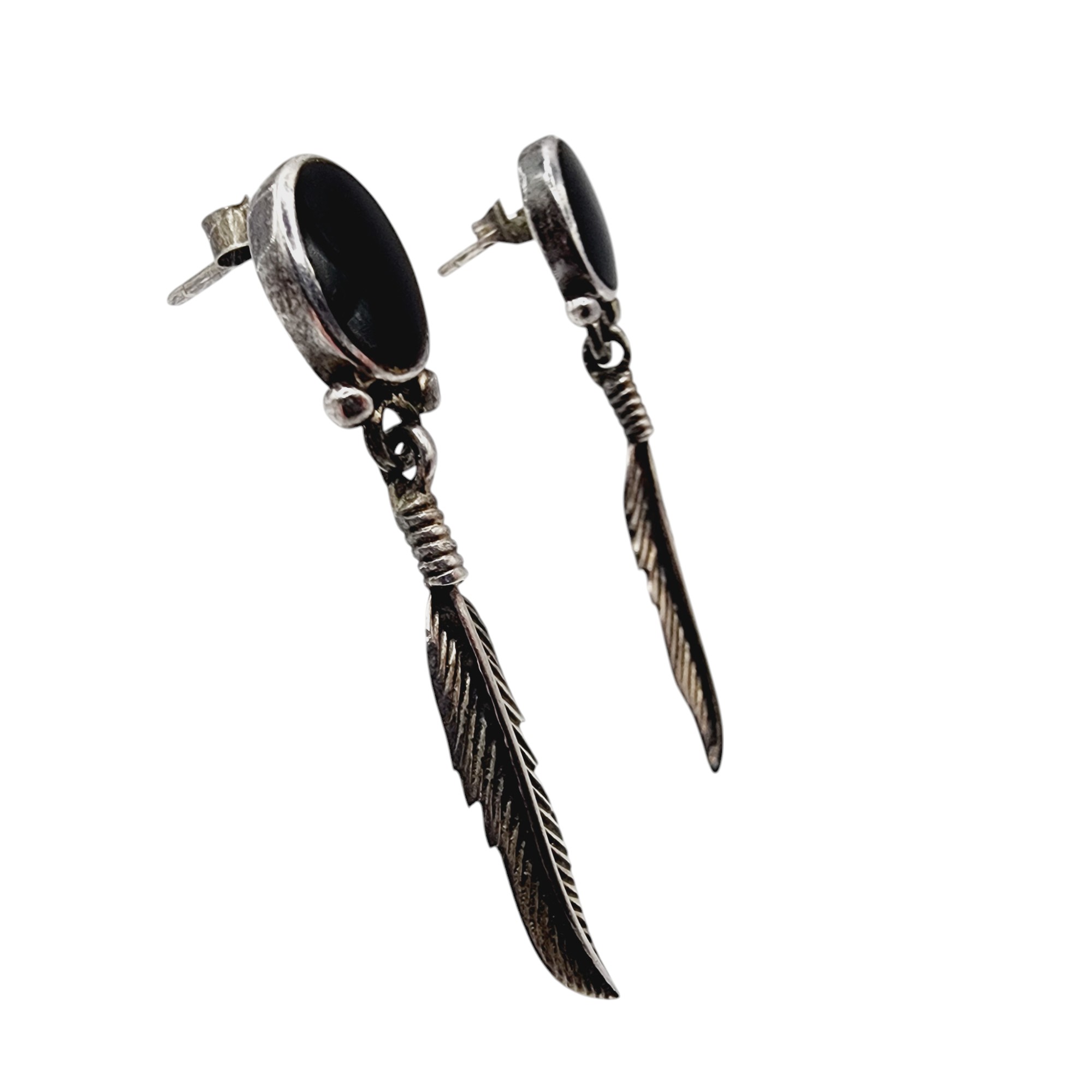 Sterling Navajo Onyx Feather Dangle Earrings 4.9g