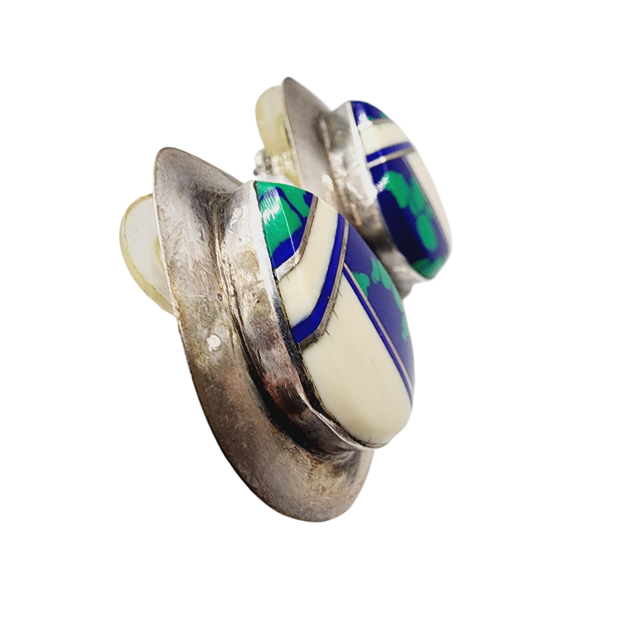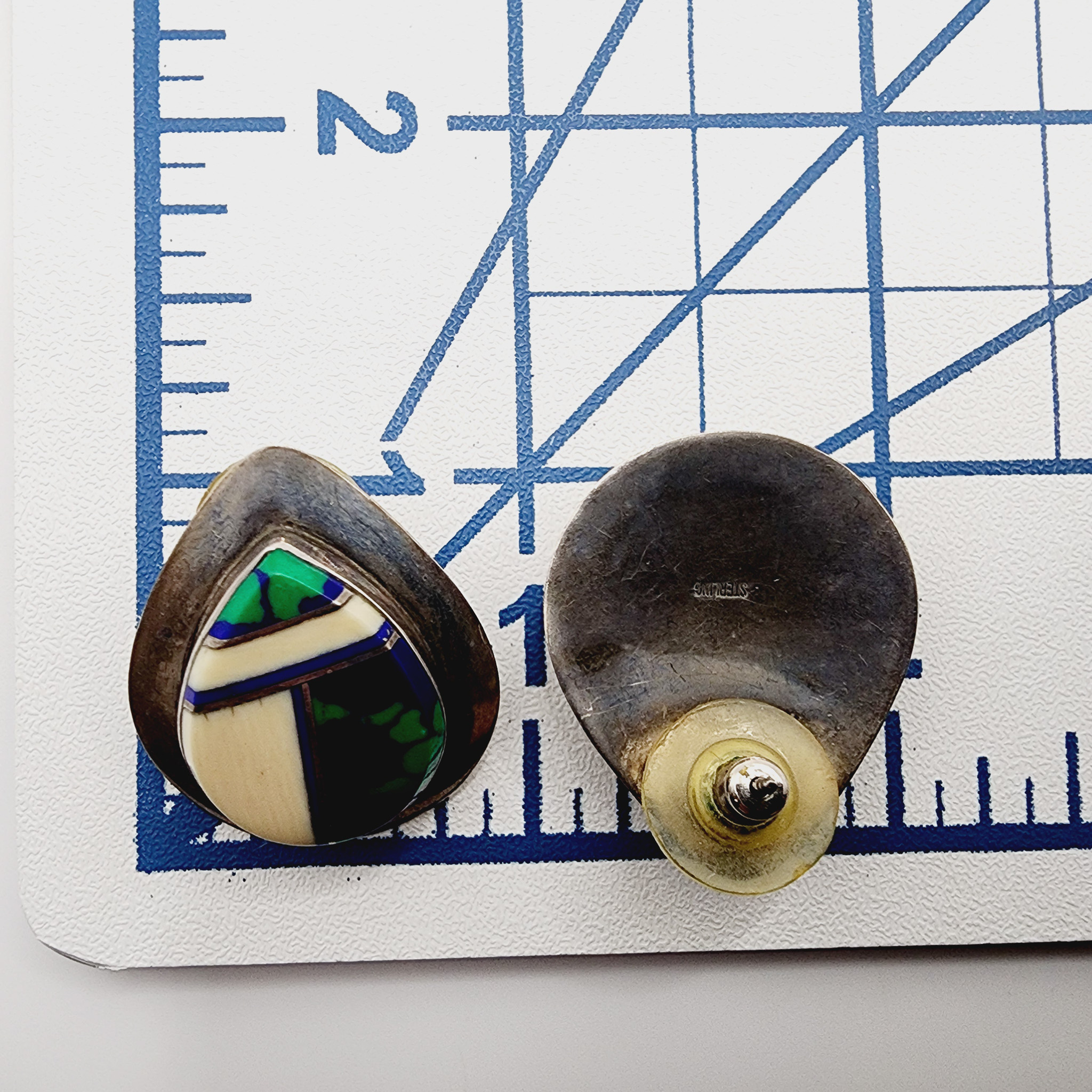 Sterling Navajo Multistone Inlay Earrings 9.4g