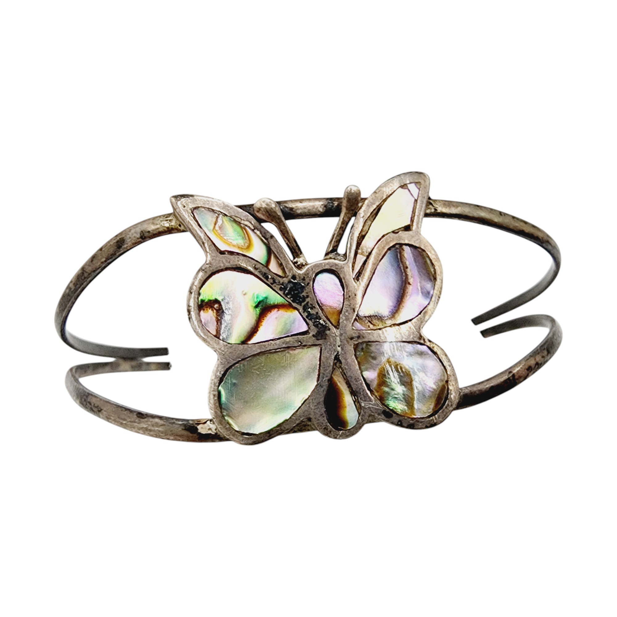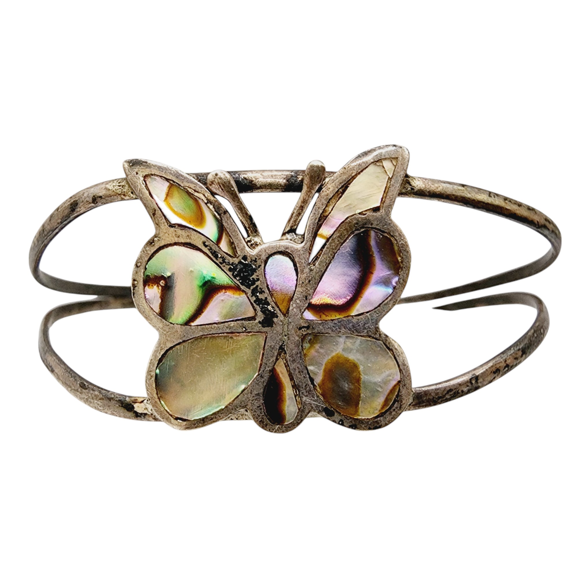 Sterling Vintage Abalone Butterfly Inlay Cuff As Is – Slight Bent