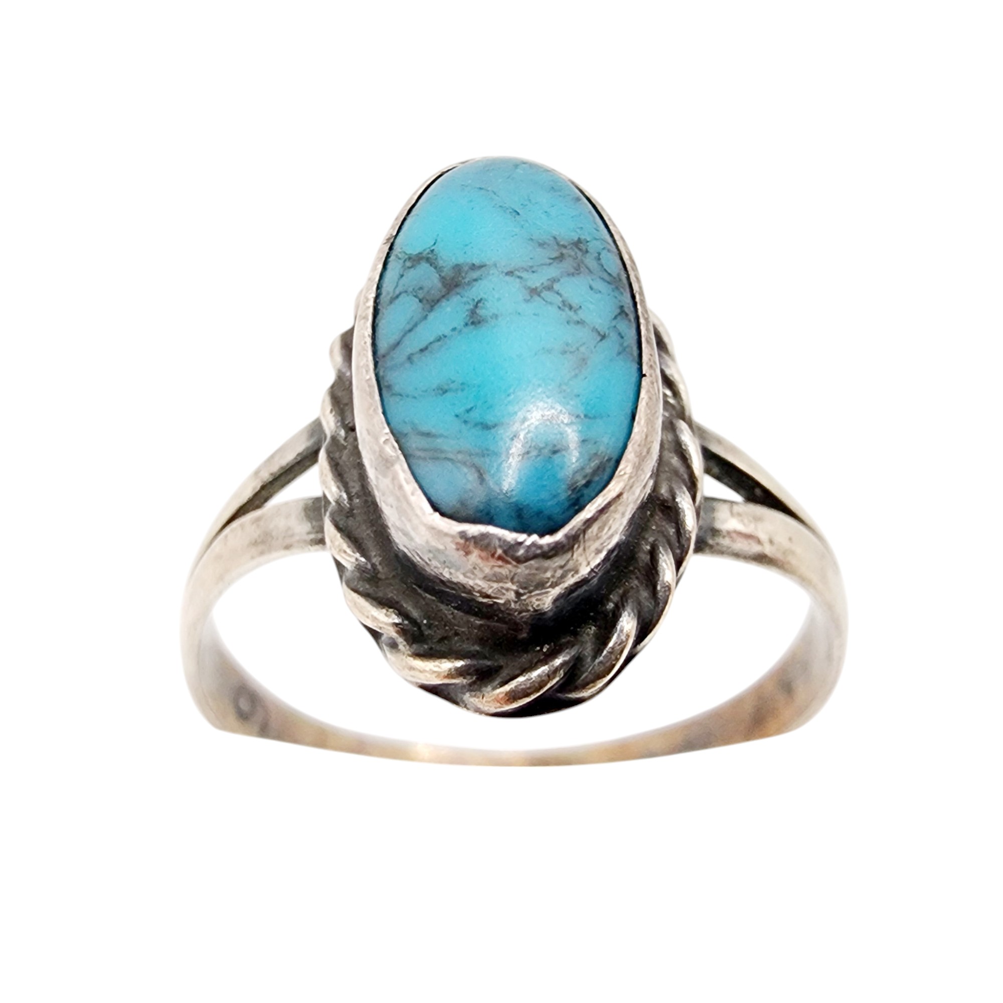 Sterling Southwest Faux Turquoise Ring Sz 6 1.6g