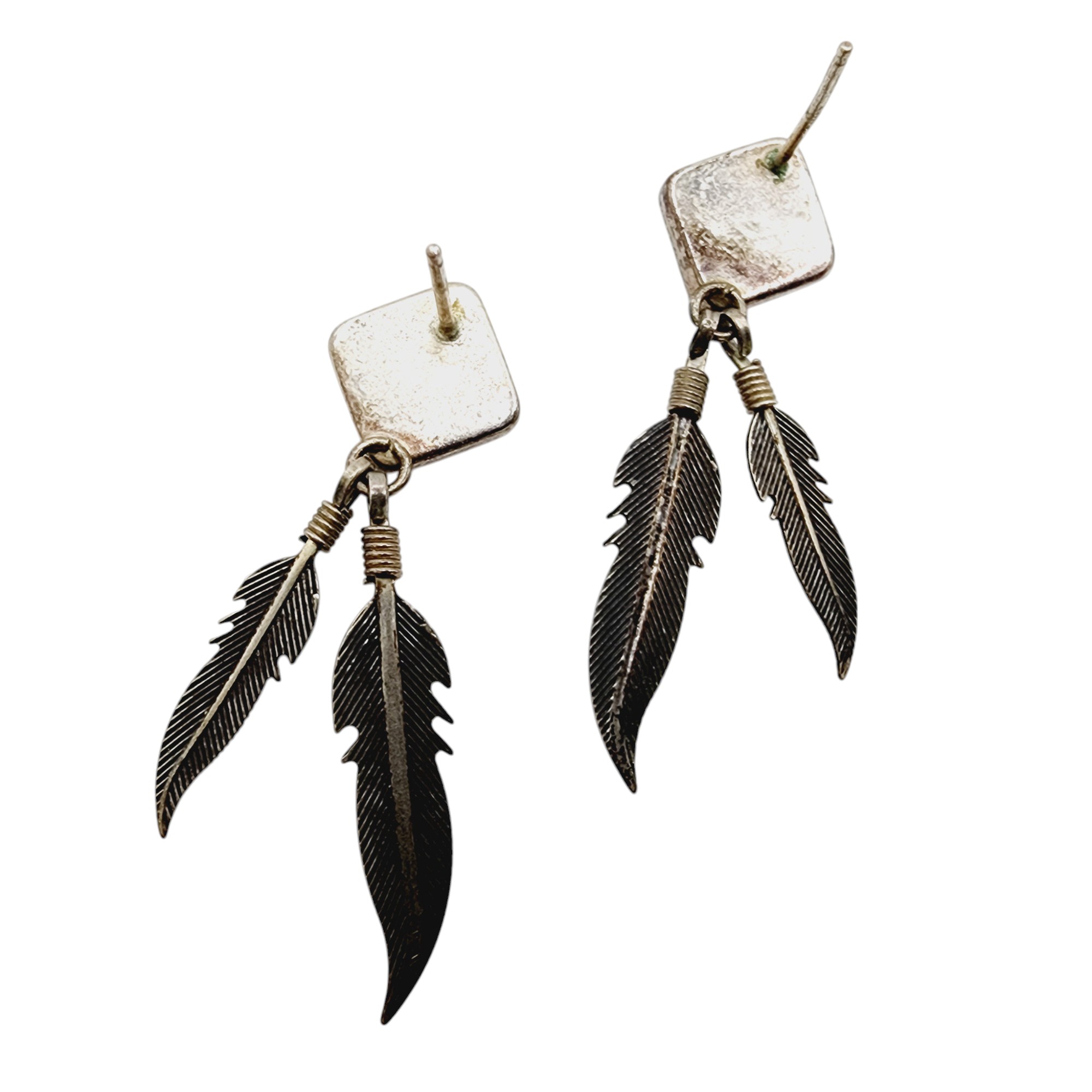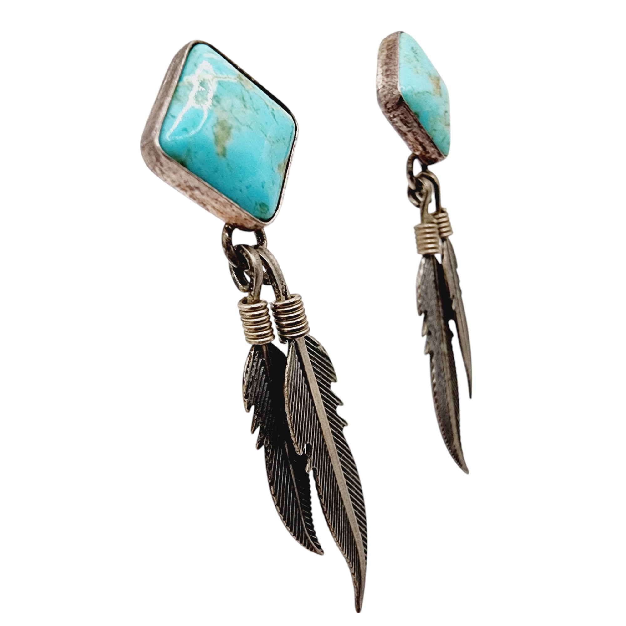 Sterling Turquoise Feather Dangle Earrings 4.8g