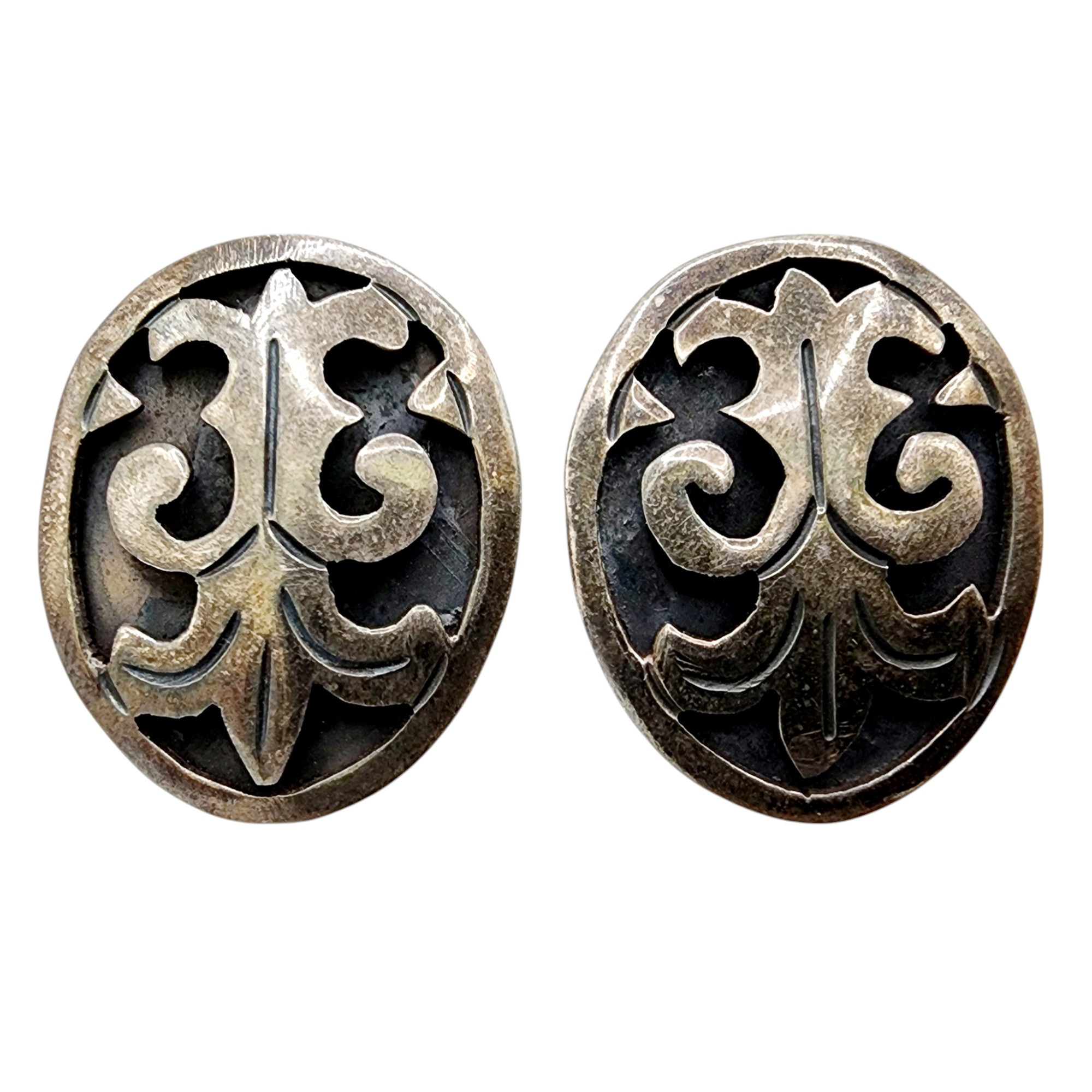Sterling Taxco Signed ‘FTH’ Hollow Form Shadowbox Earrings 9.1g