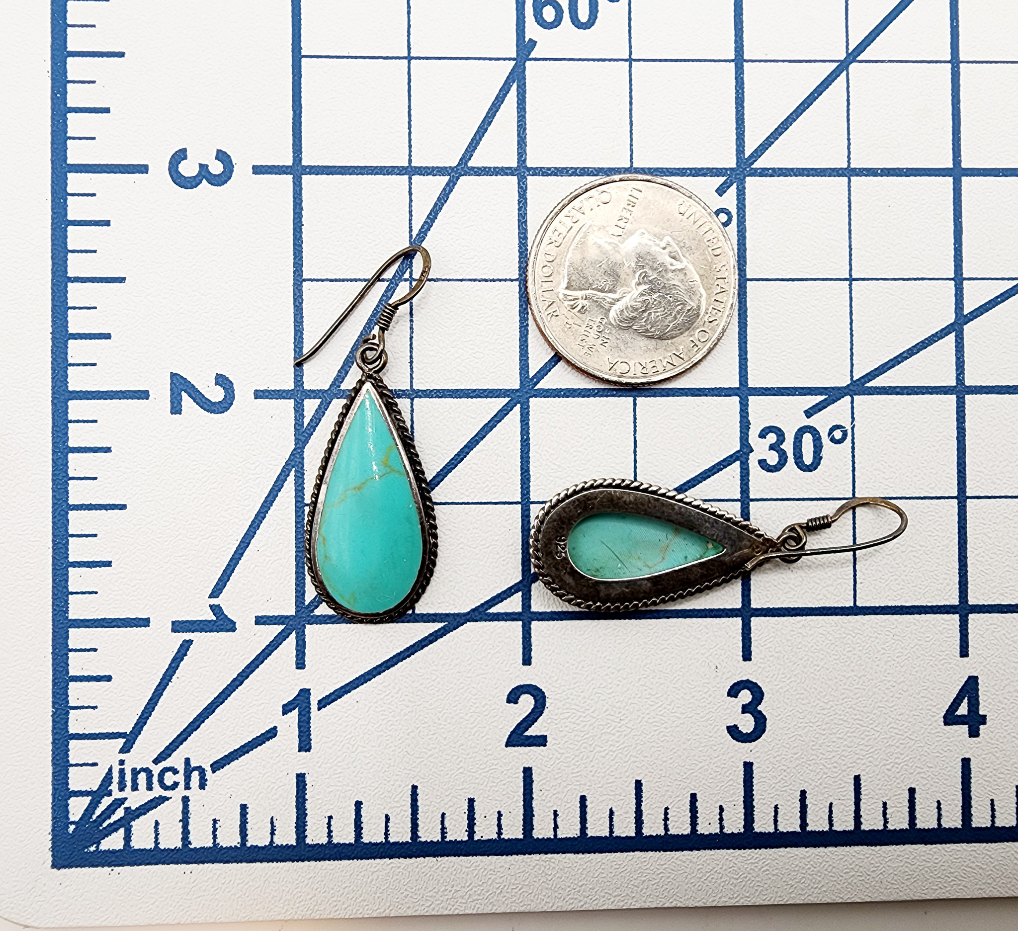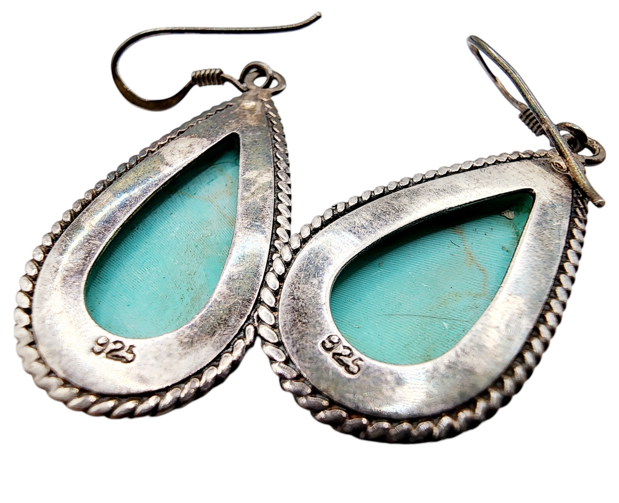 Sterling Faux Turquoise Teardrop Earrings 5.2g