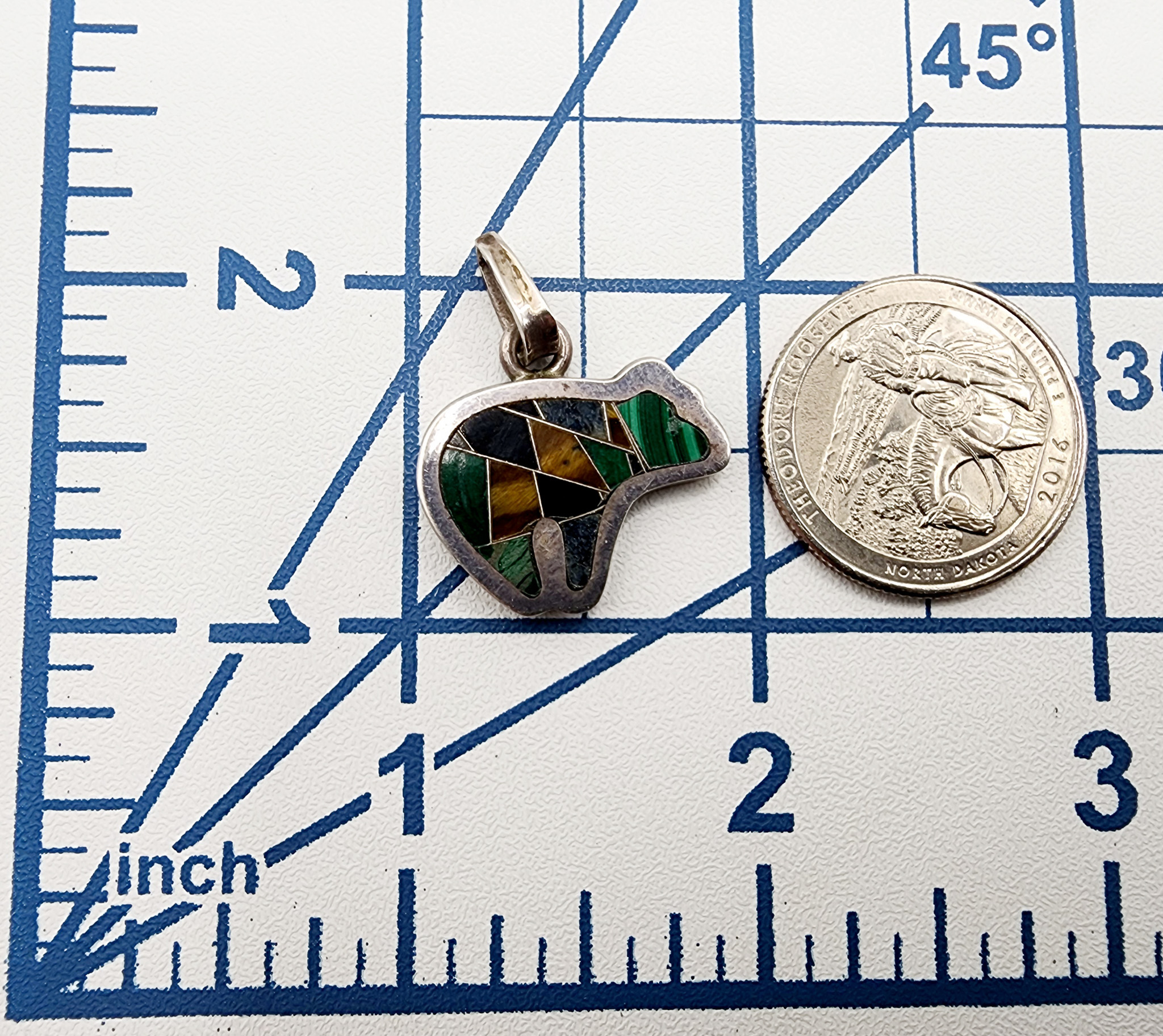 Sterling Southwestern Inlay Bear Pendant 5.7g