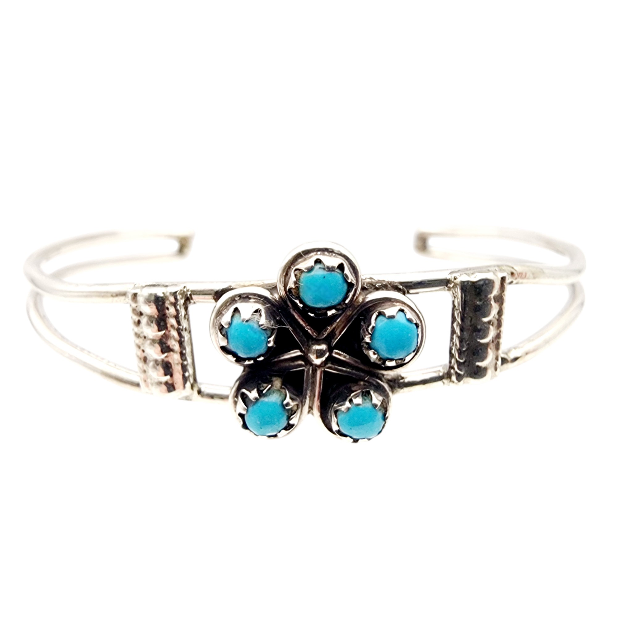 Vintage Zuni Sterling Turquoise Snake Eye Cuff Bracelet, small cuff size, 4g
