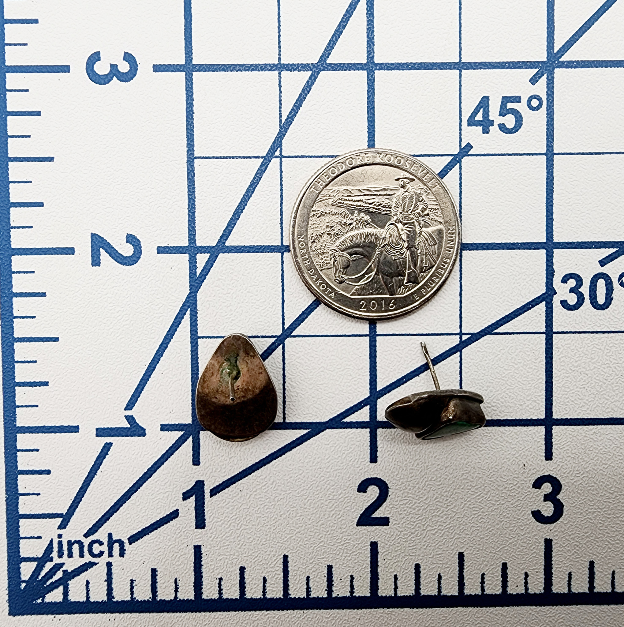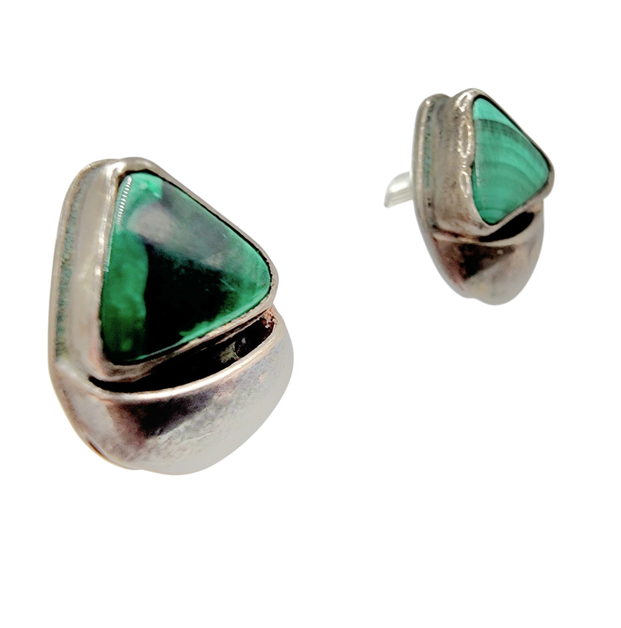 Sterling Malachite Triangle Stud Earrings 4.7g