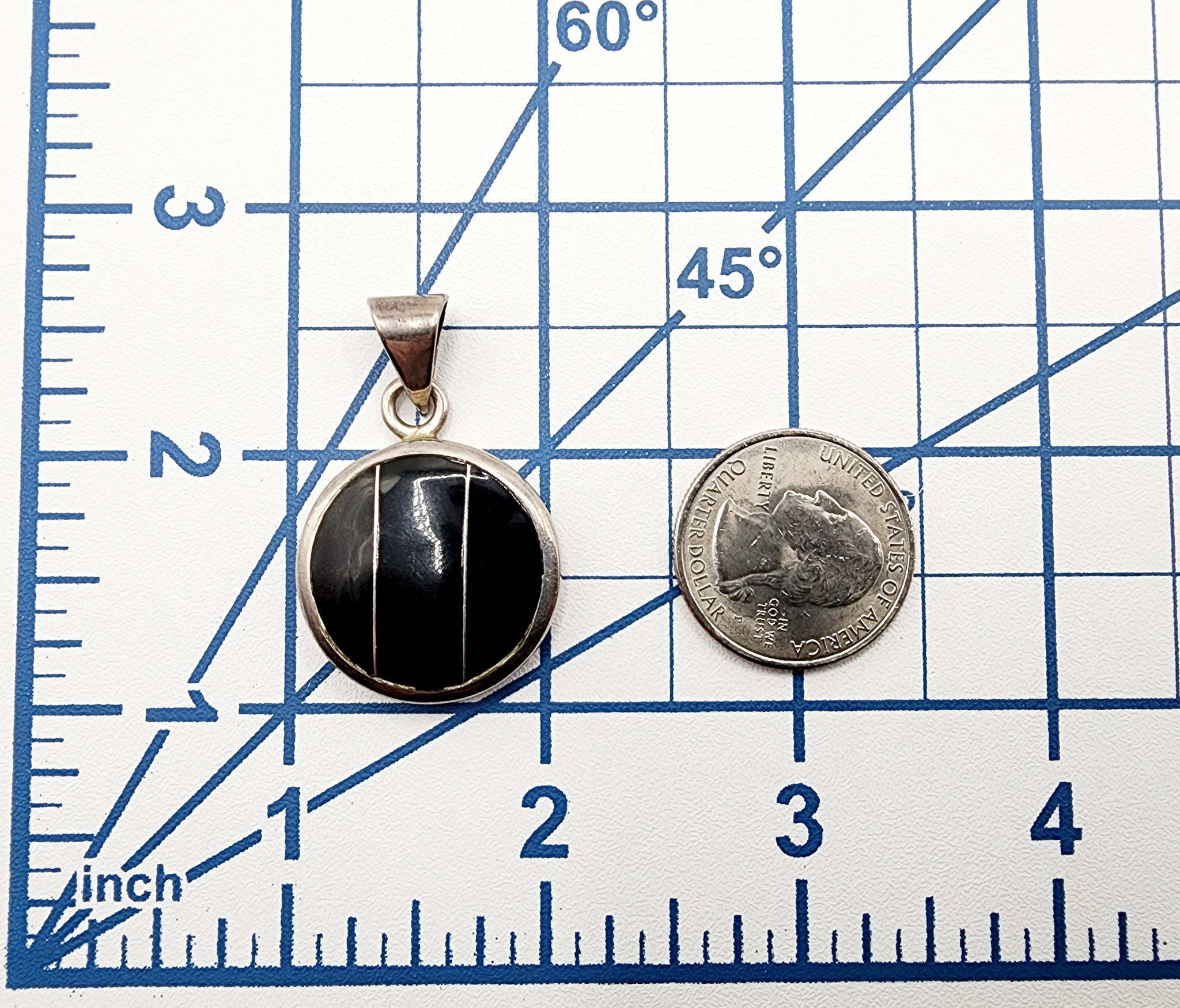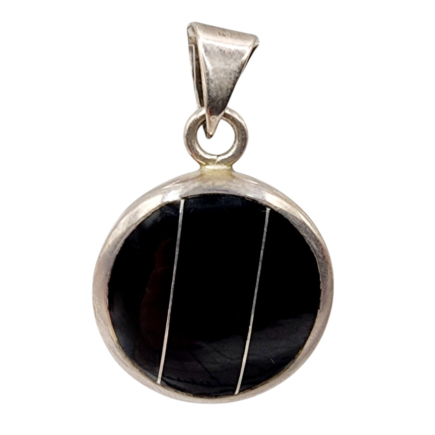 Sterling Taxco TF-57 Onyx Disc Pendant 11.1g