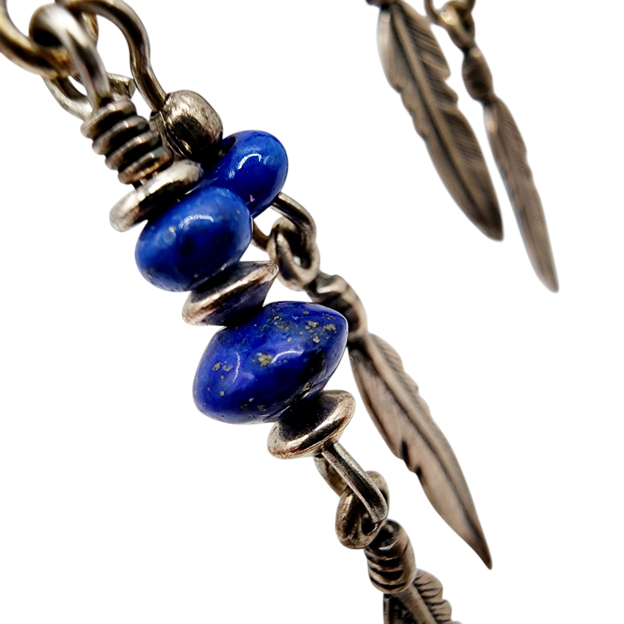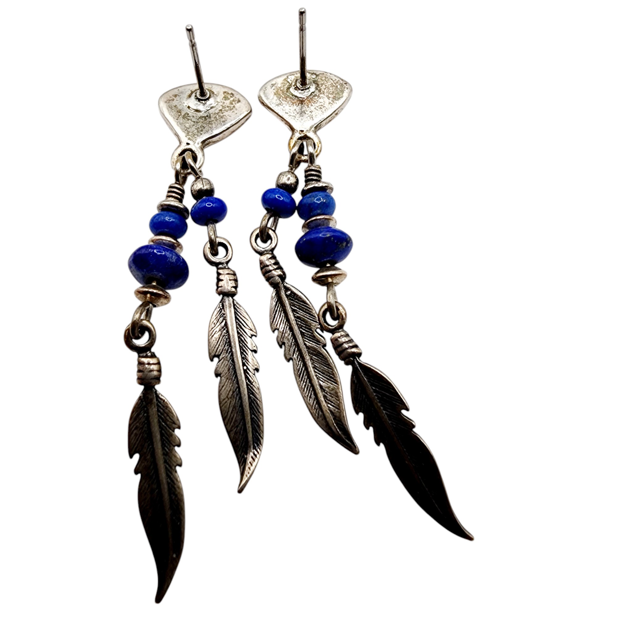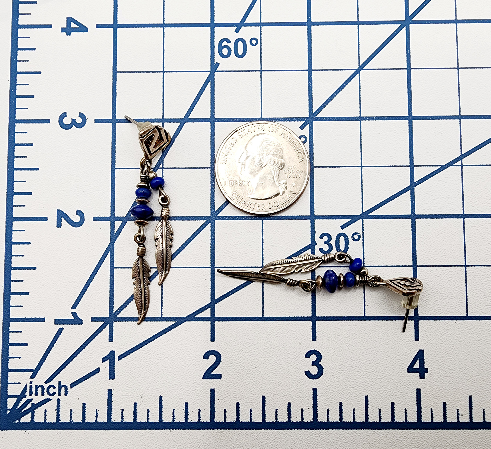 Sterling Southwest Lapis Feather Dangle Earrings 4.6g