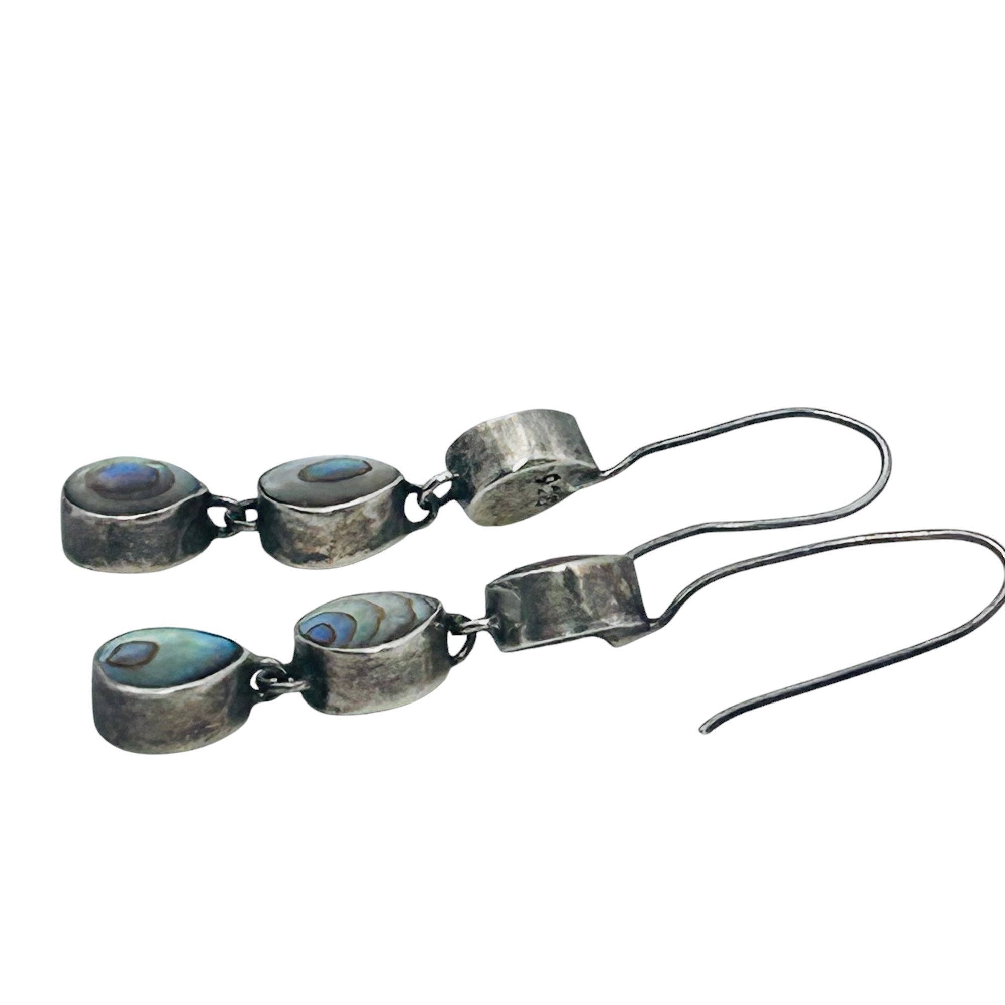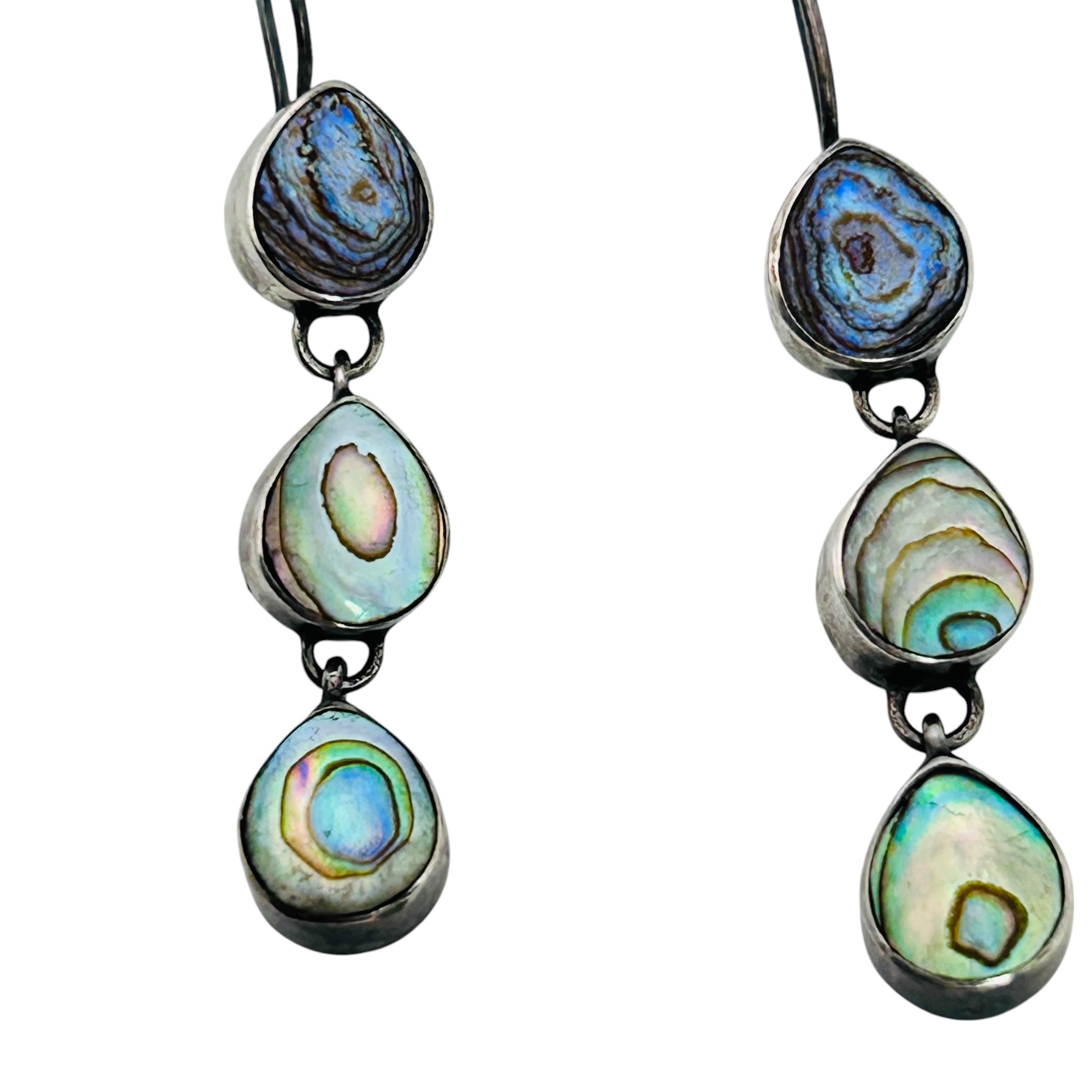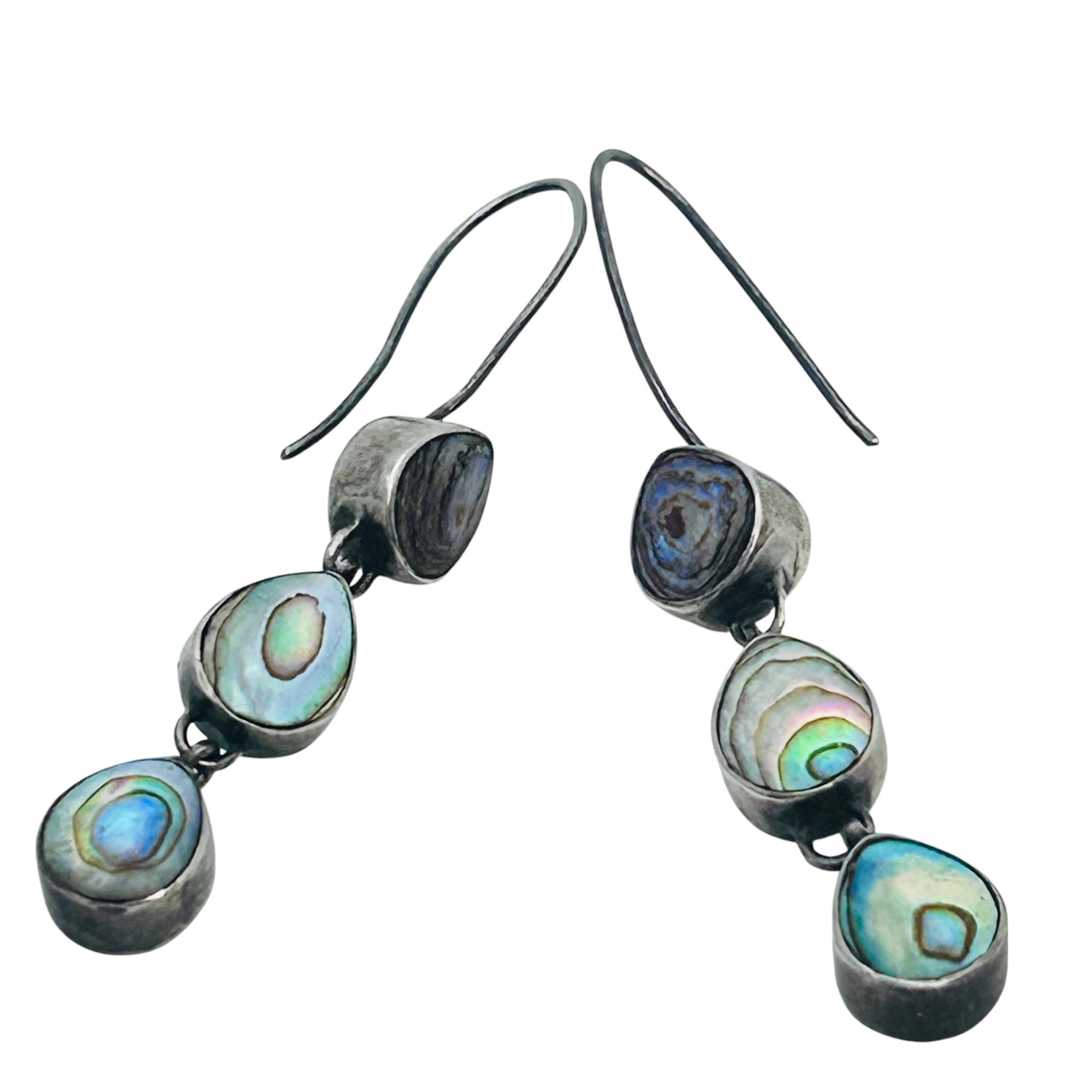Abalone triple tiered sterling dangle earrings 3.68g