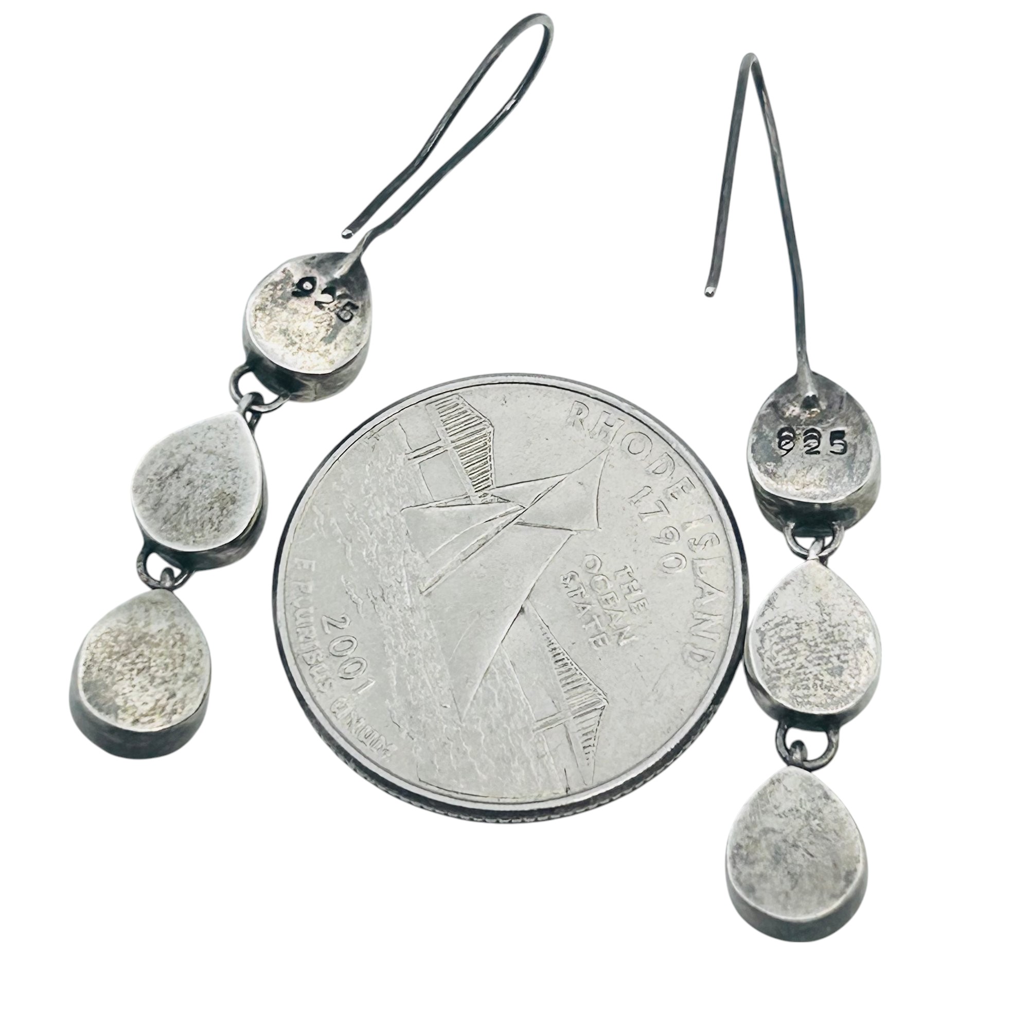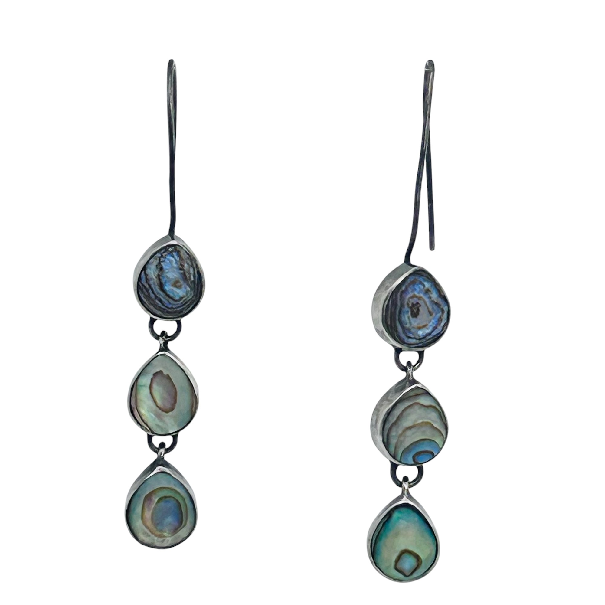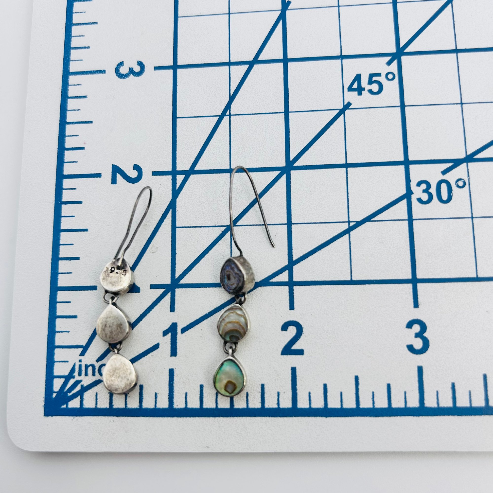 Abalone triple tiered sterling dangle earrings 3.68g