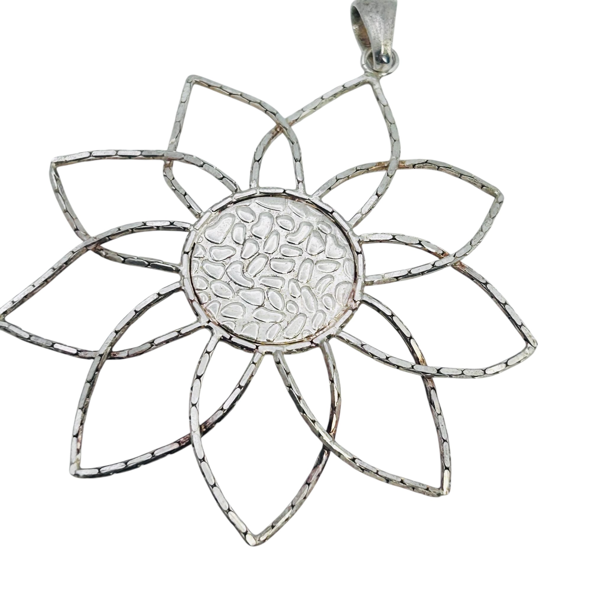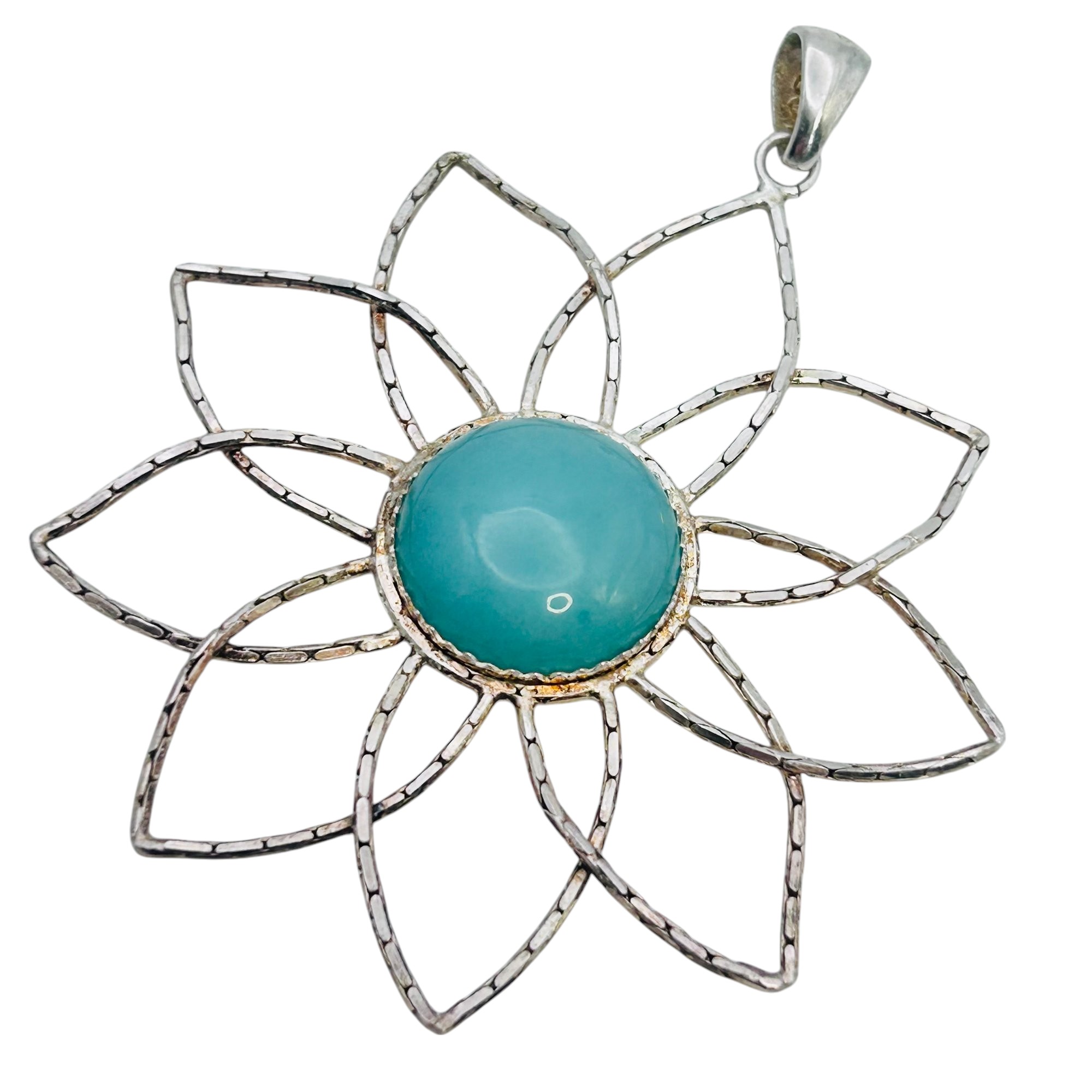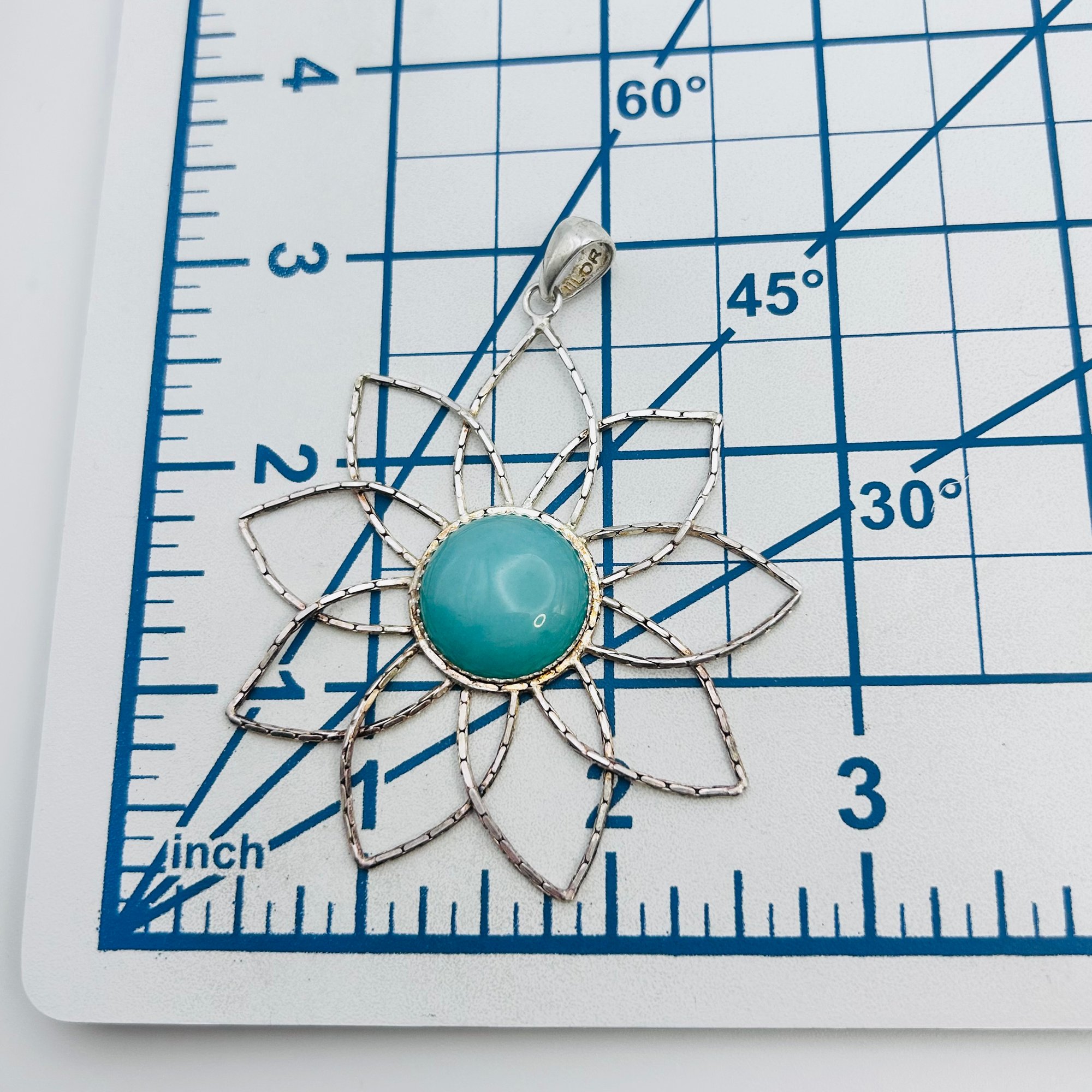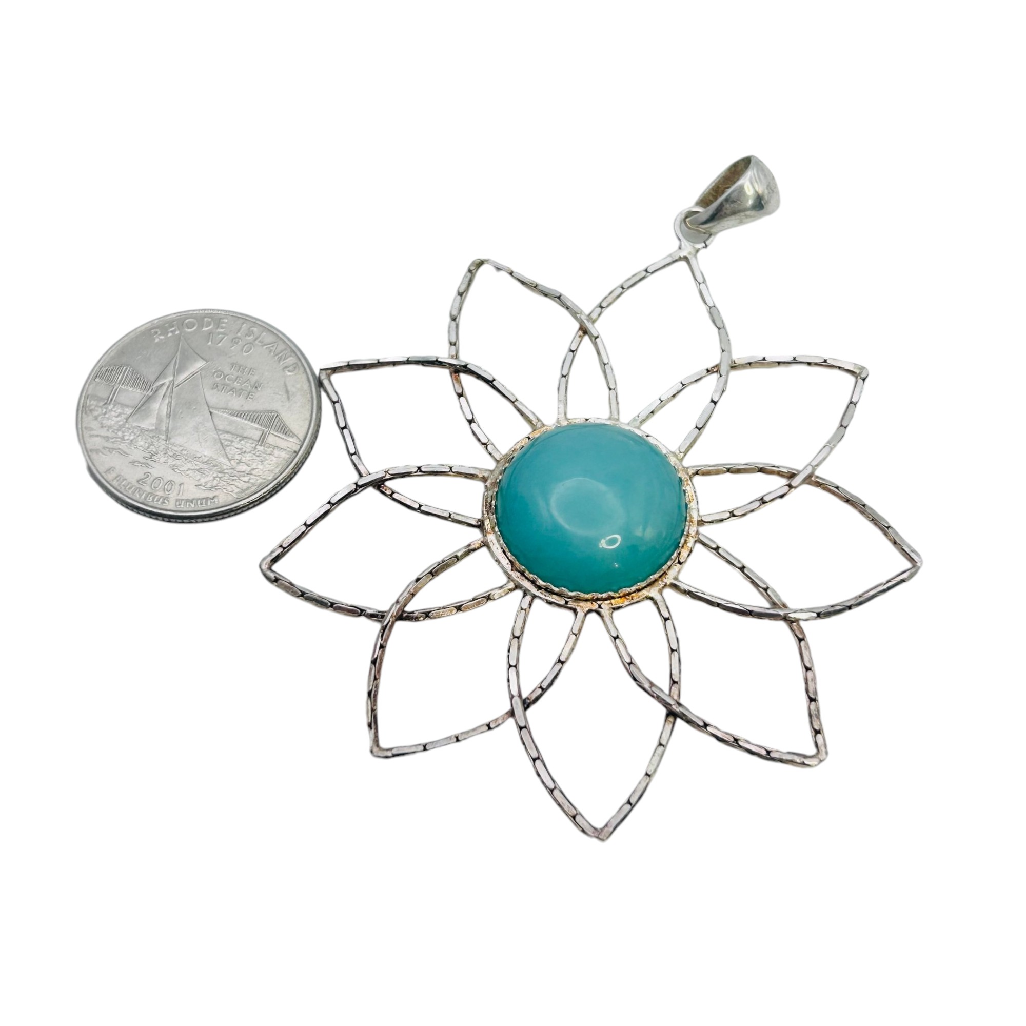 Milor Italy Aqua Center Stone Sterling Chain Flower Flexible Pendant 10.13 G
