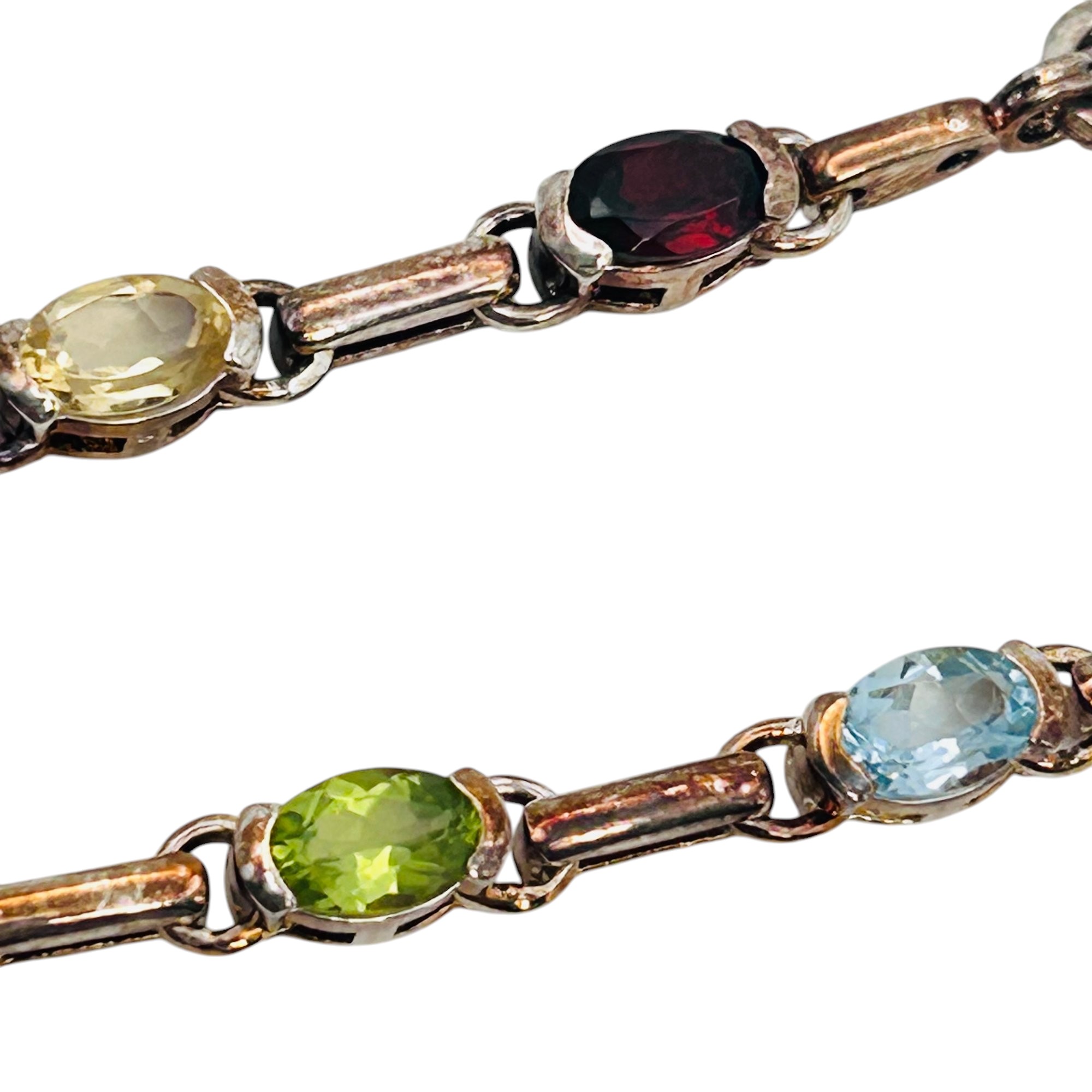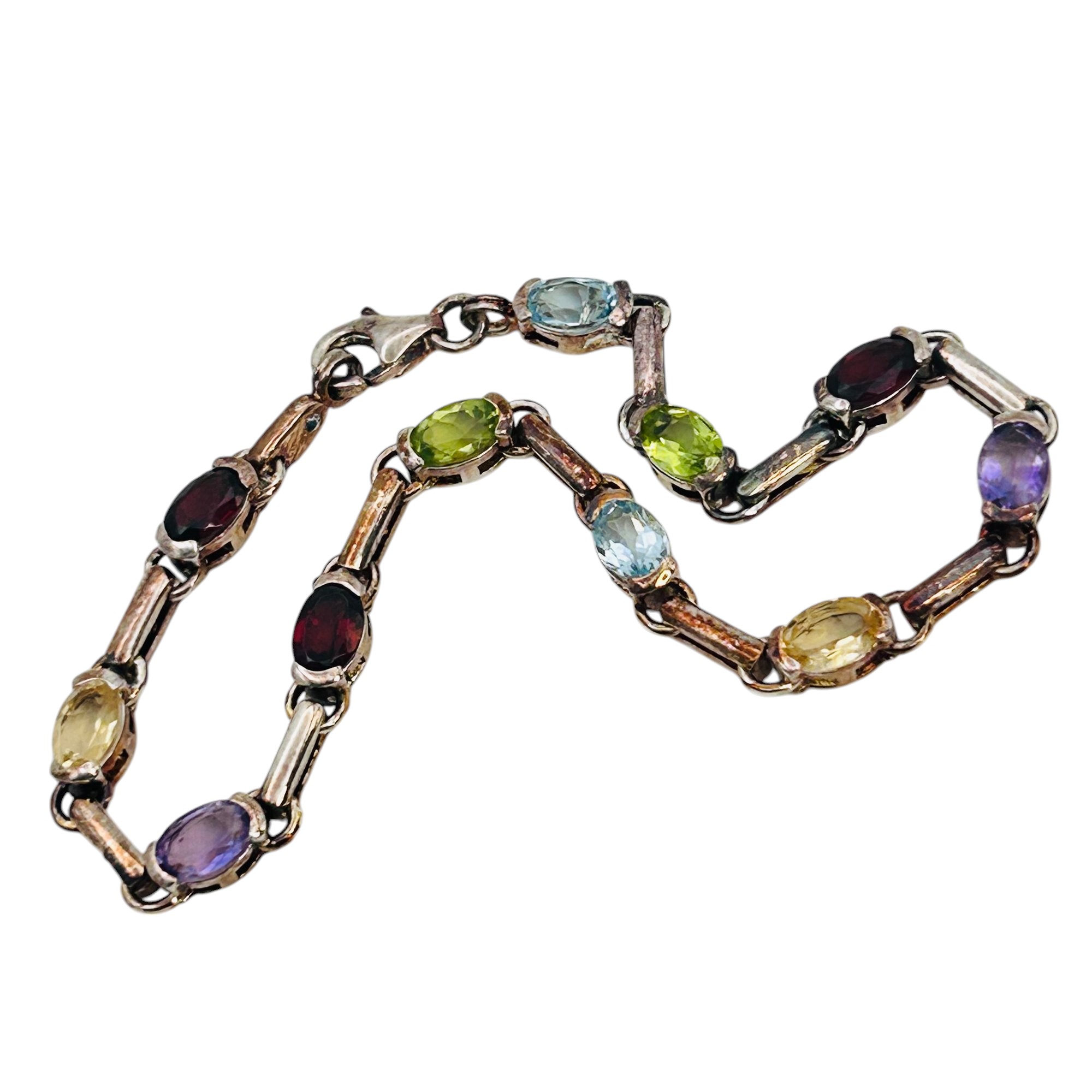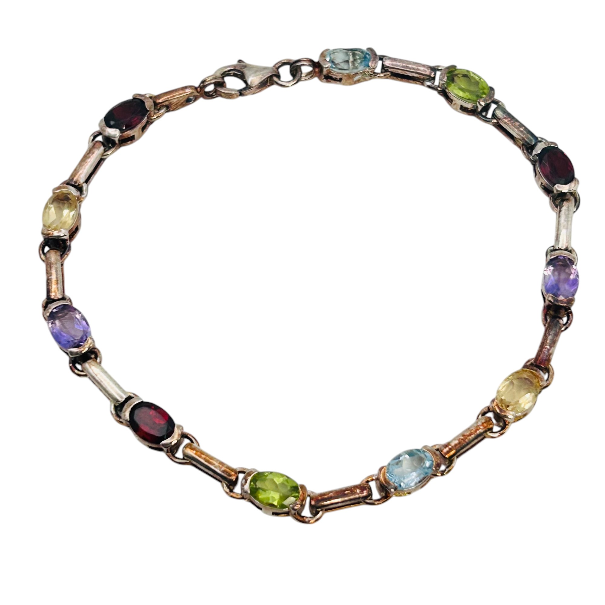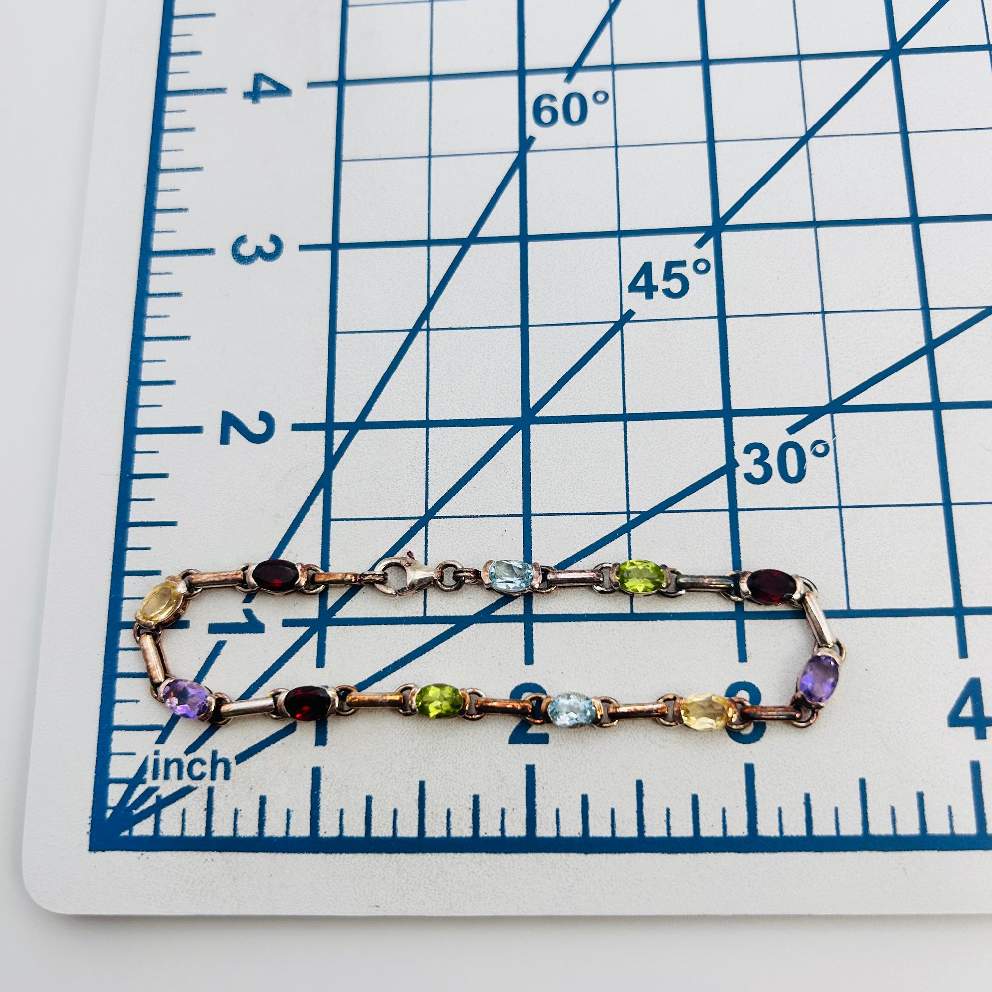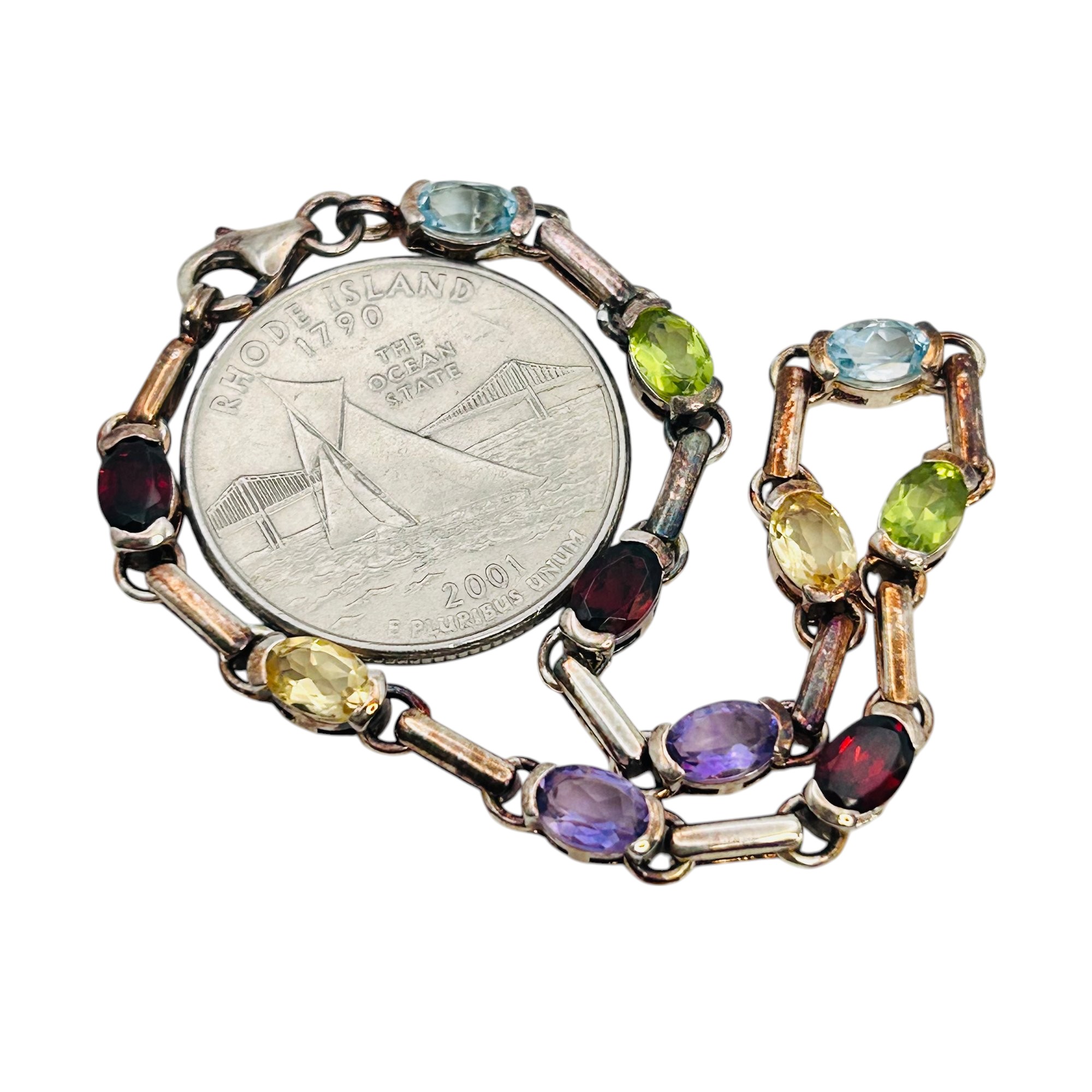 RSE amethyst citrine Garnet topaz sterling linked chain bracelet 8.34 g