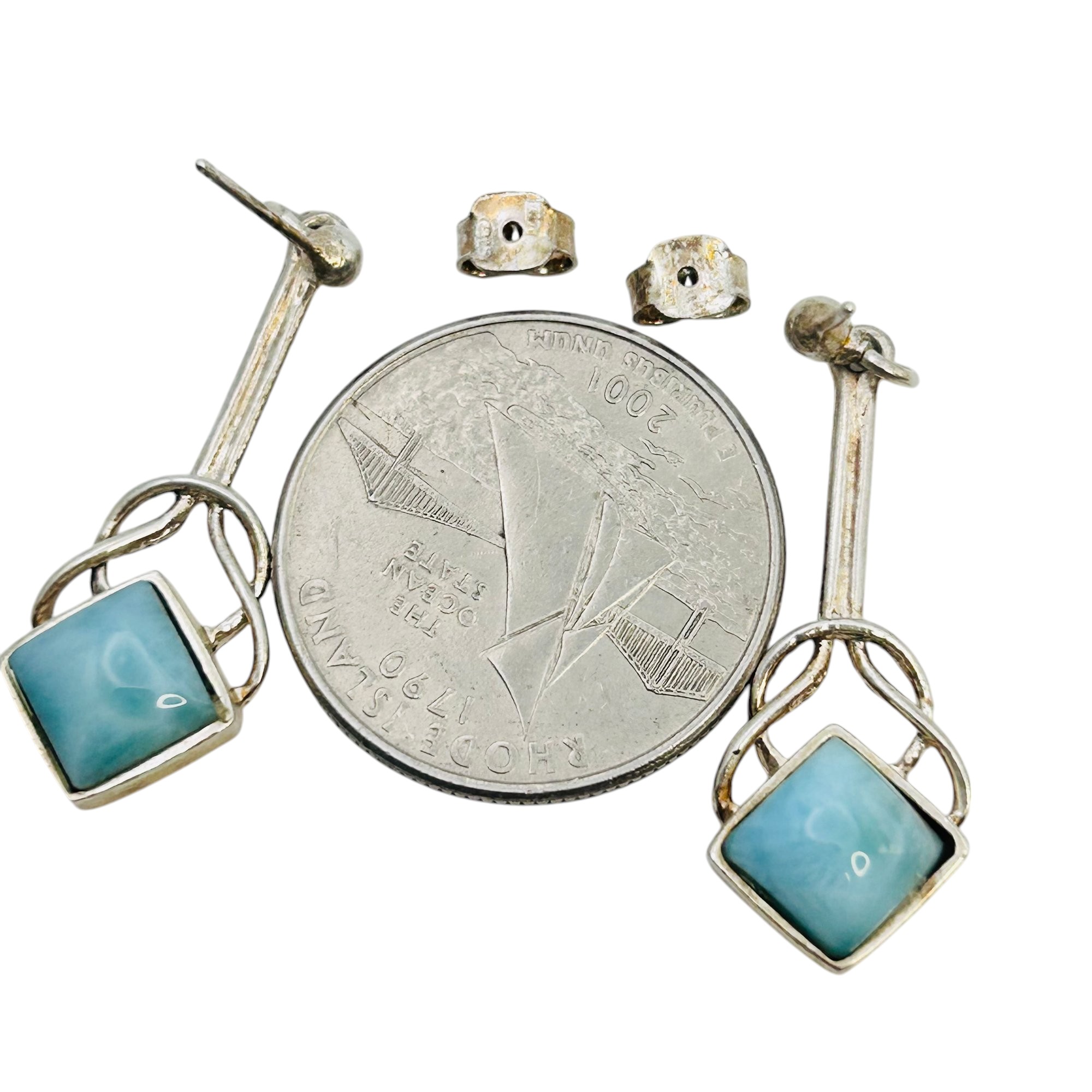 LARIMAR Italy Sterling pushback dangle earrings 4.62 g