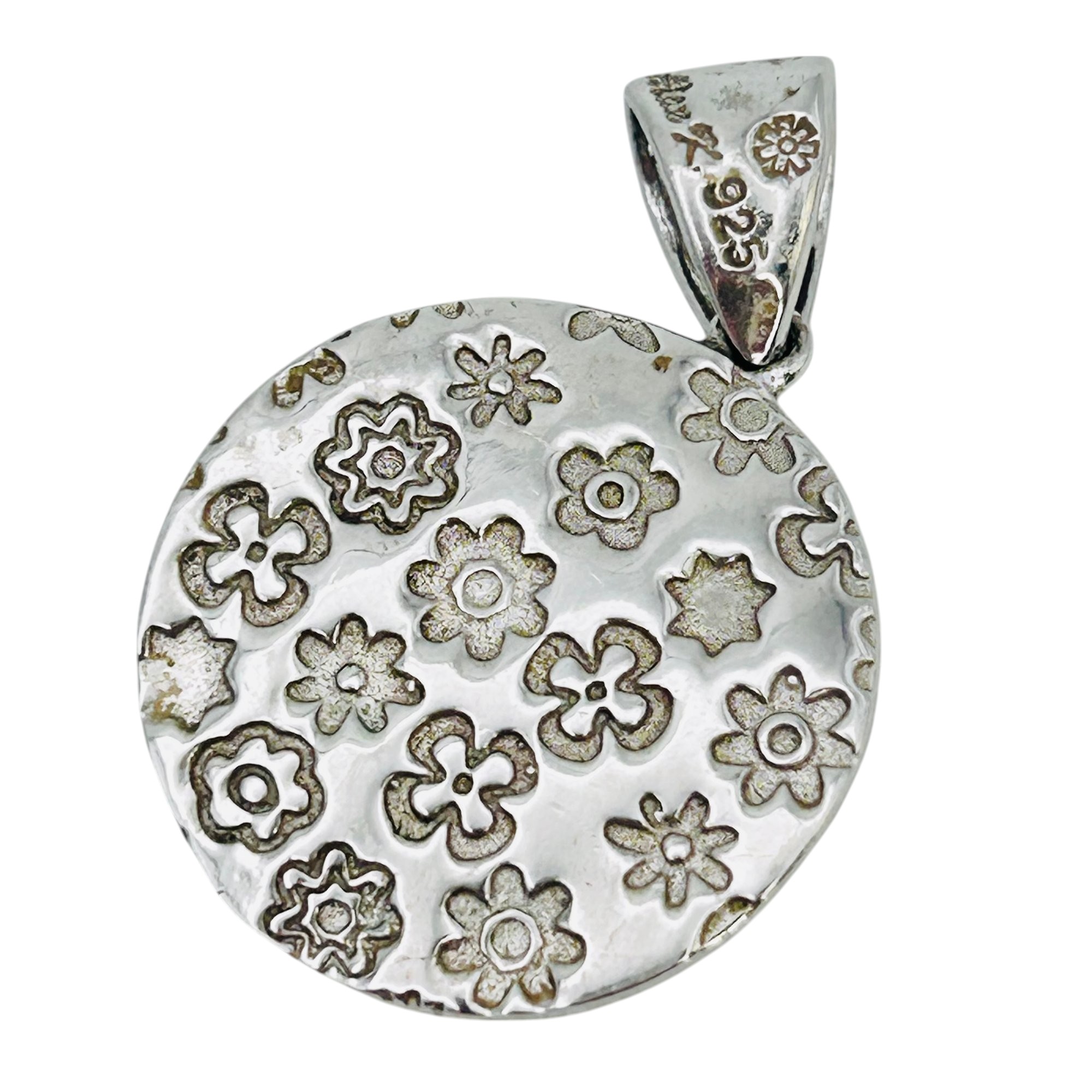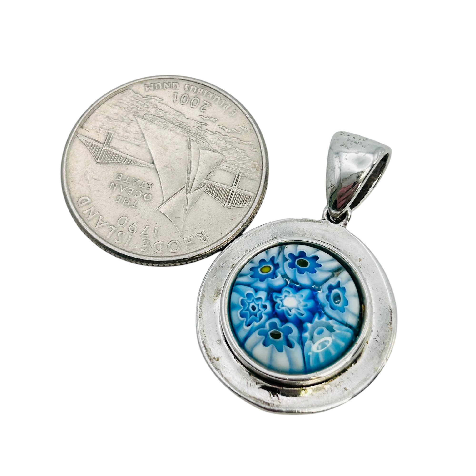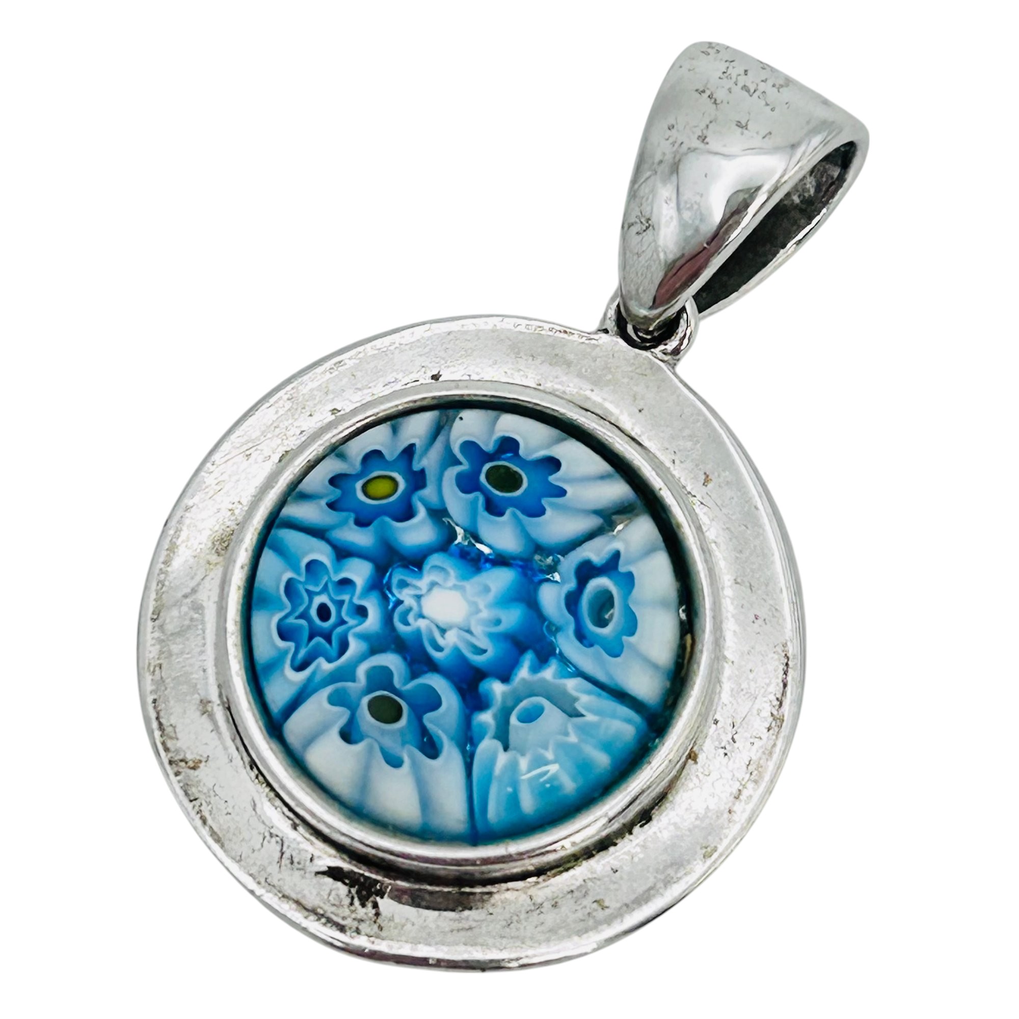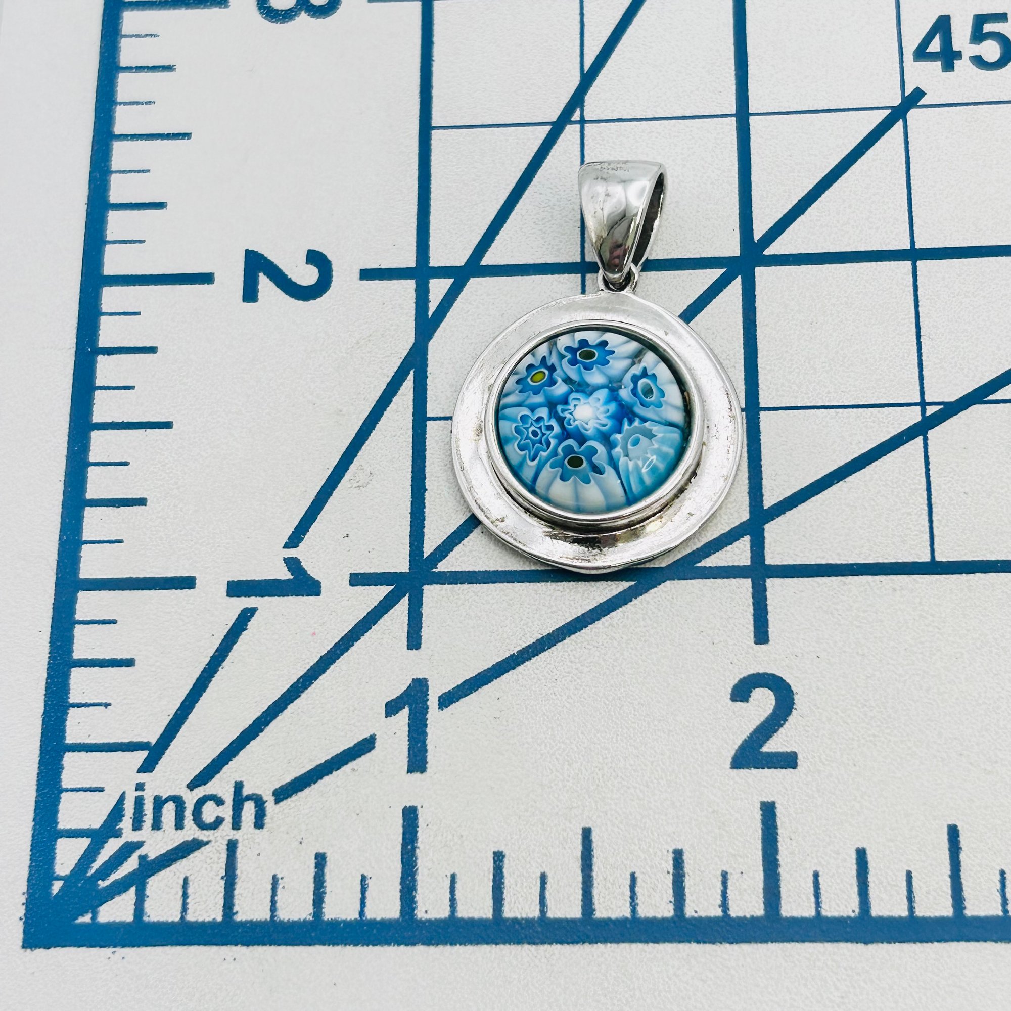 Alan K sterling blue Millefori glass flower pendant 7.89 g