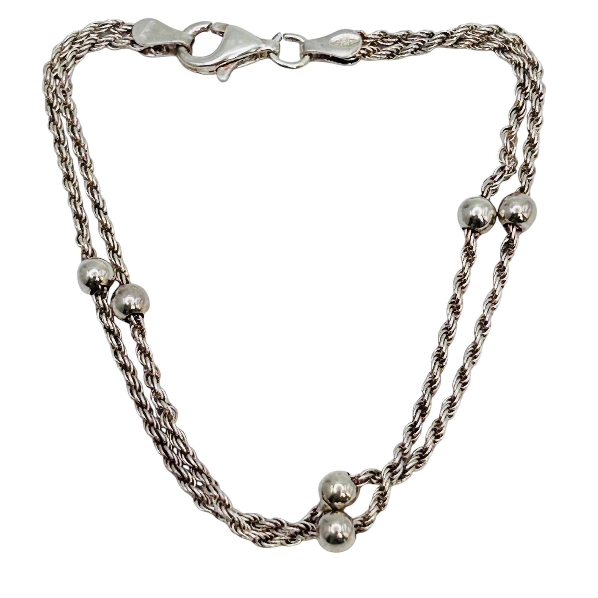 MWS Italy Sterling double rope chain and bead bracelet 4.35 g