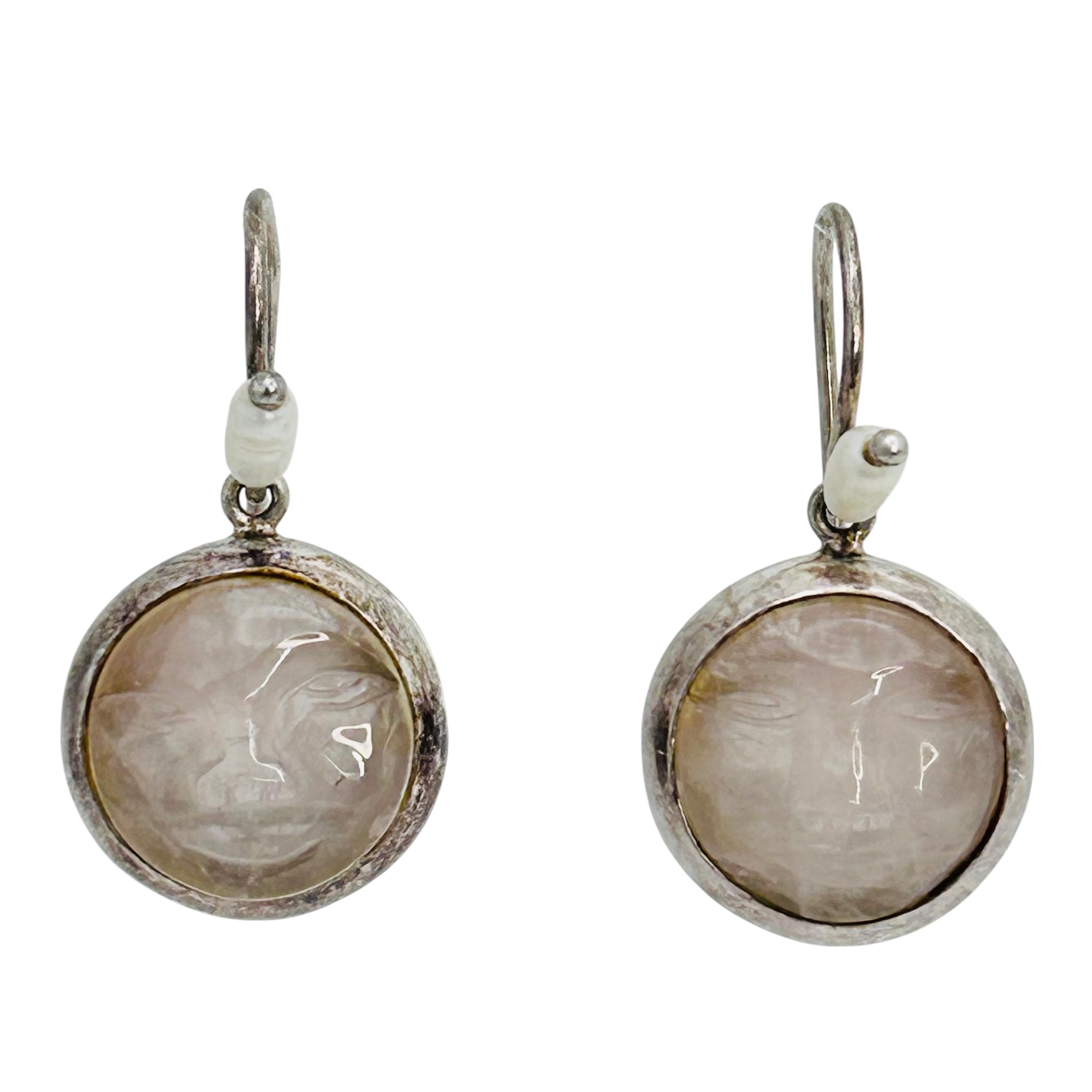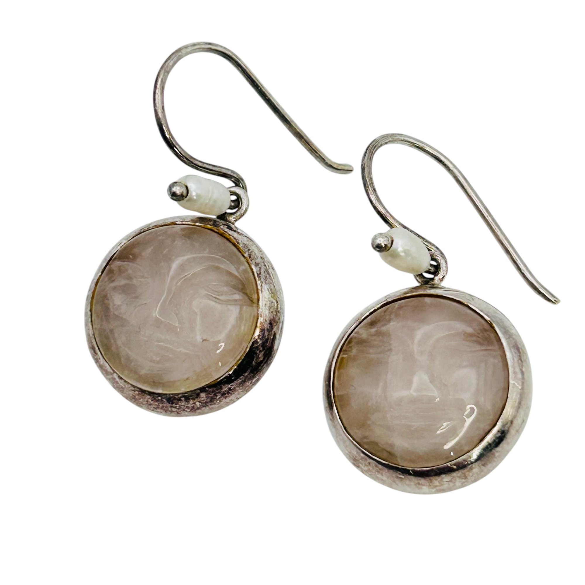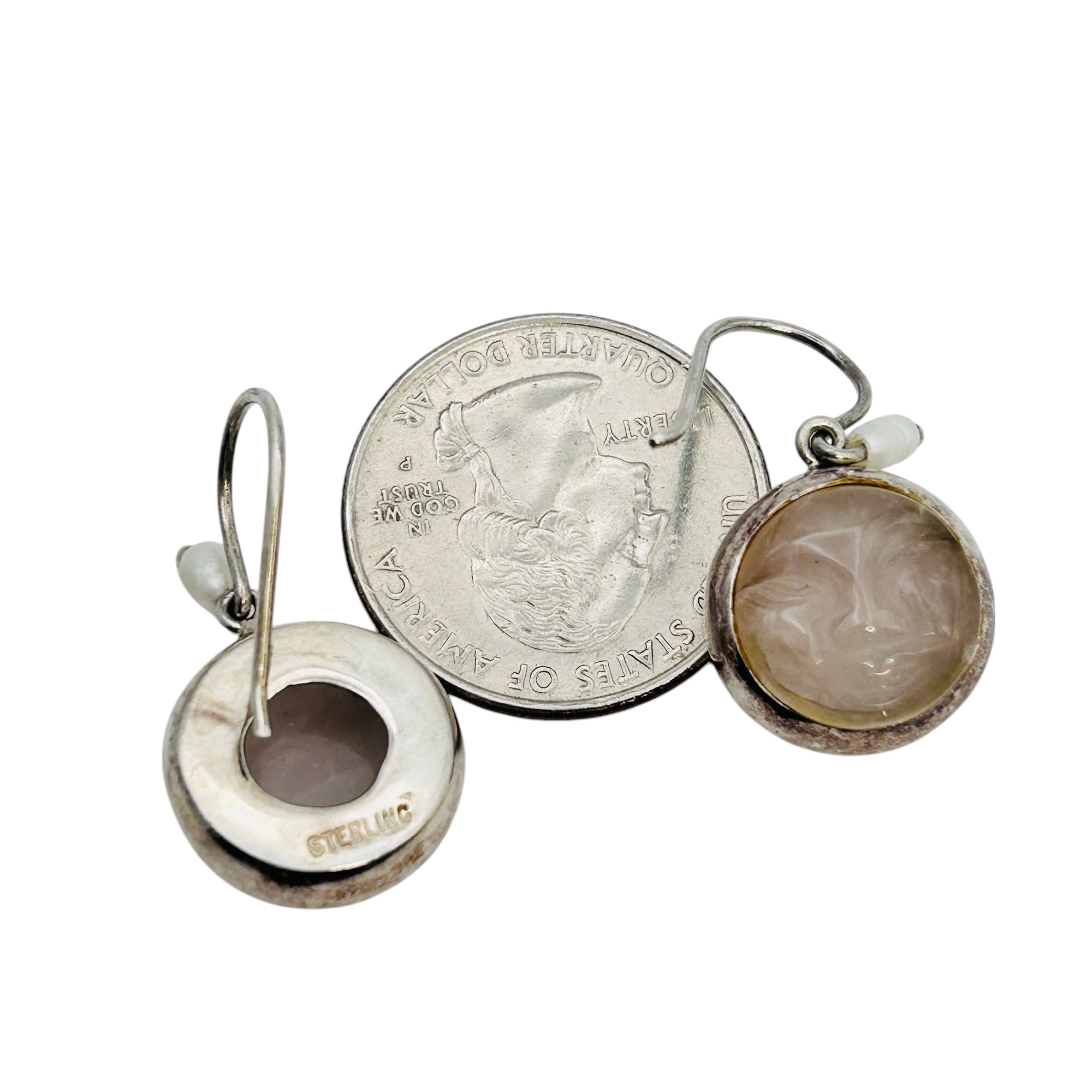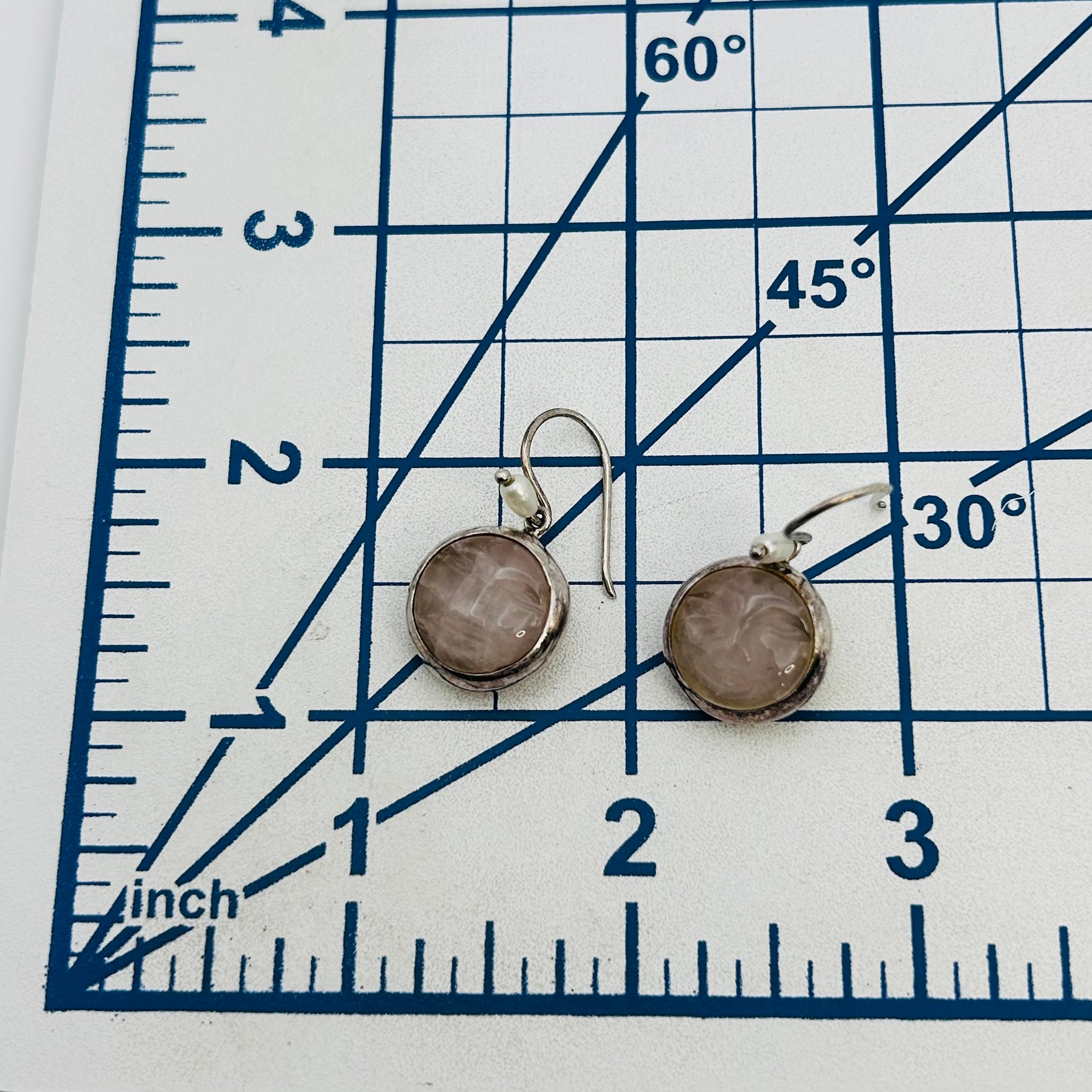Pink quartz and pearl halo set round dangle earrings 8.96 g