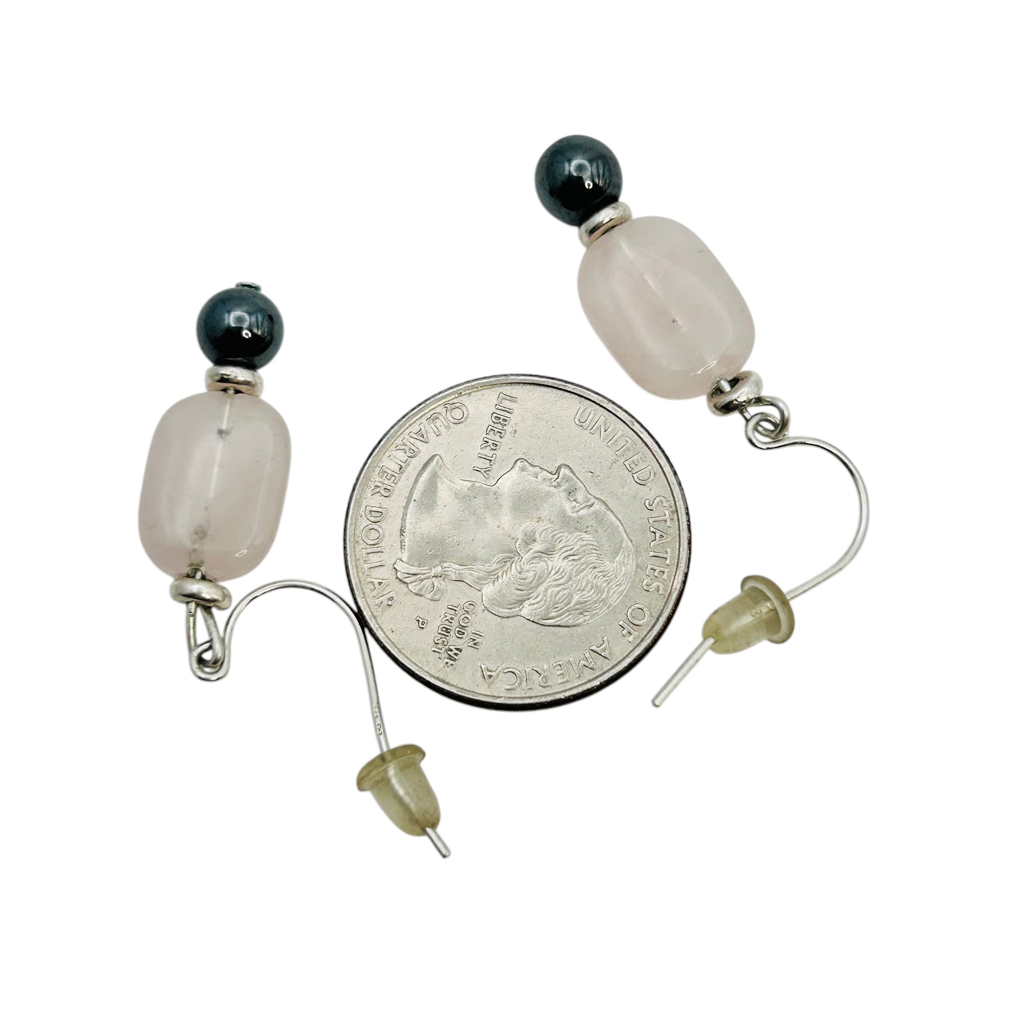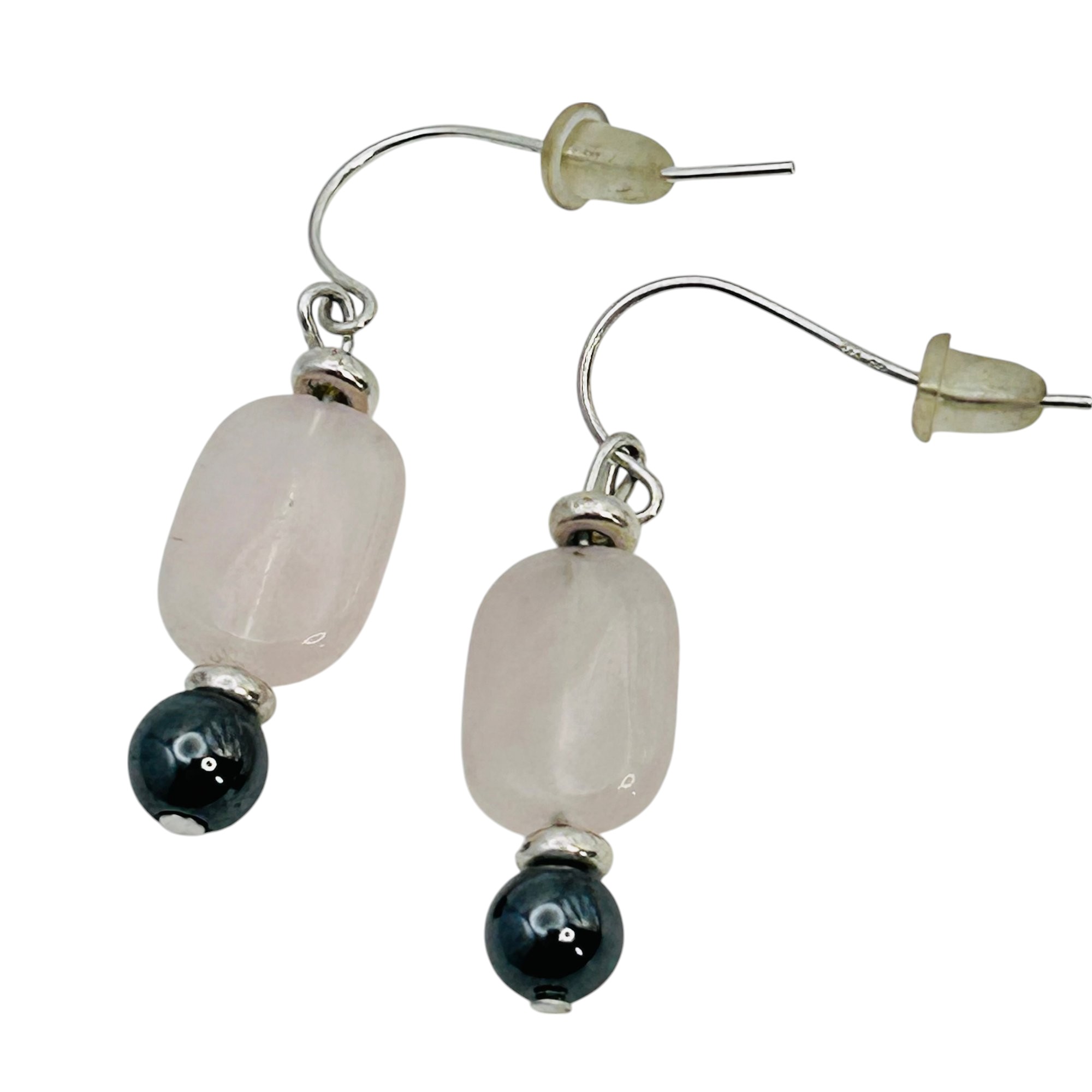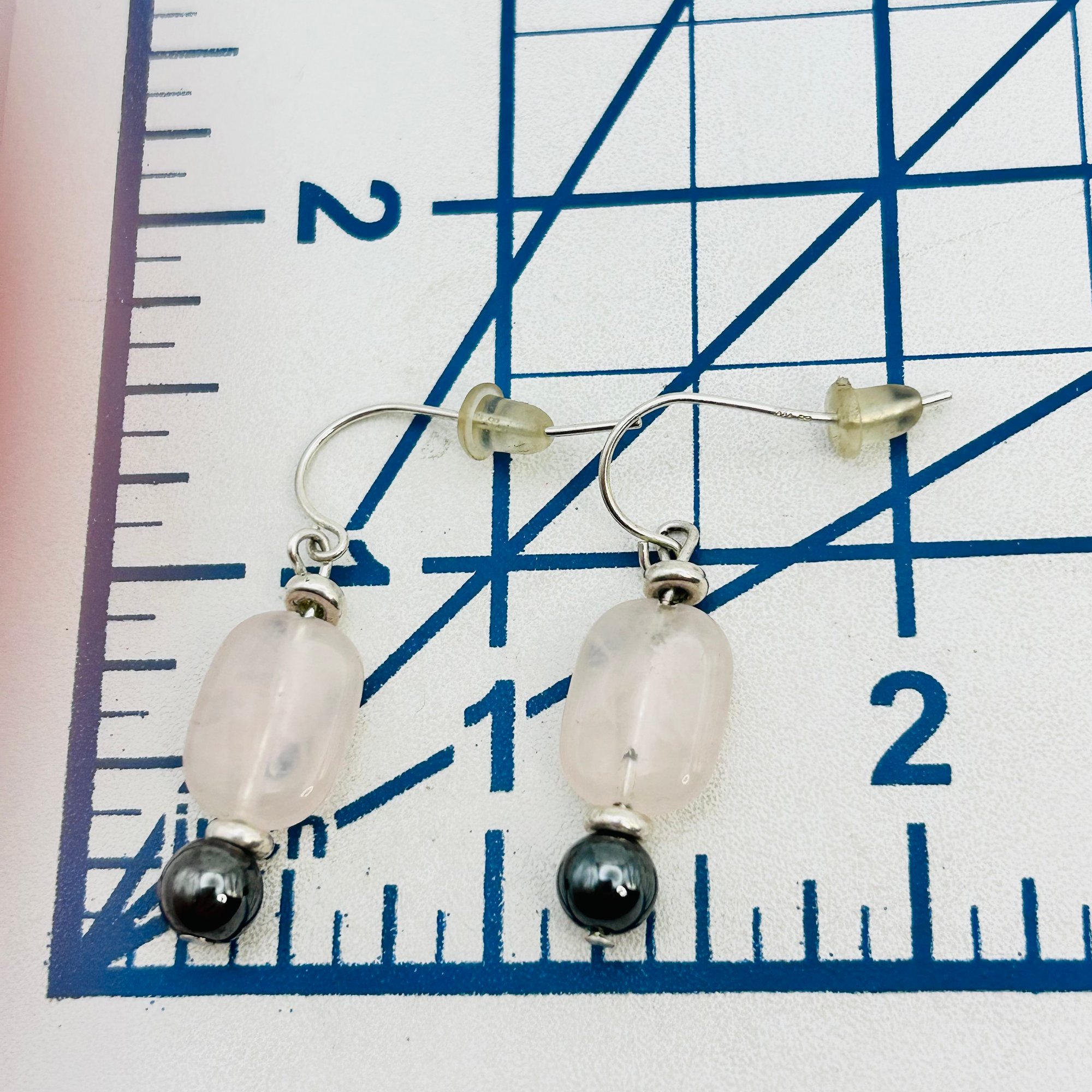 Pink spinel and obsidian dangle earrings 4.14 g