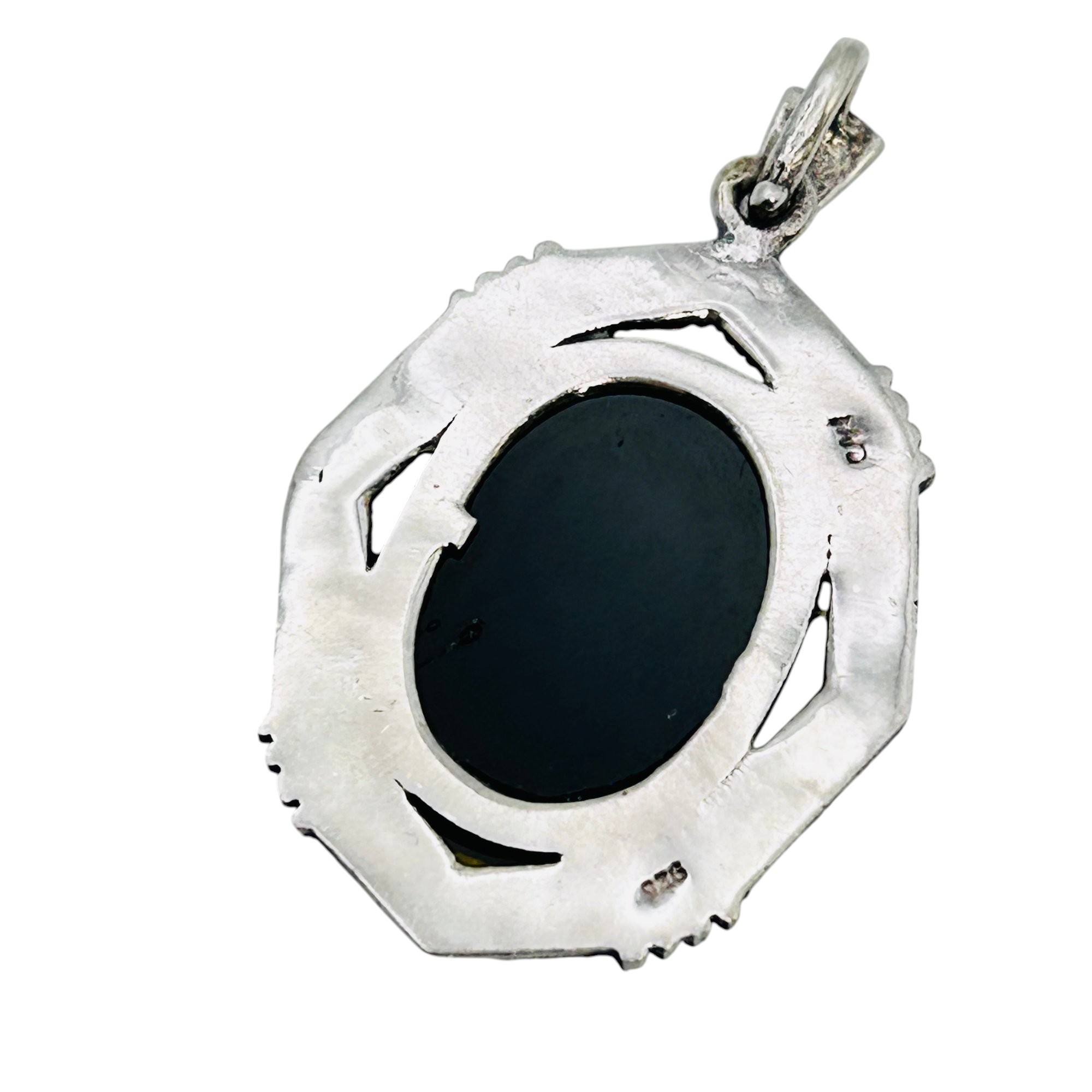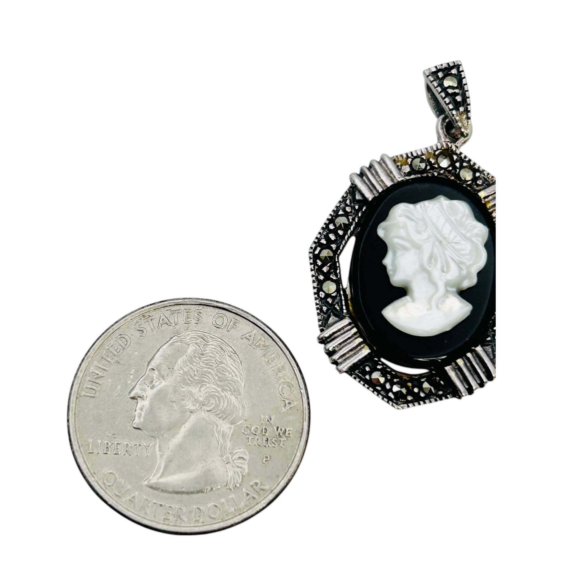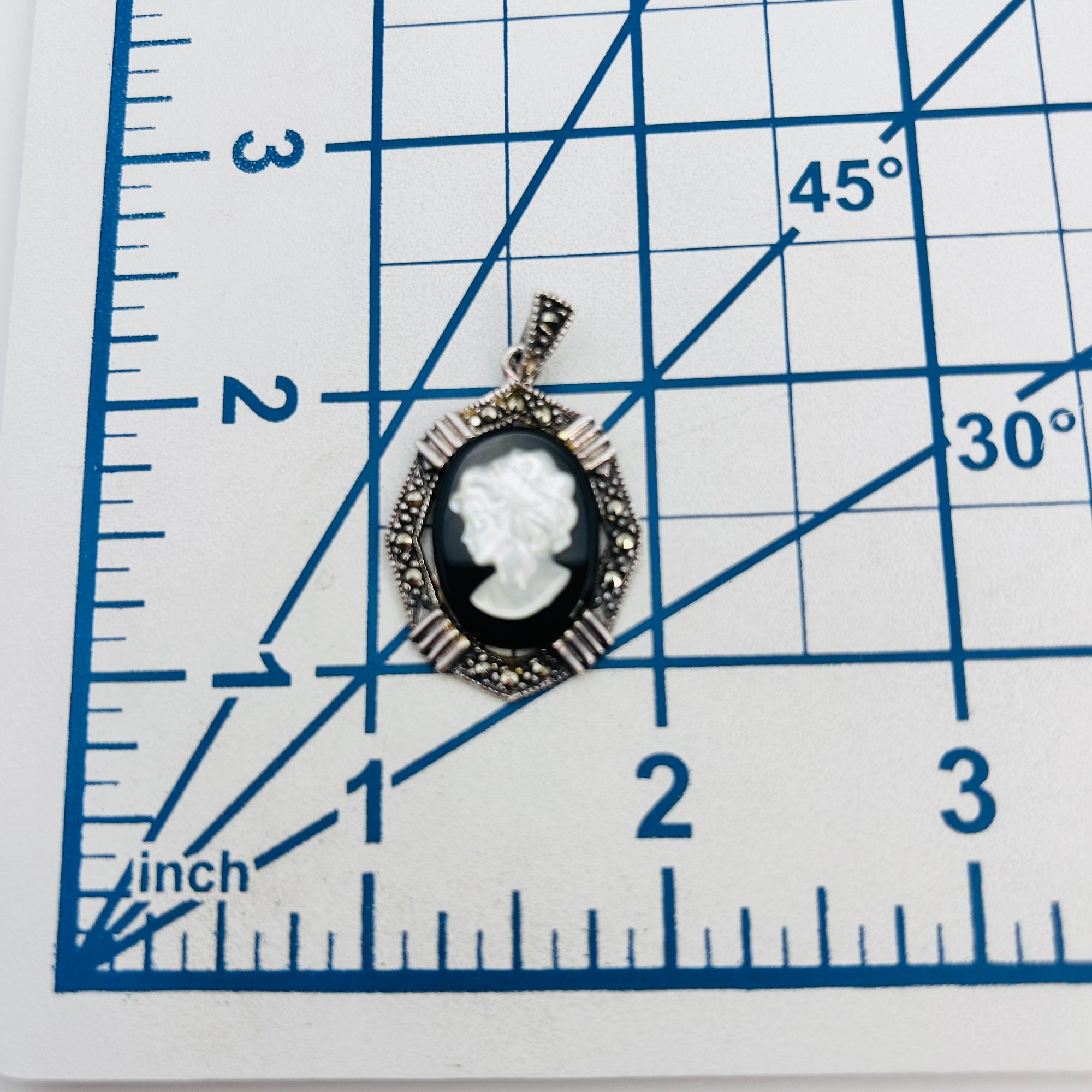MO Sterling carved cameo Marcasite pendant 4.9 g