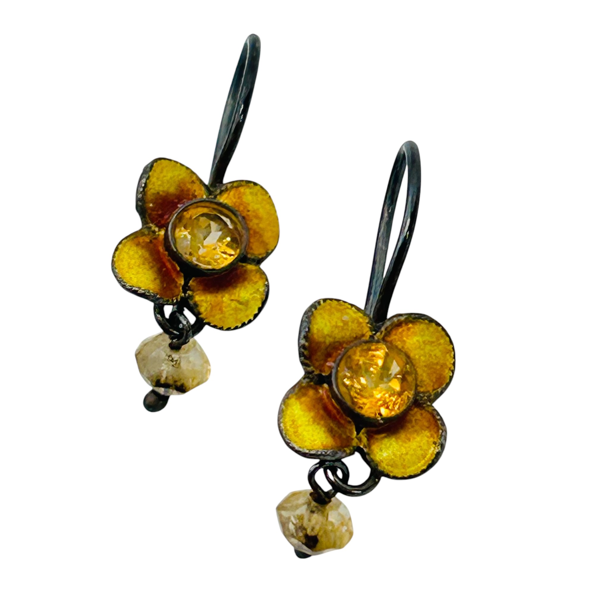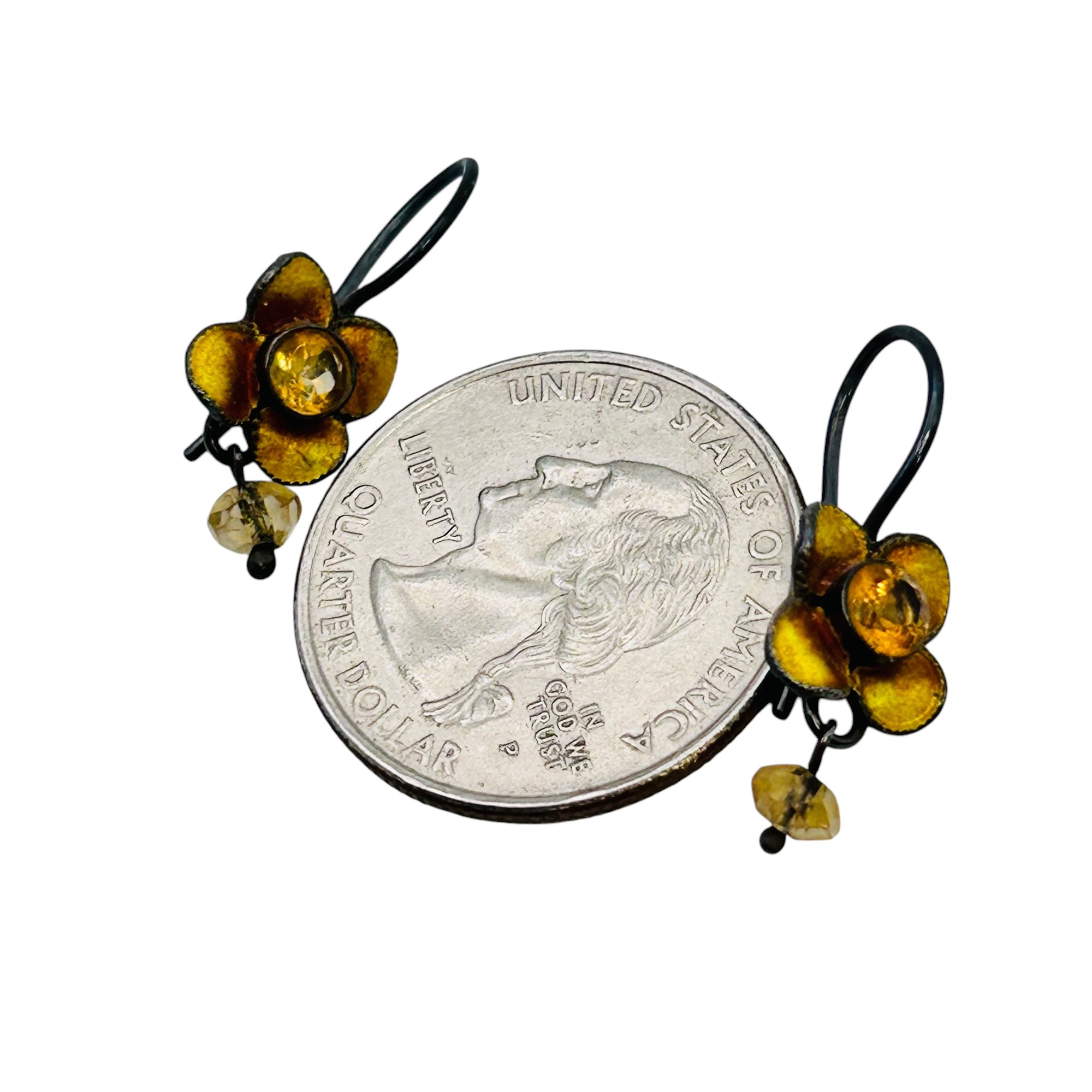 Citrine vintage sterling flour dangle earrings 1.81 g