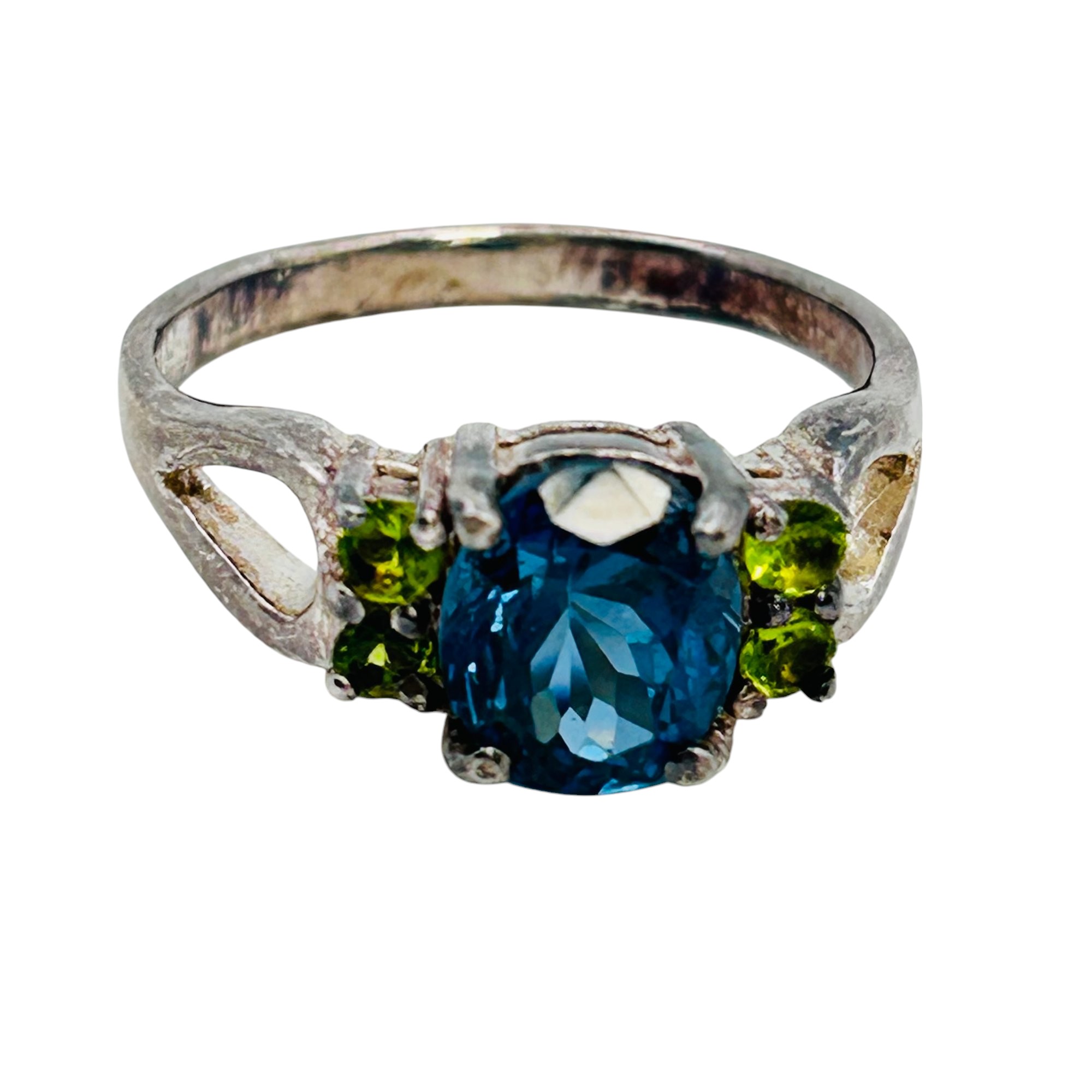 Topaz Sterling Ring cut out band size 8.5 4.32 g