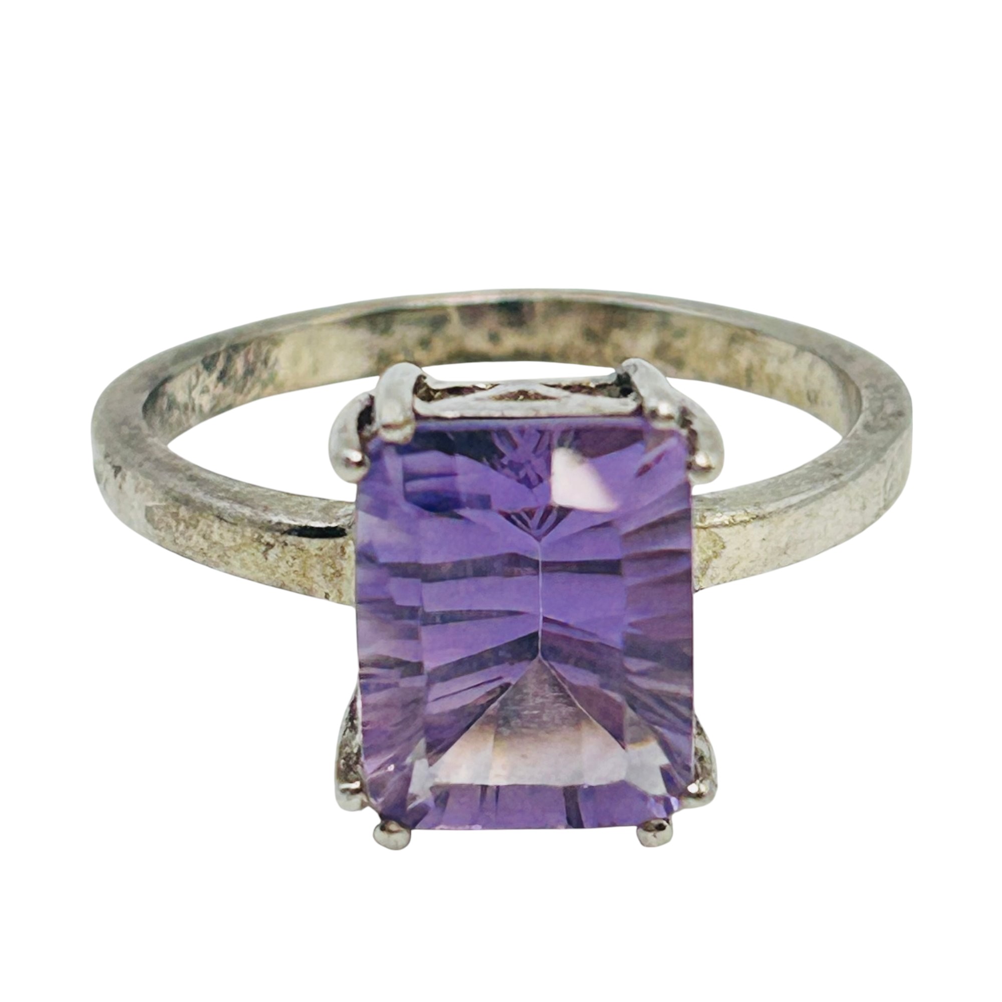 Square cut amethyst sterling ring size 8.5 3.19 g
