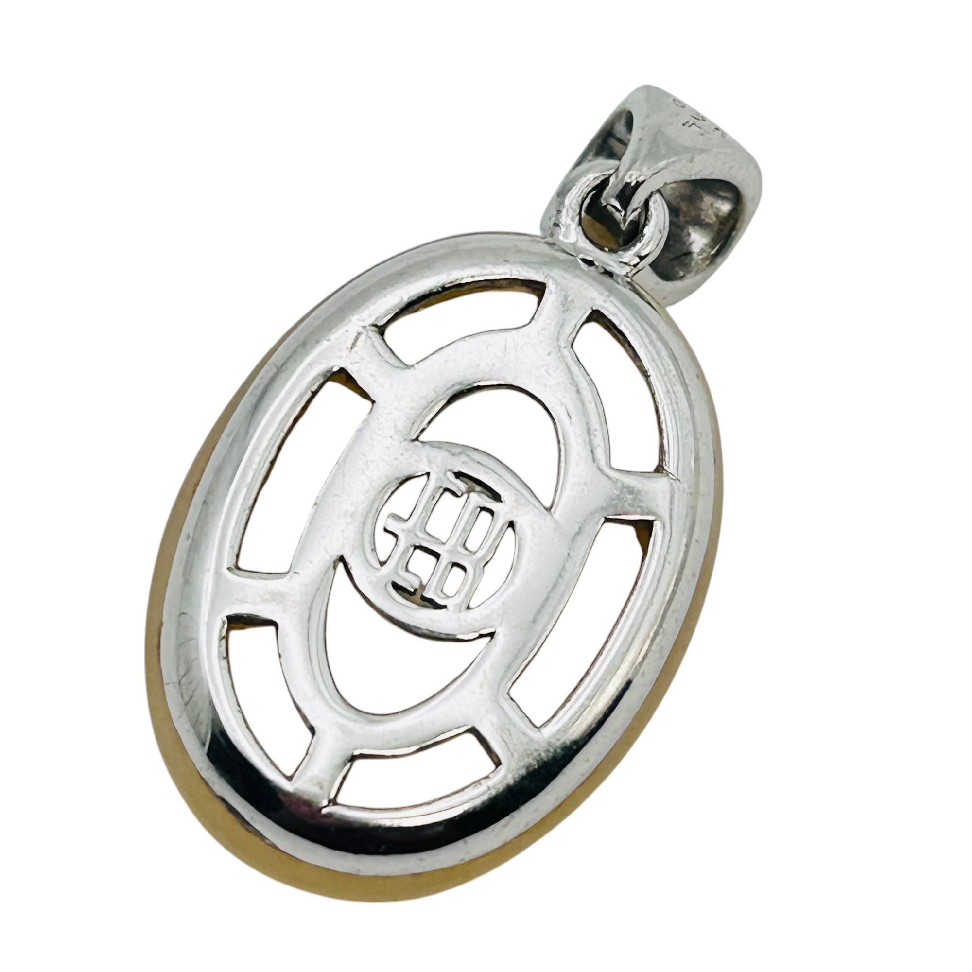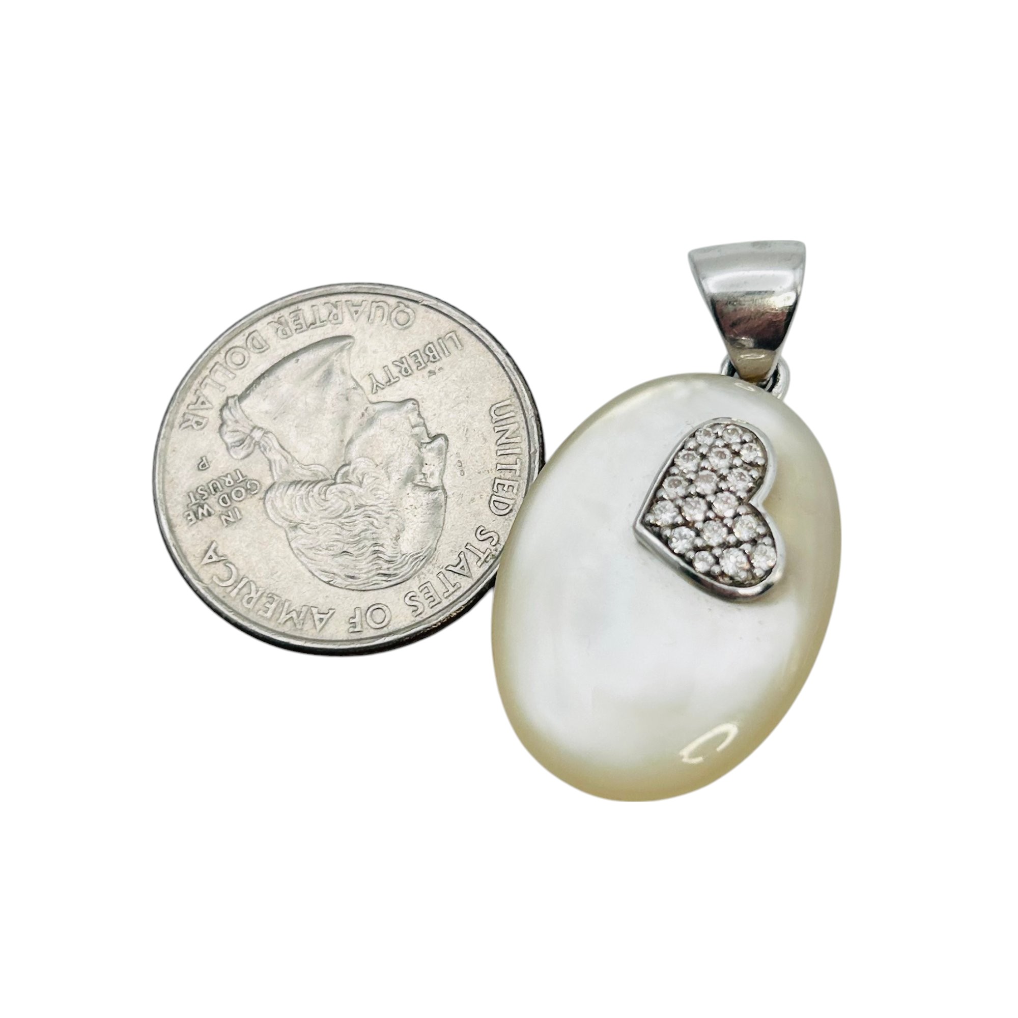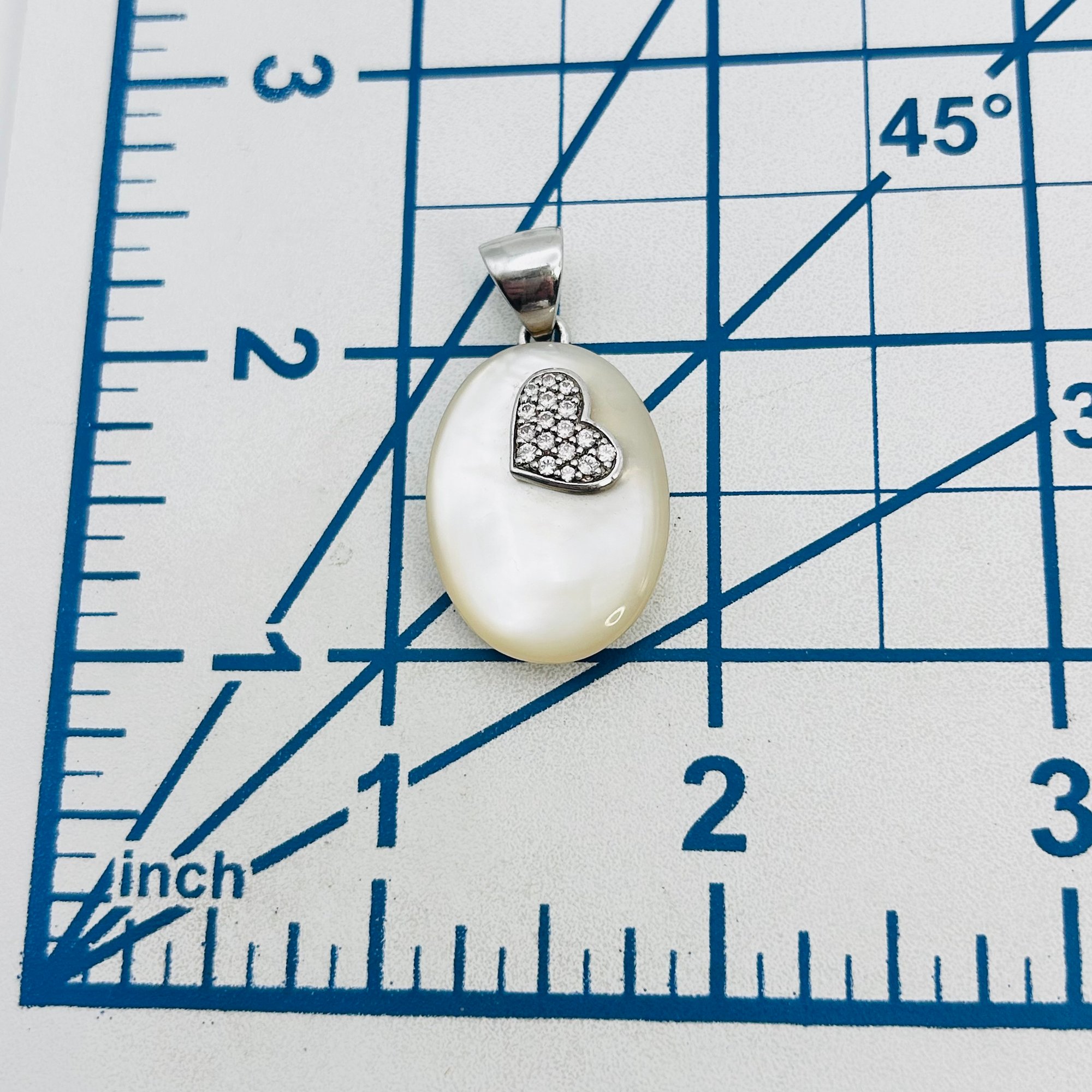 Signed mother of Pearl rhinestone heart Sterling pendant 9.59 g