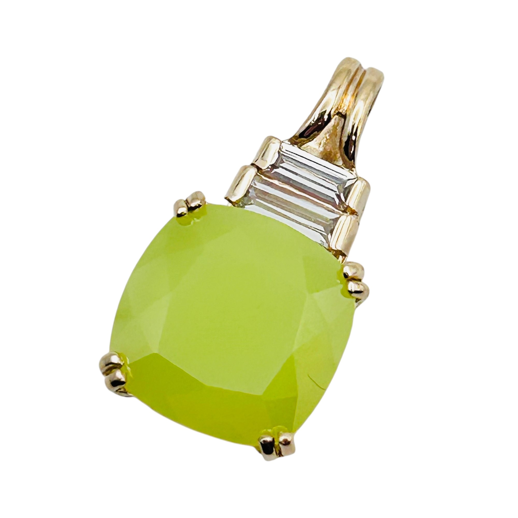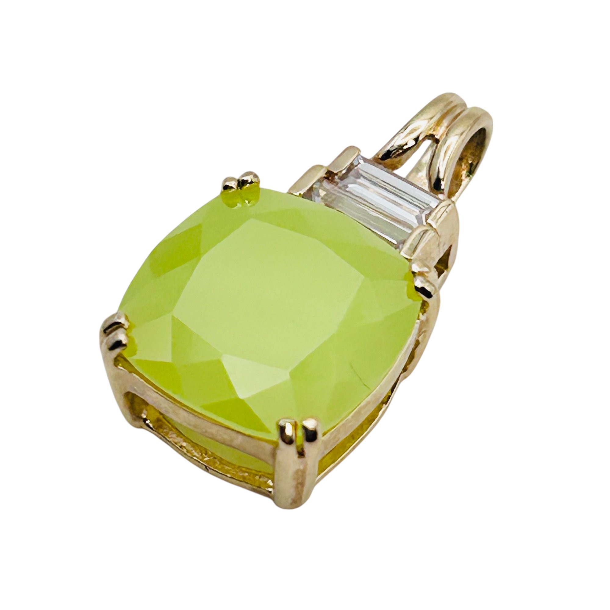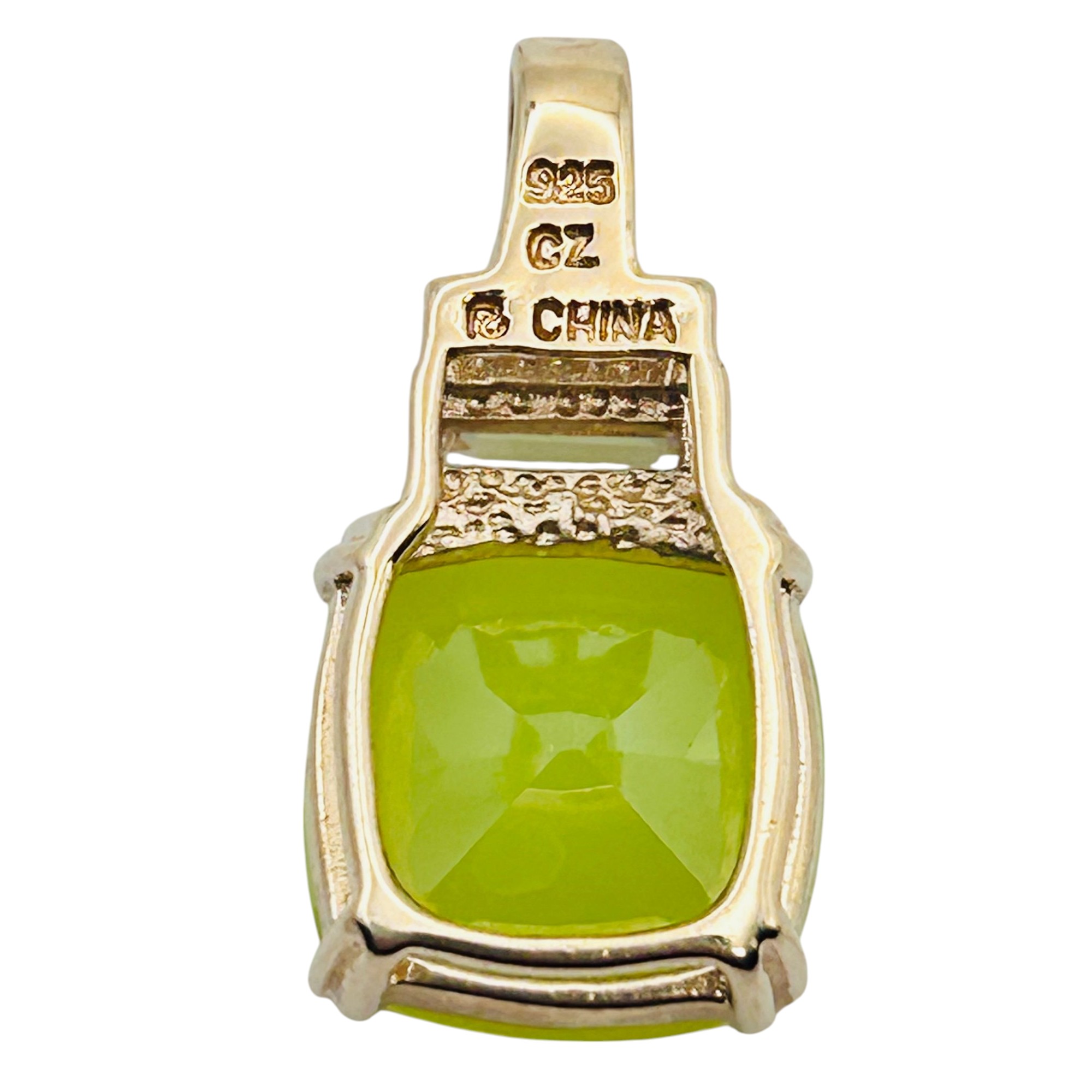 Green tourmaline cubic zirconia sterling Square pendant 4.1 g