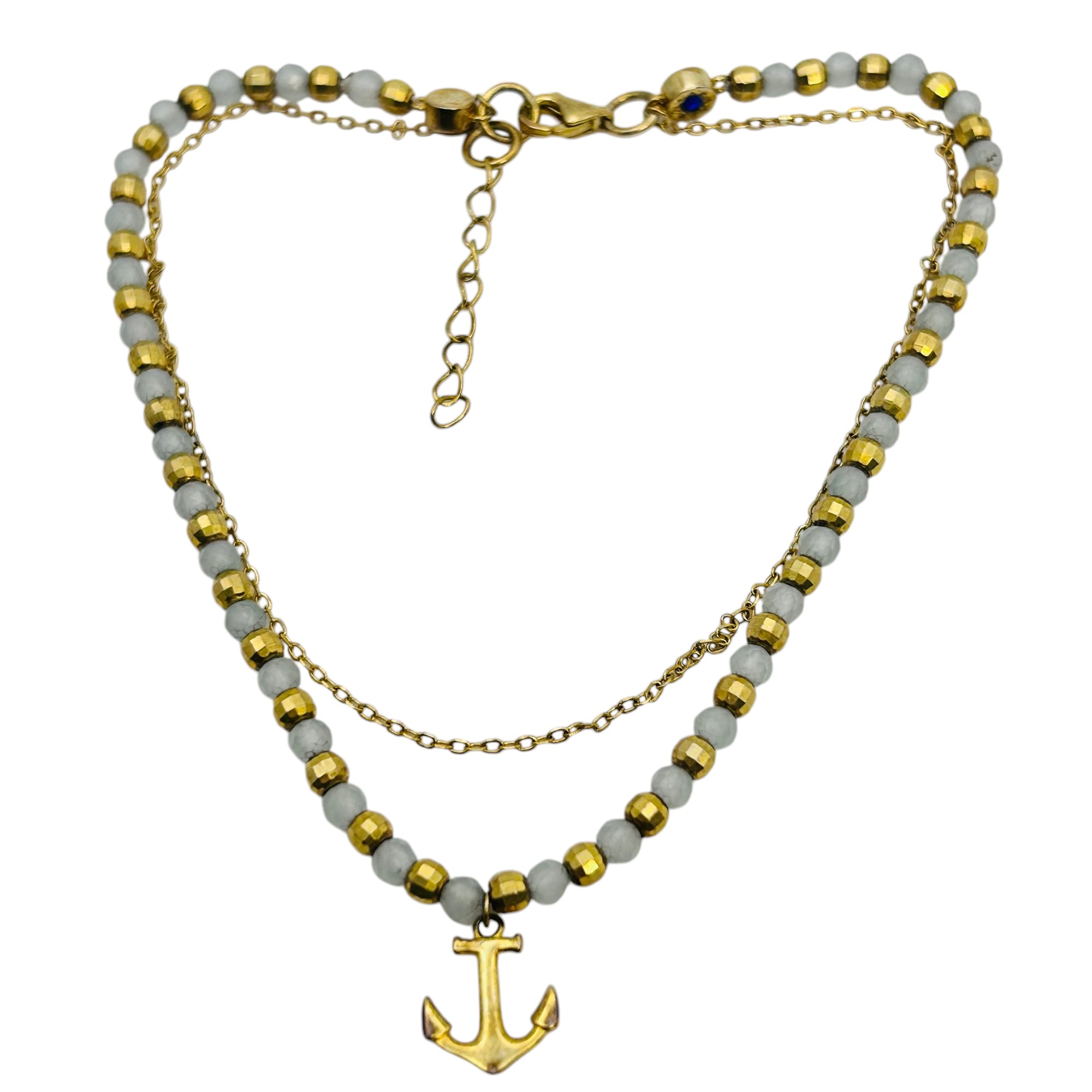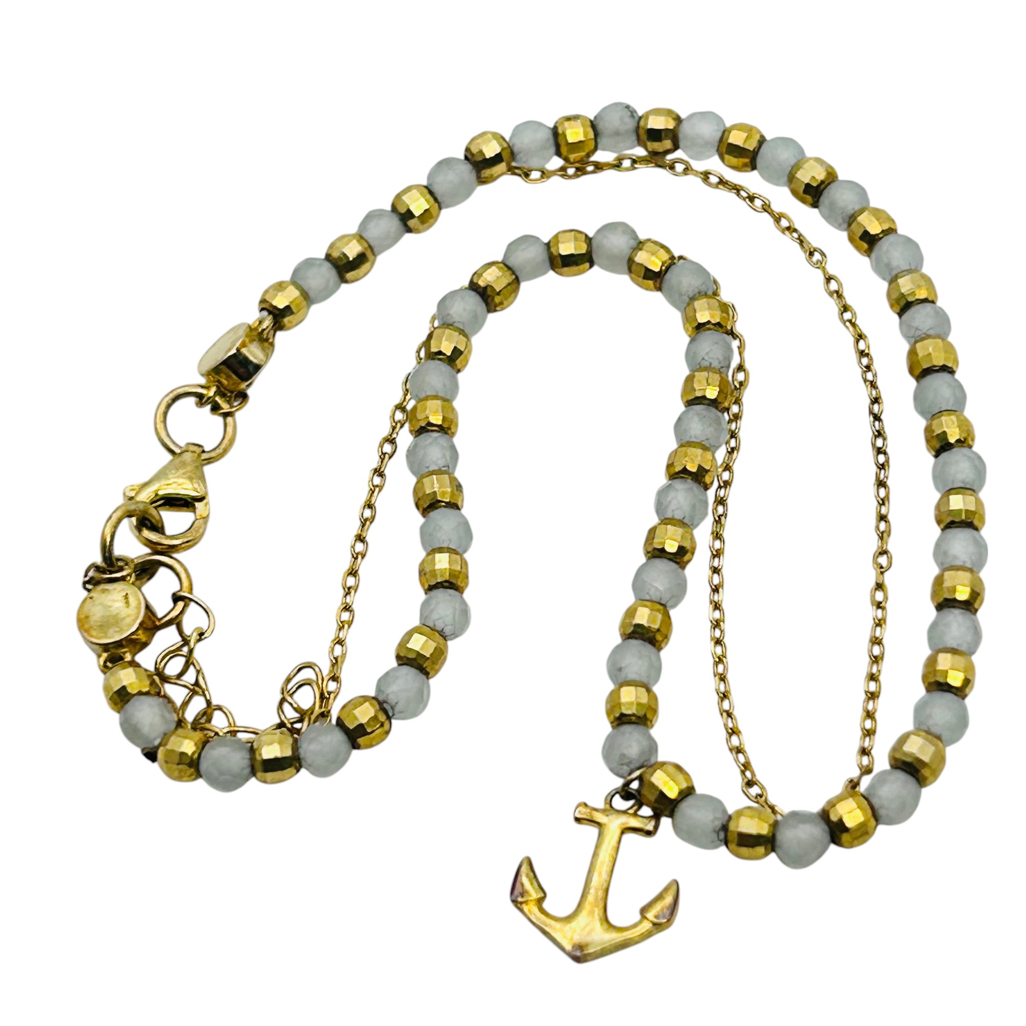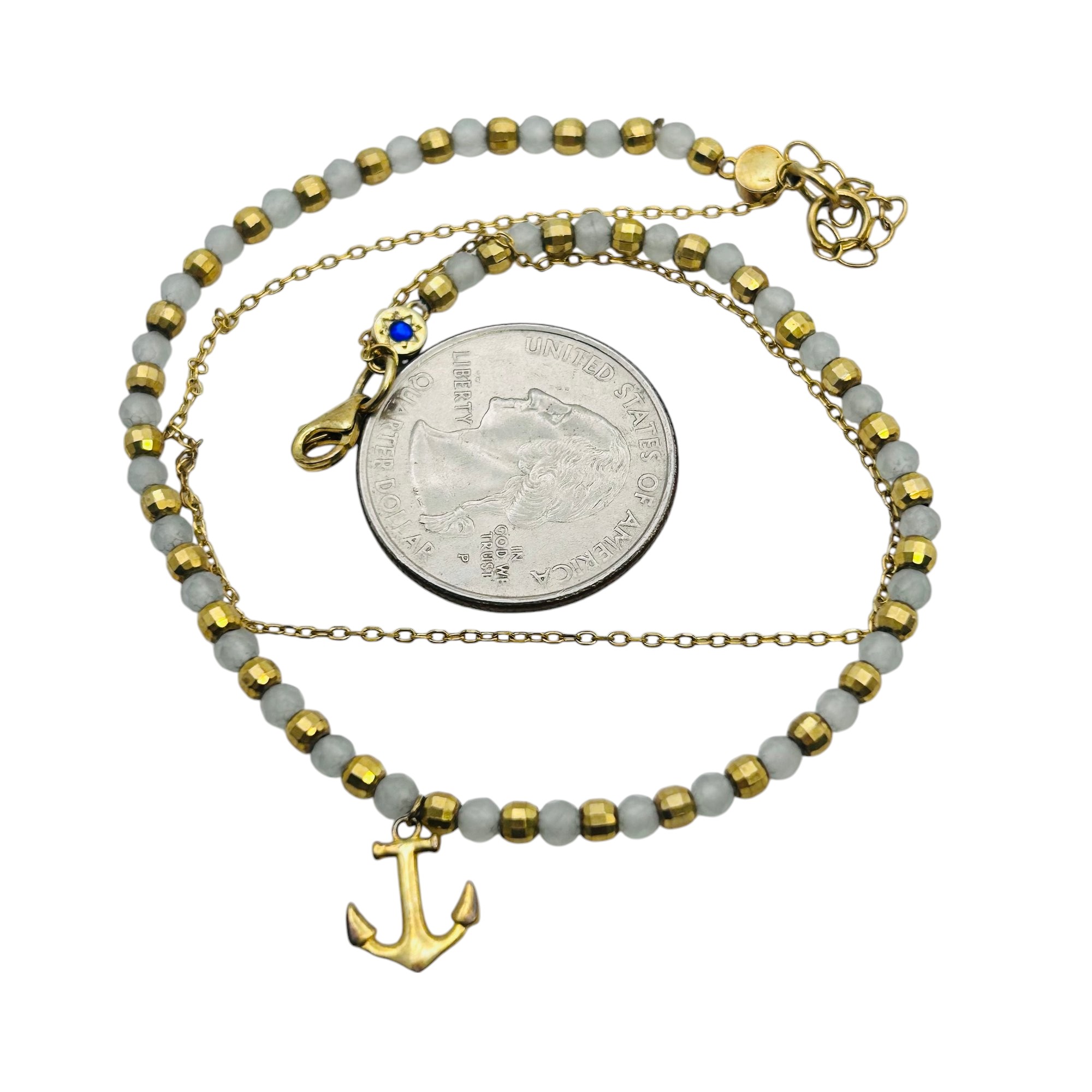Quartz bead and Sterling cable chain bracelet anchor pendant 4.94 g