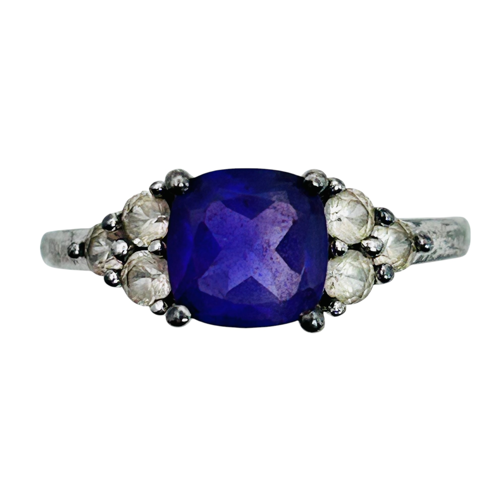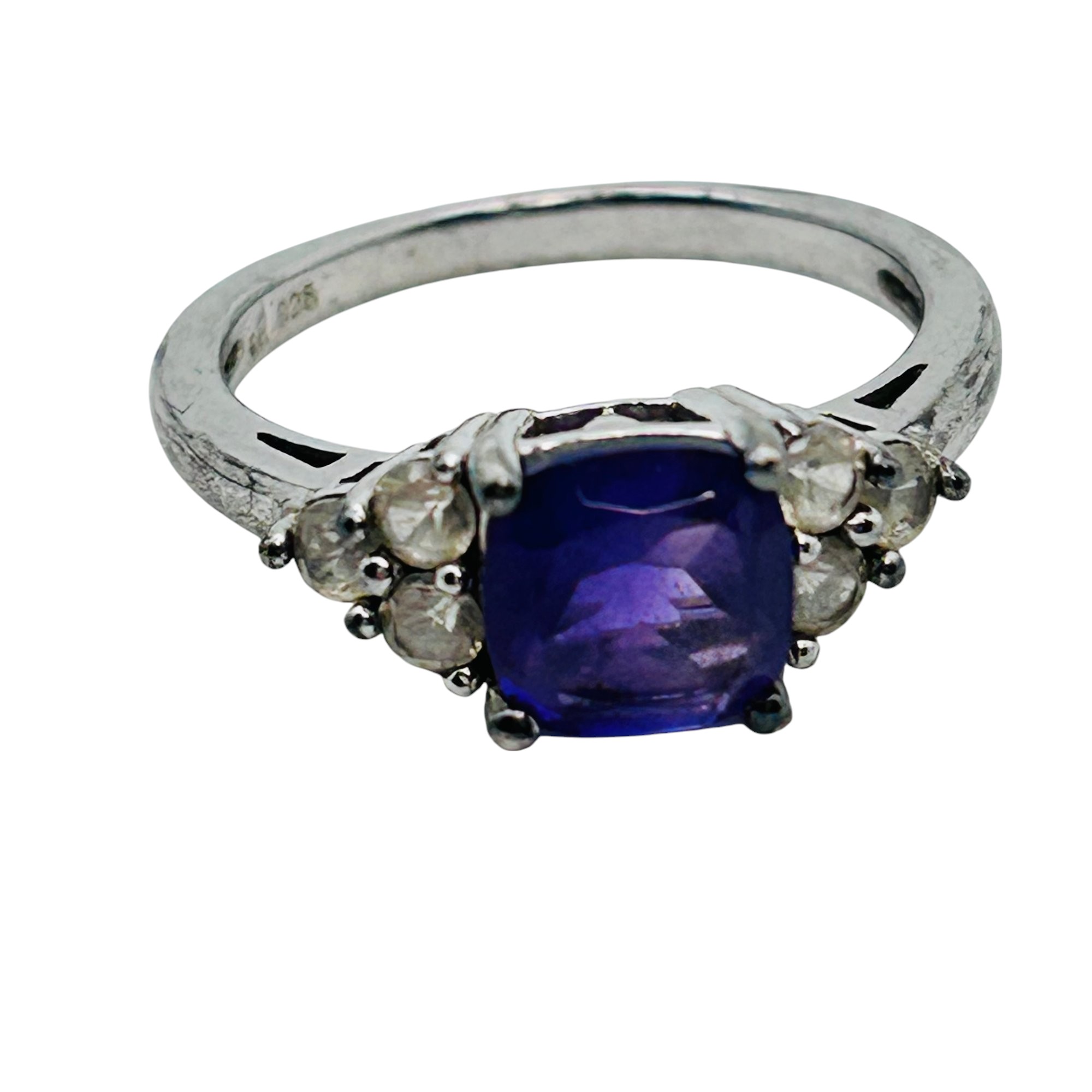 Amethyst white sapphire Sterling ring unknown mark size 7 3 g