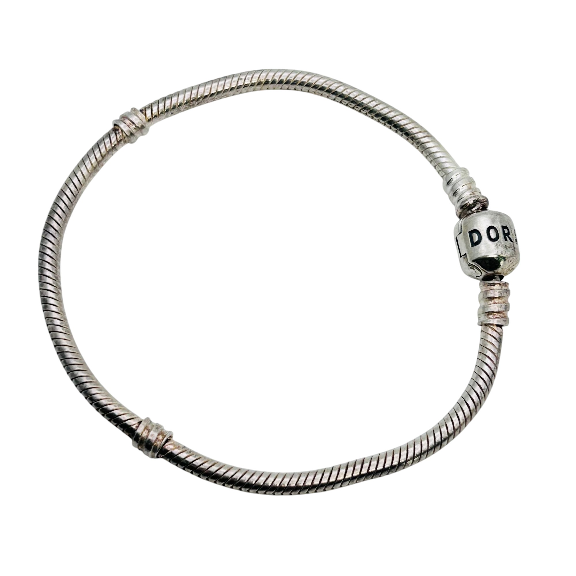 Pandora Sterling round snake chain charm bracelet 13.93 g
