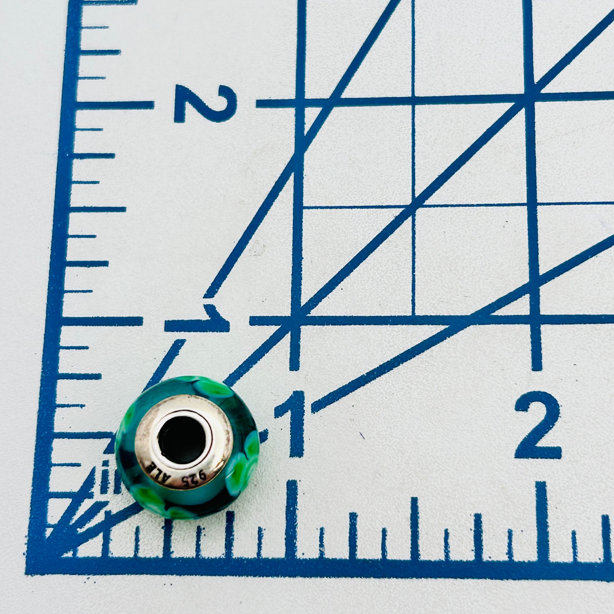 Pandora Sterling blue Green flower charm 3.42 g