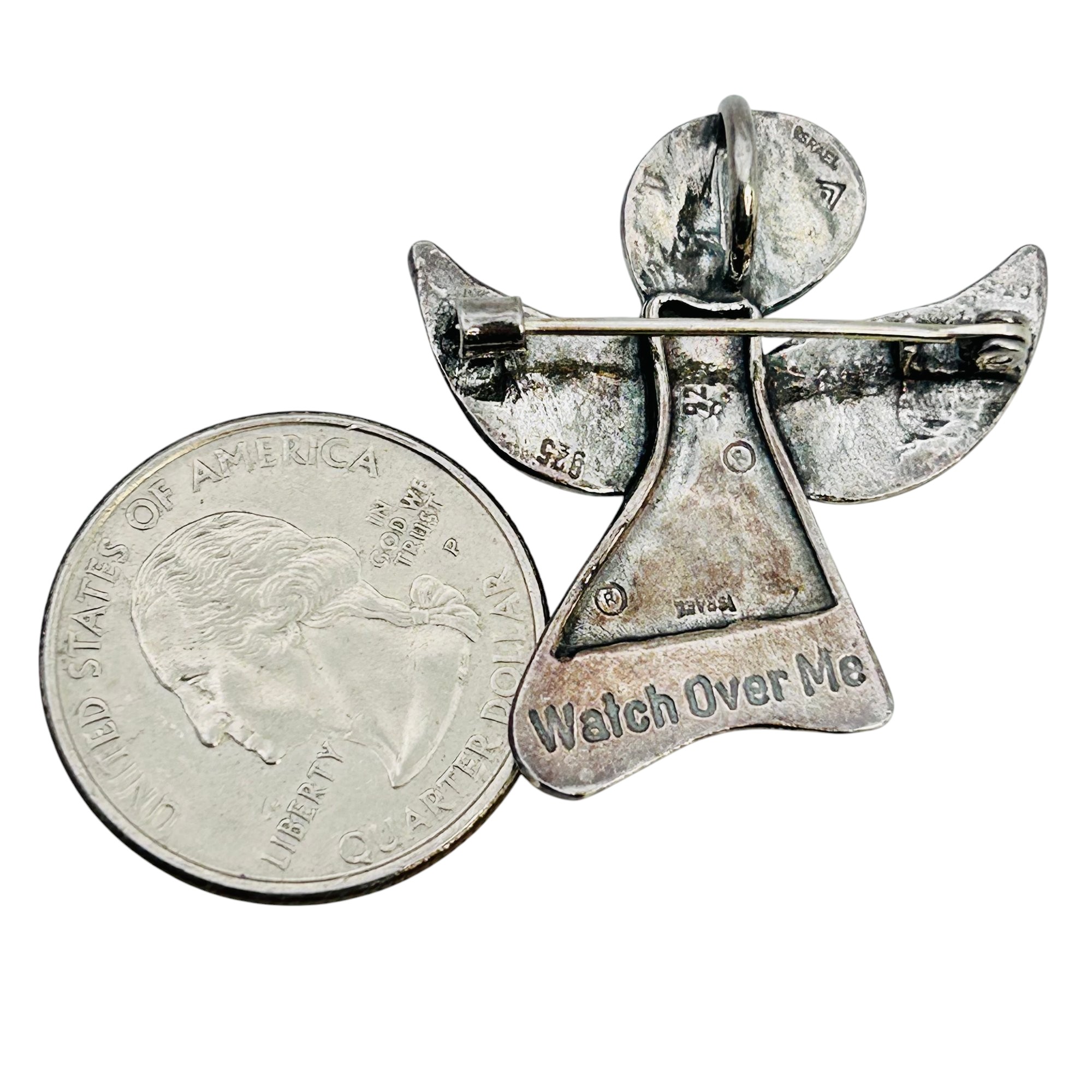 Silpada Israel Sterling angel pin or pendant 4.96 g engraved “watch over me”