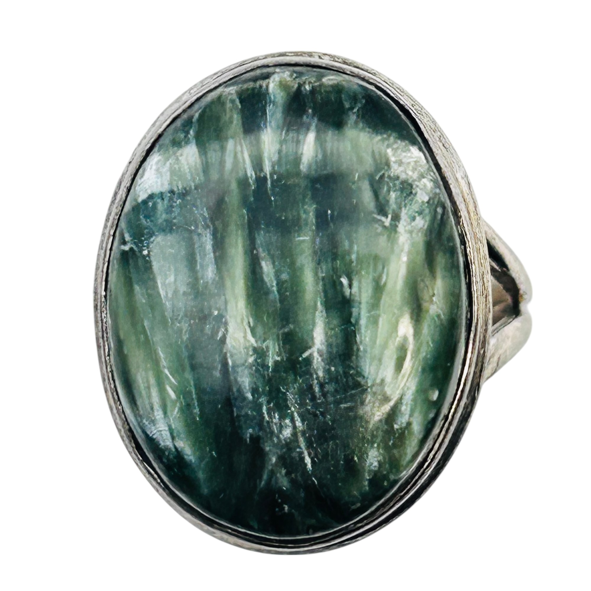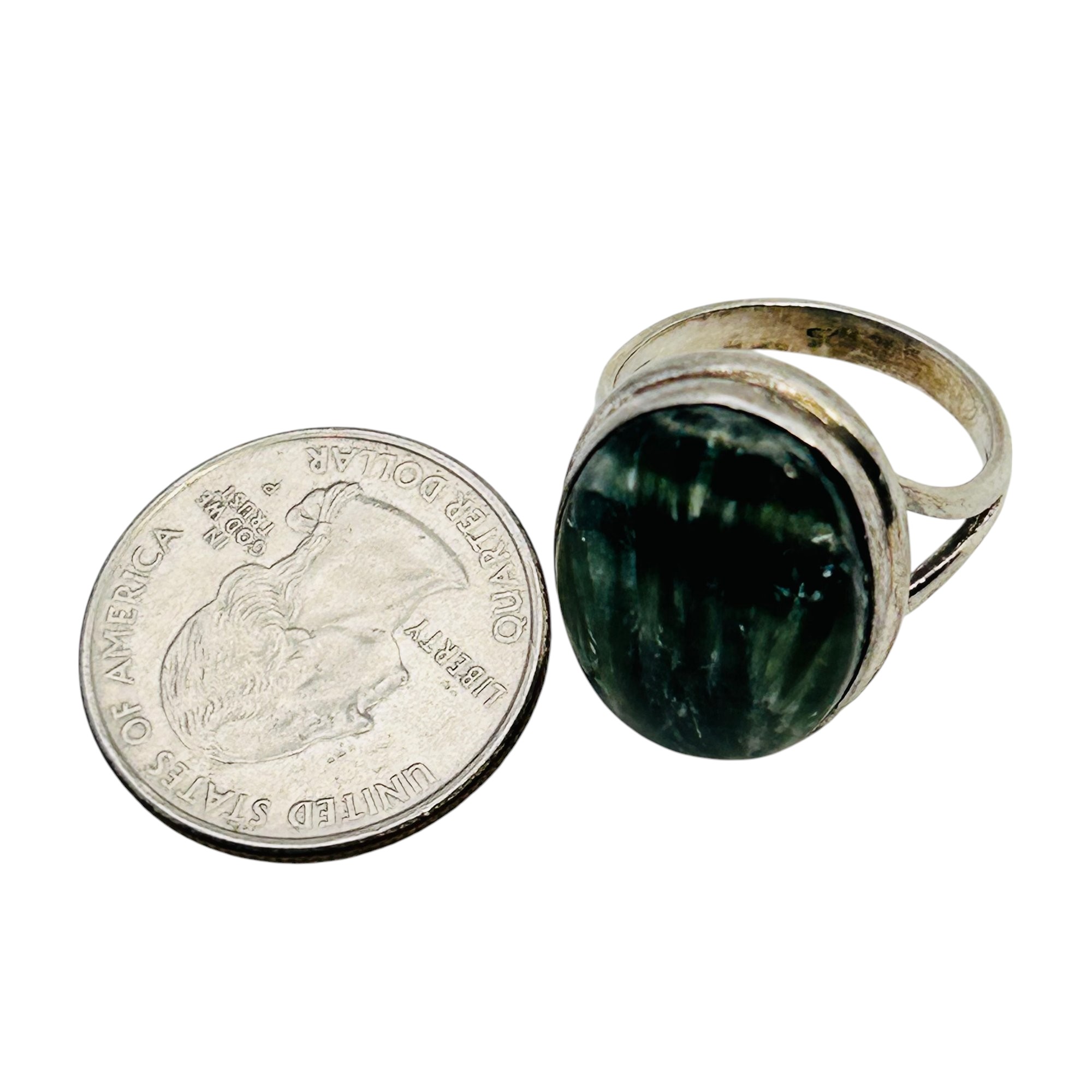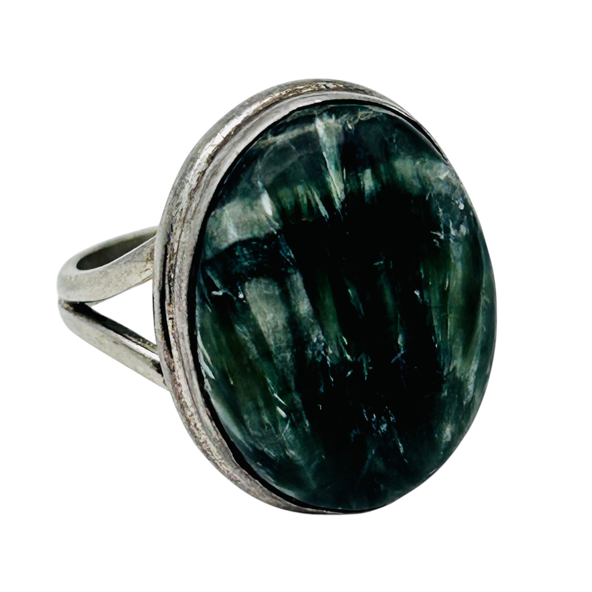 SERAPHINITE oval Sterling statement ring size 8.5 6.74 g