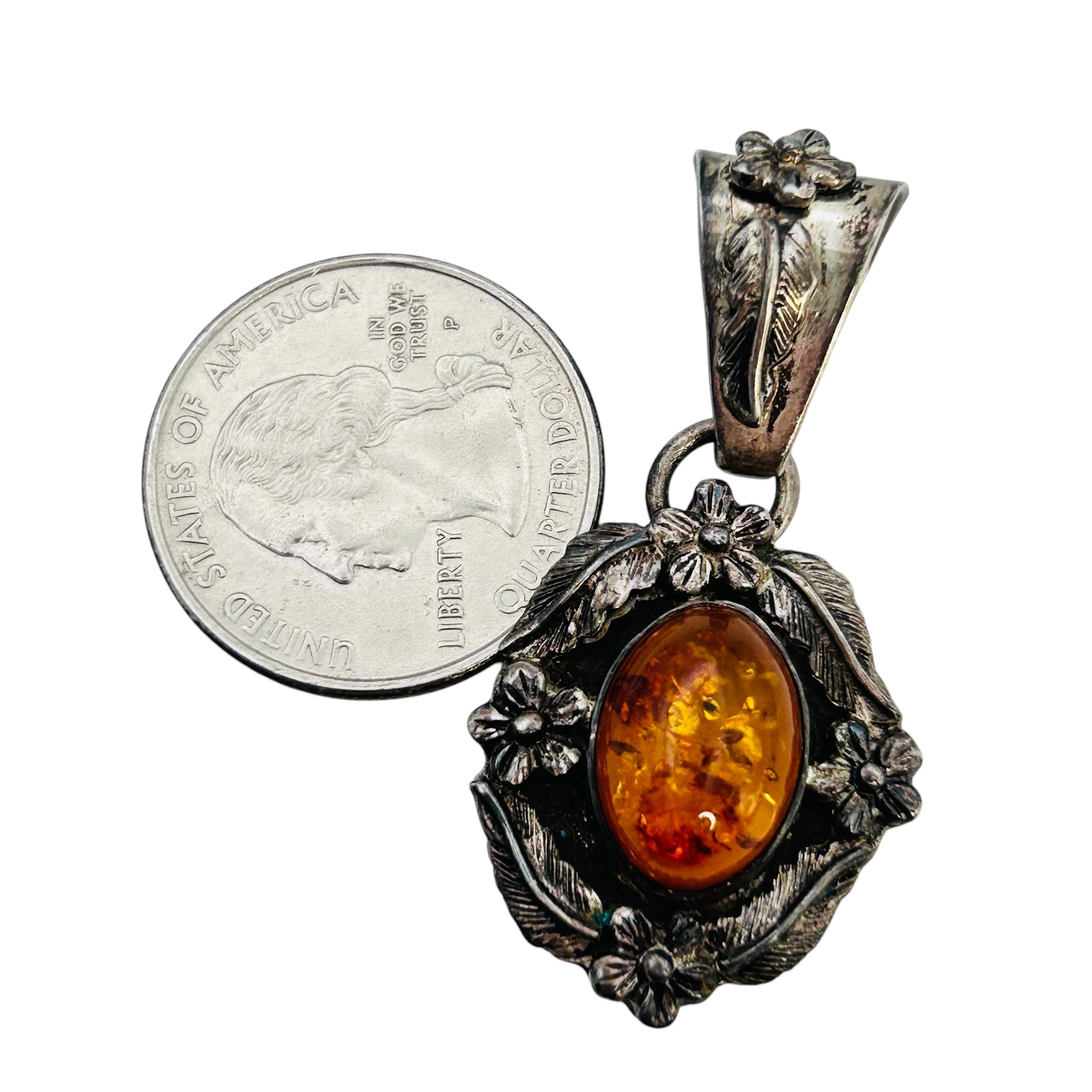 F Amber Sterling vintage pendant 7.51 g