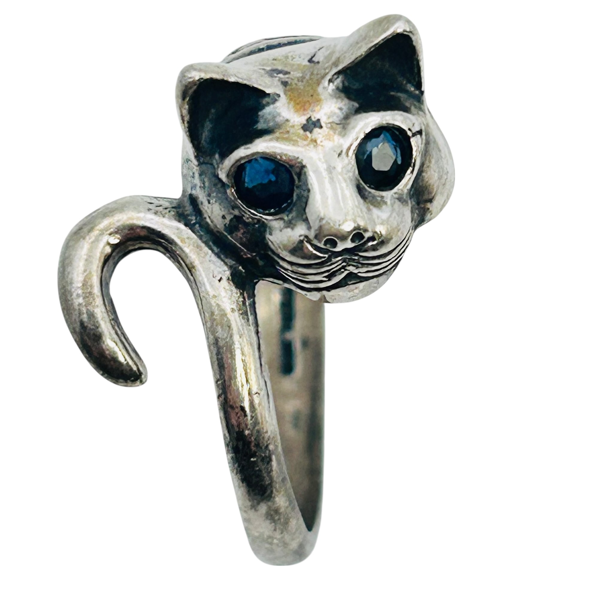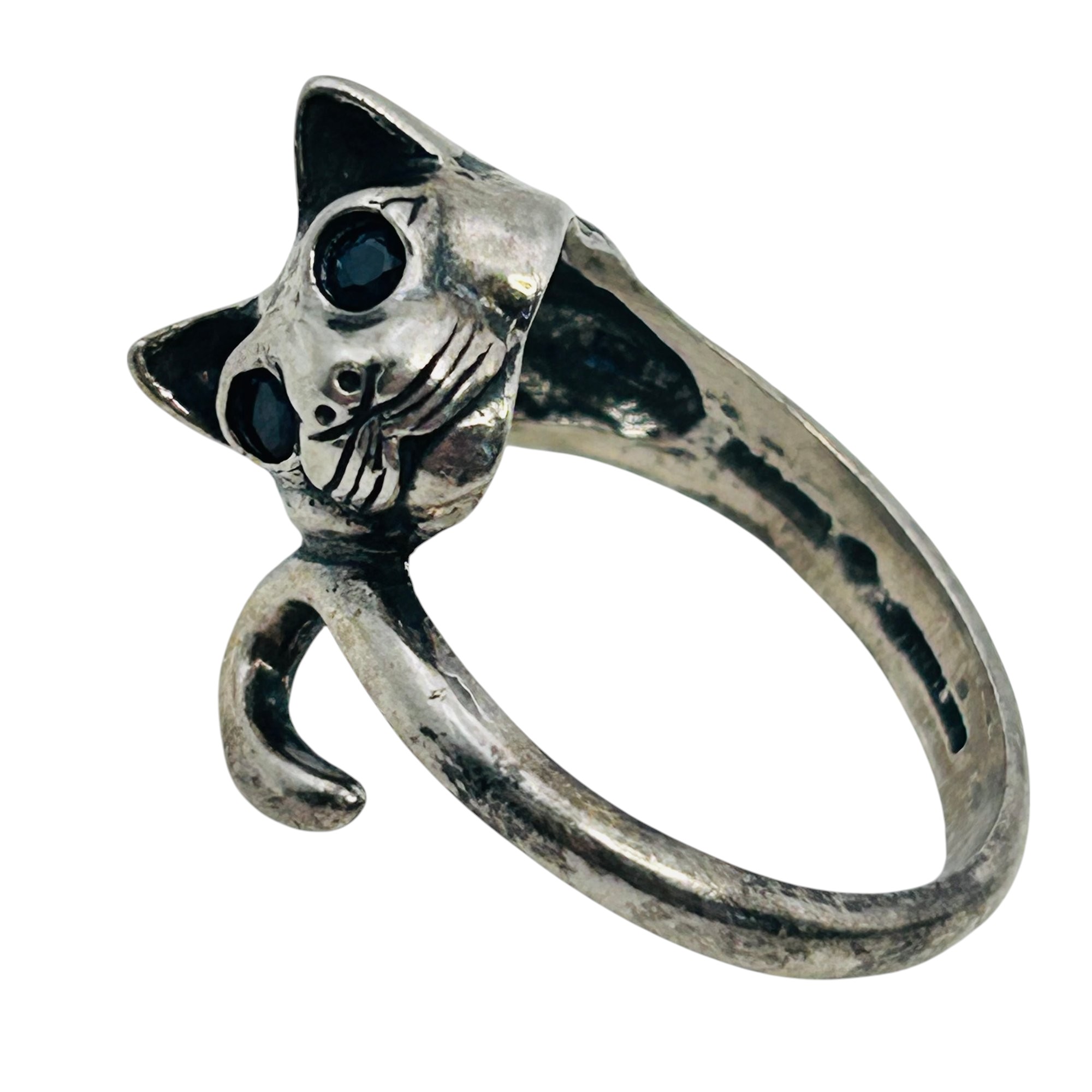 KABANA topaz eyed Sterling feline chasing tail ring size 6.5 5.29 g
