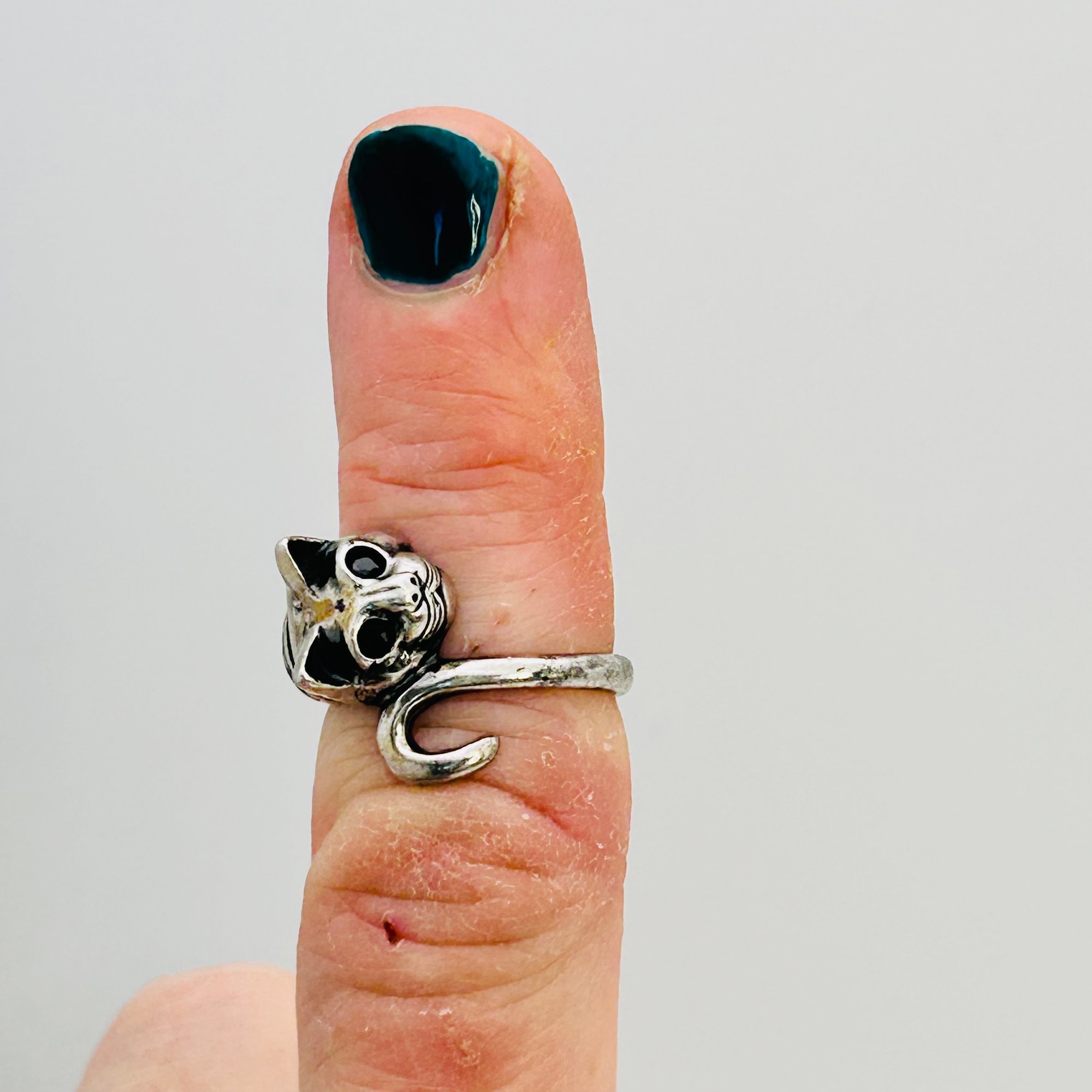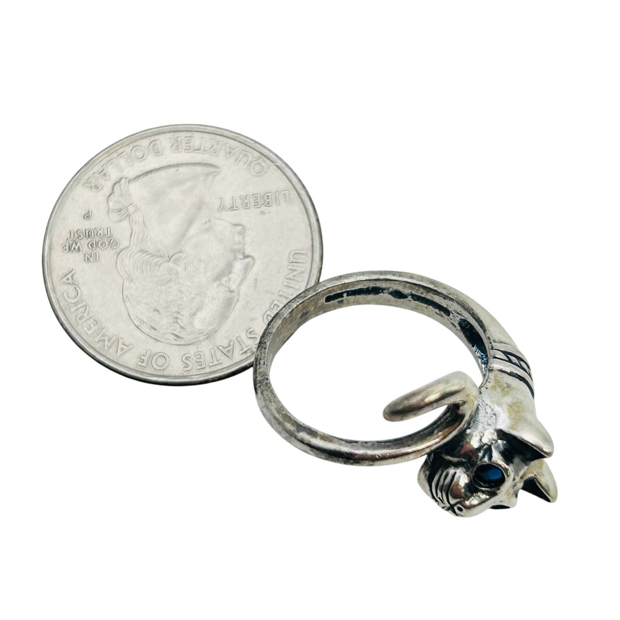 KABANA Topaz Eyed Sterling Feline Chasing Tail Ring Size 6.5, 5.29 G