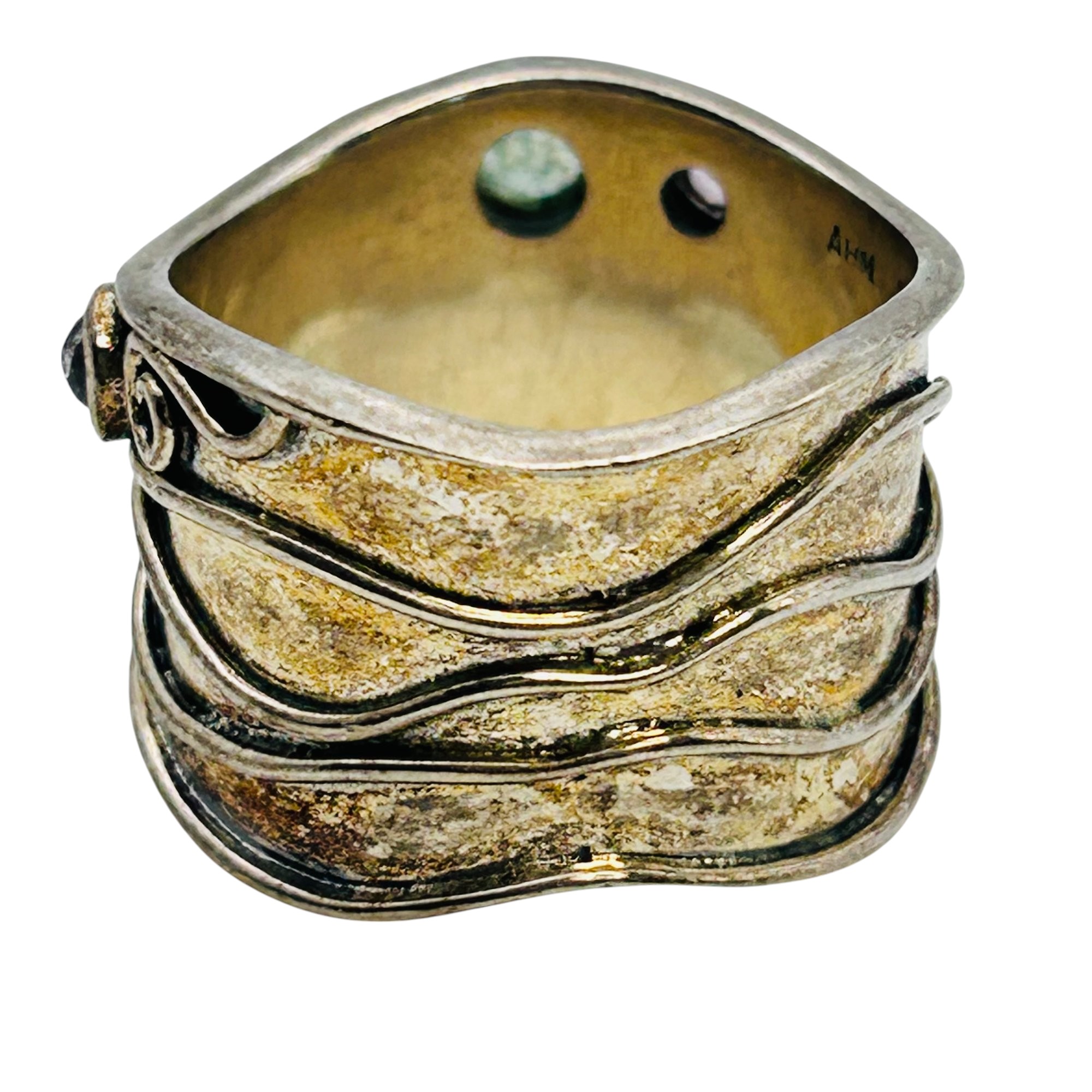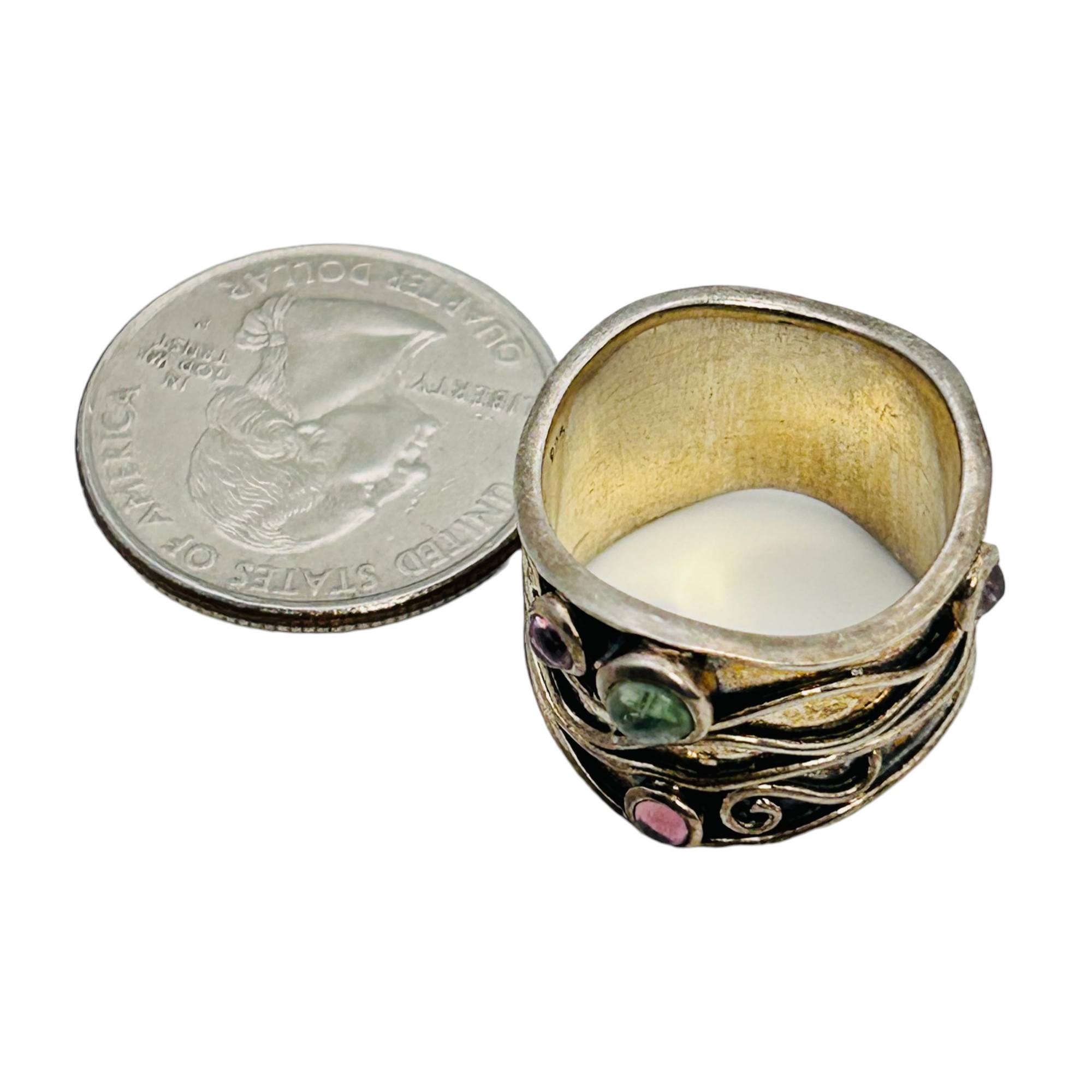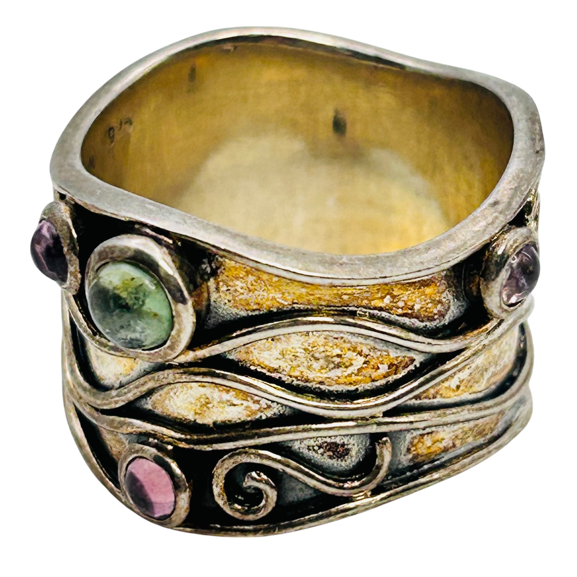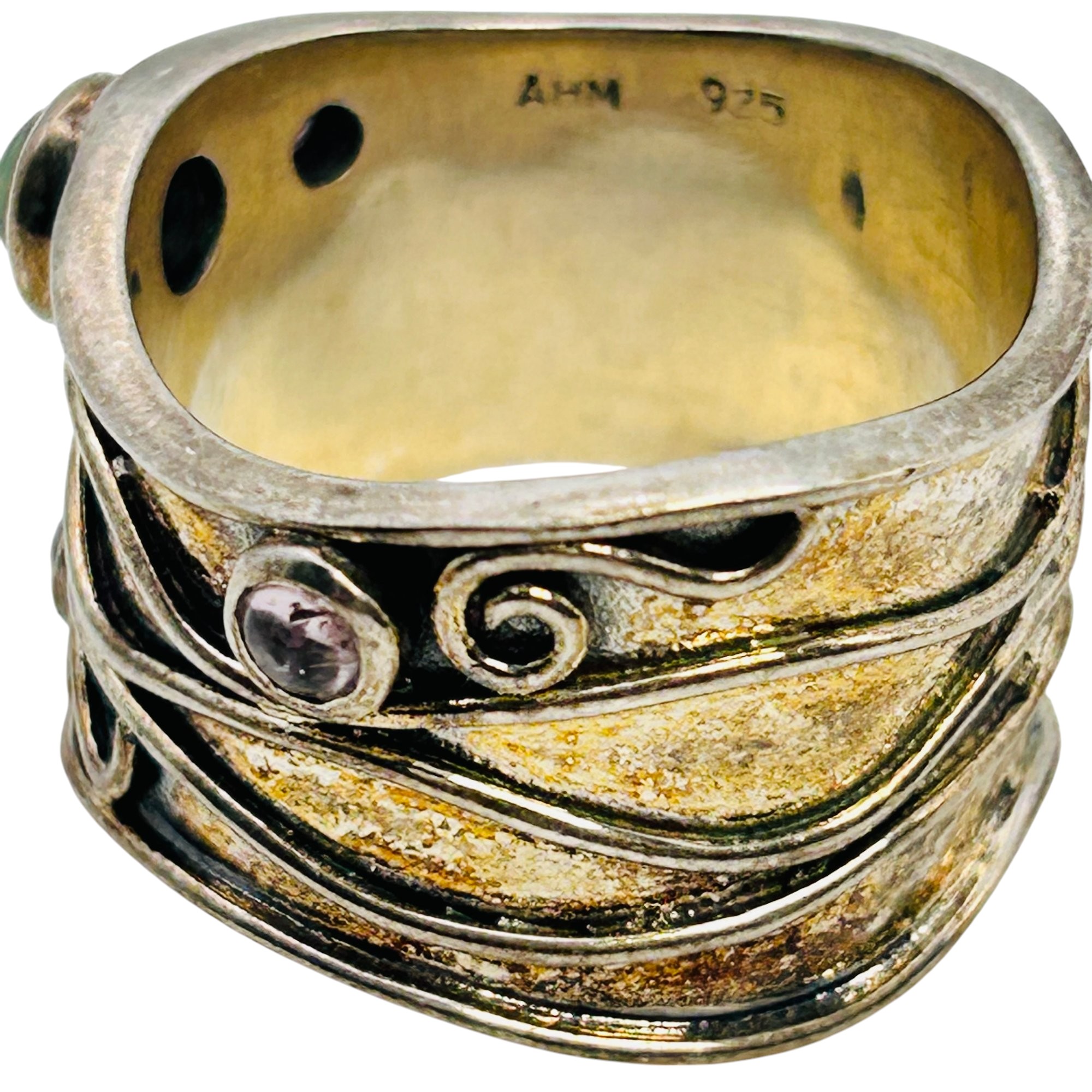 AHM amethyst and garnet sterling wide curved band ring size 7.5 8.75 g