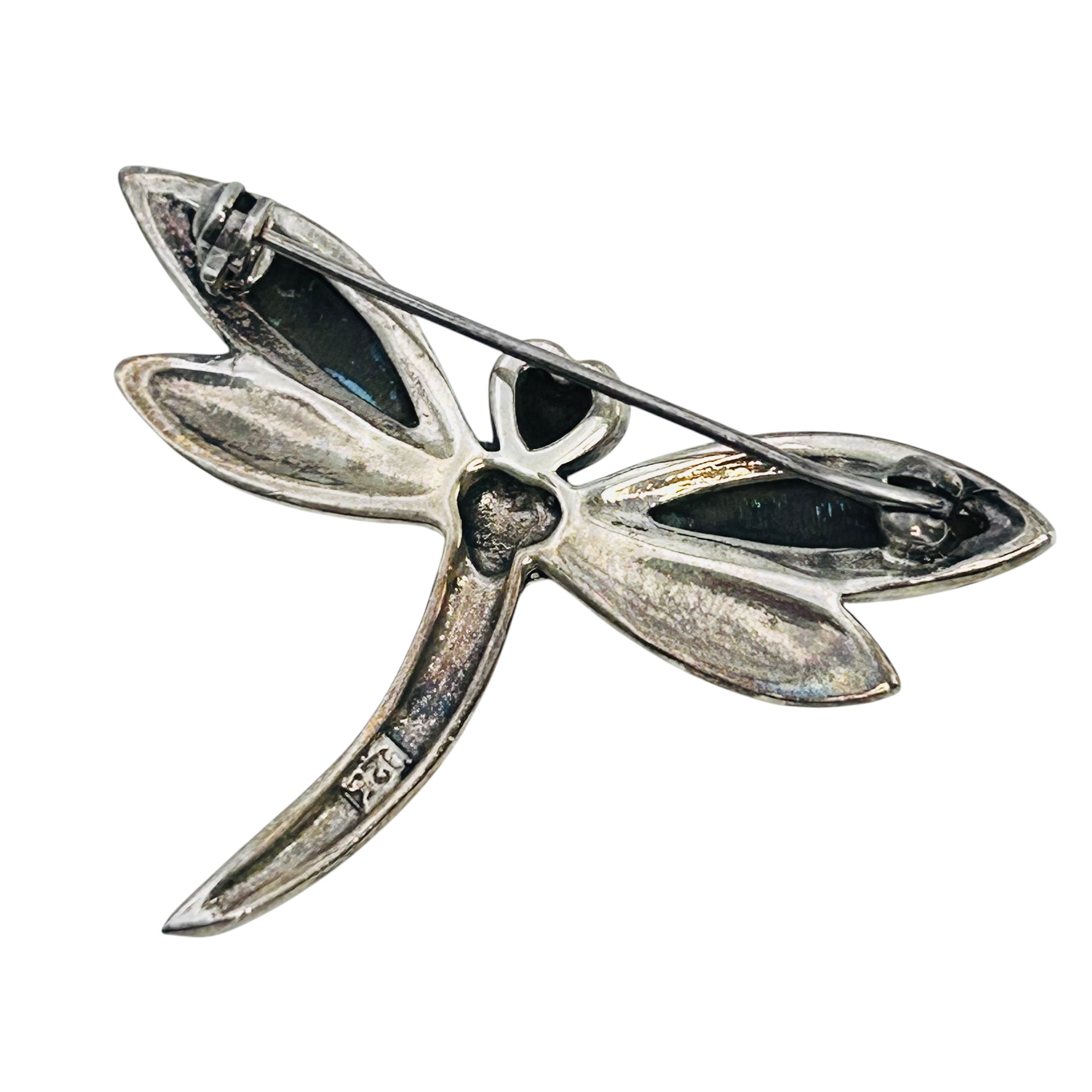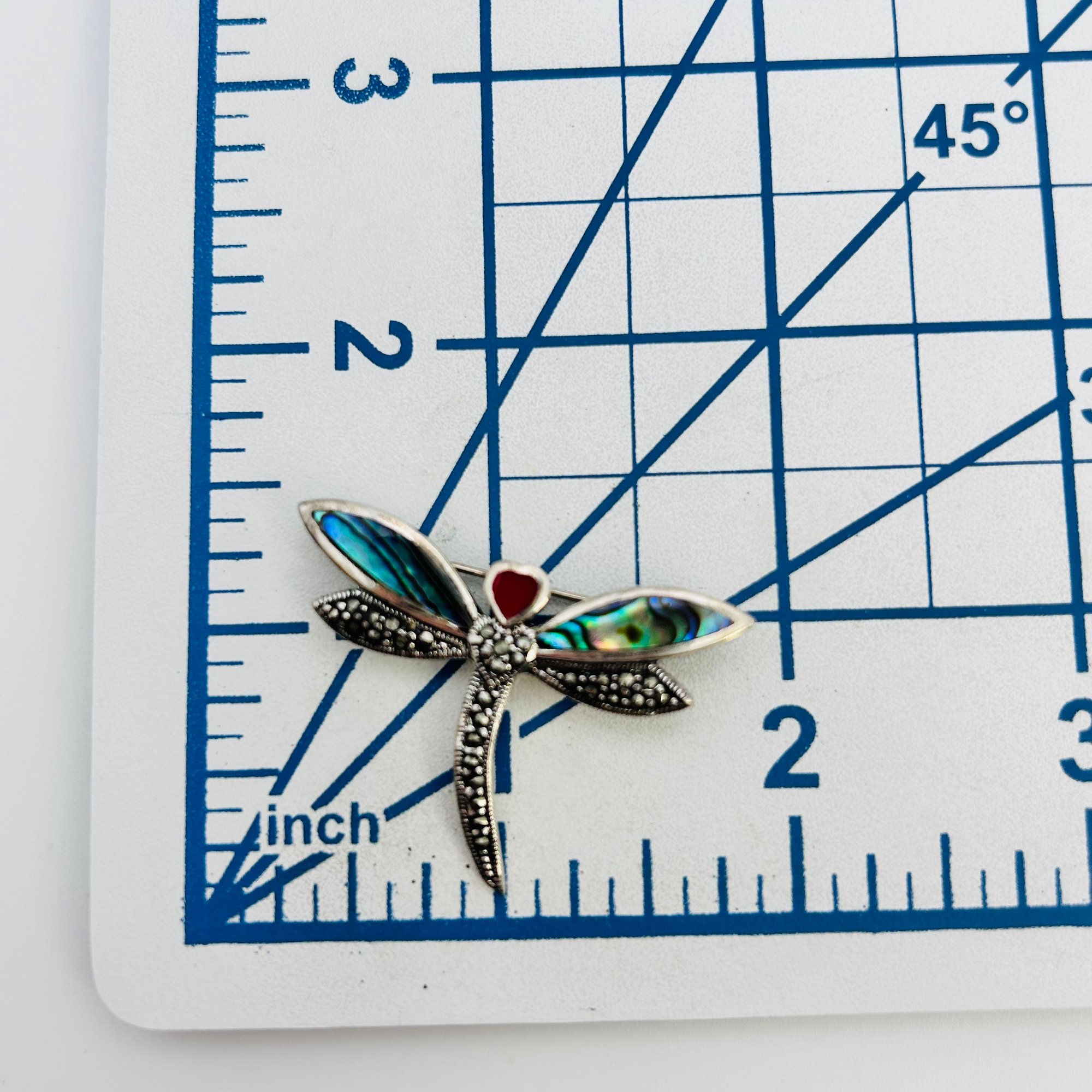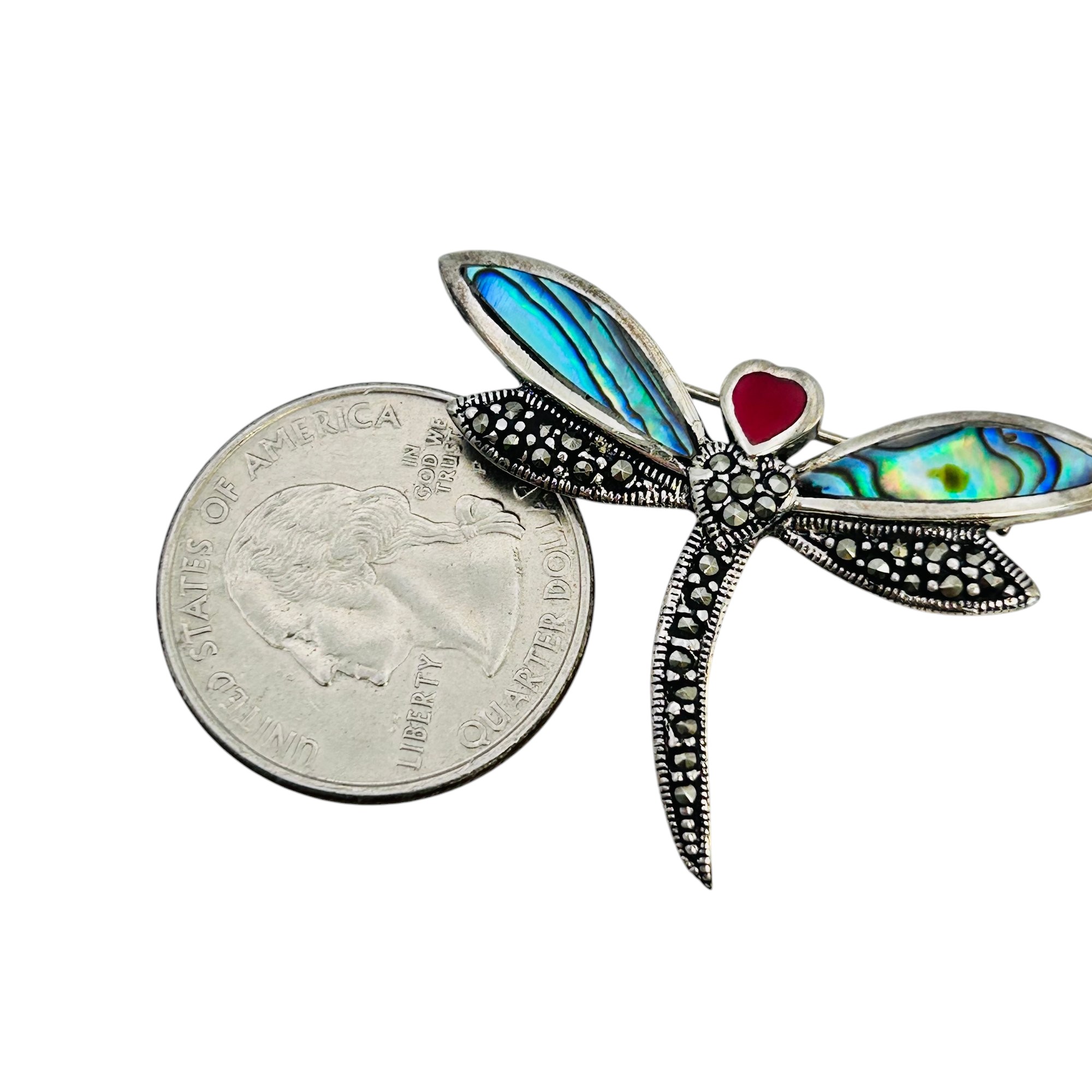 Abalone Sterling MARCASITE dragonfly brooch 5.55 g