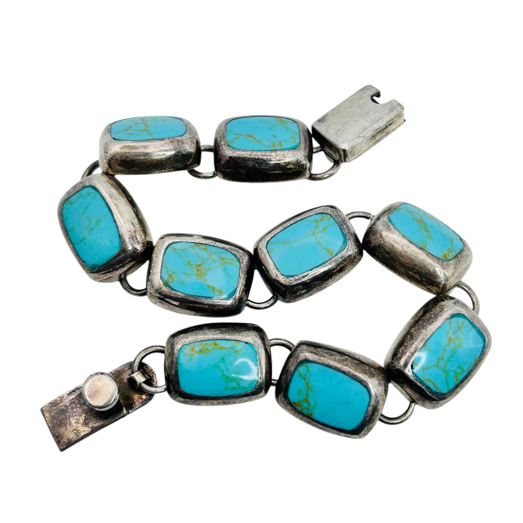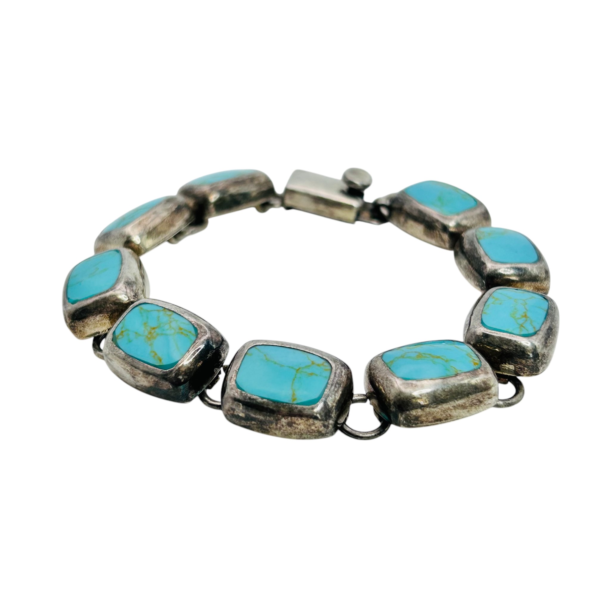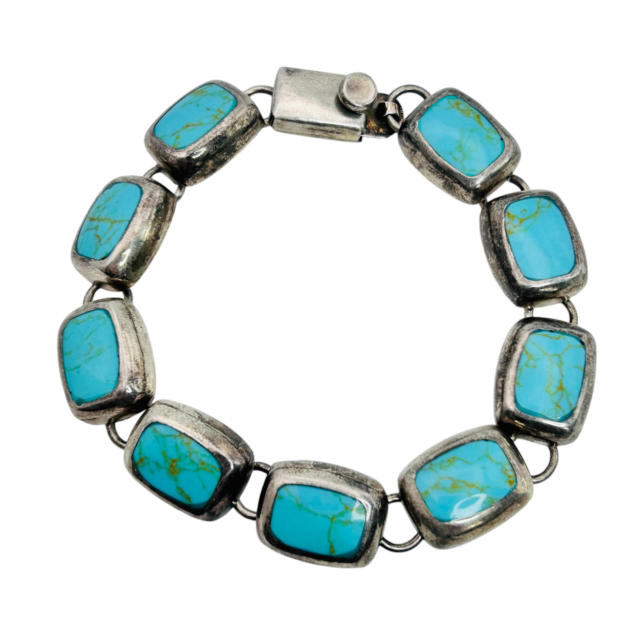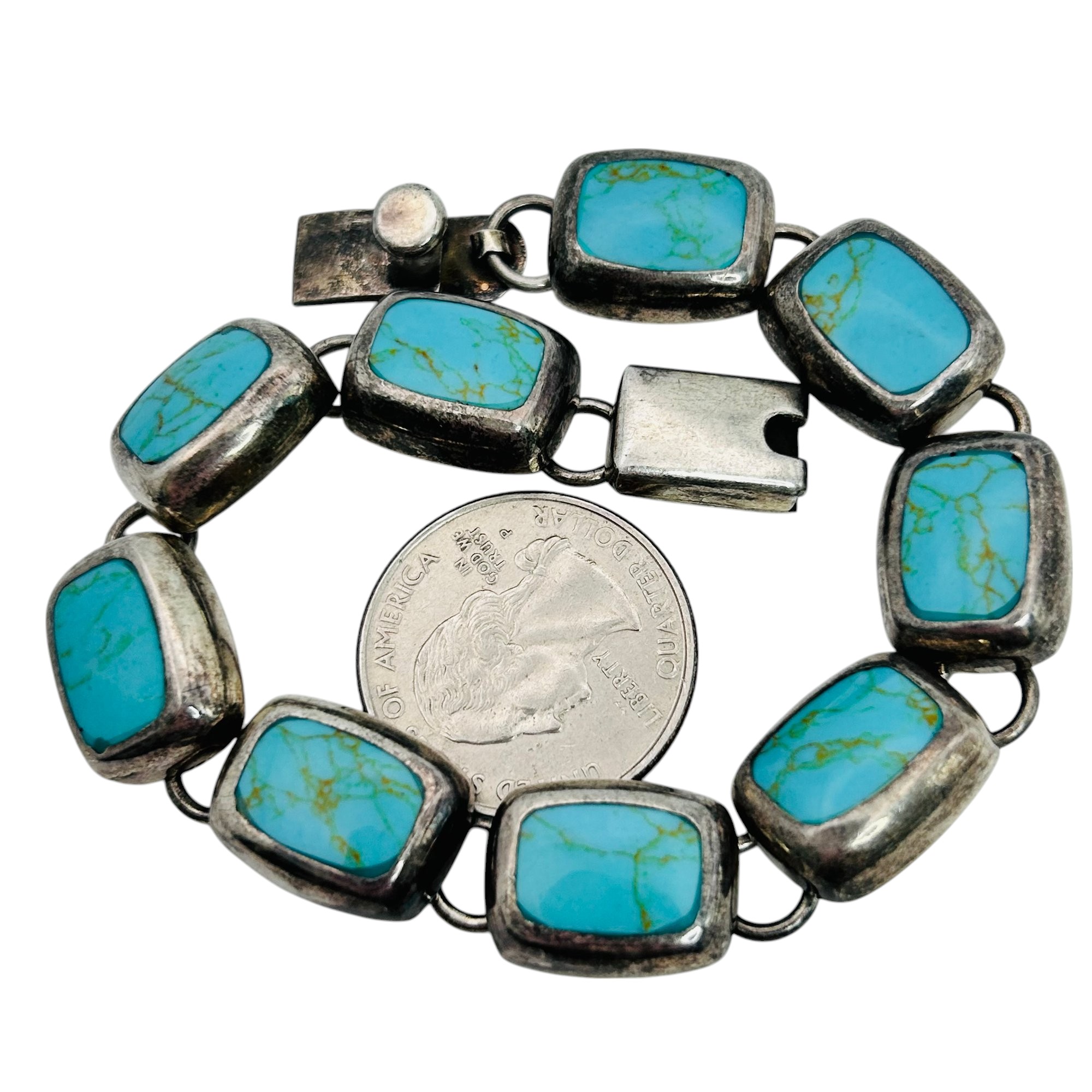 Mexico inlaid turquoise blinked Sterling bracelet 33.78 g