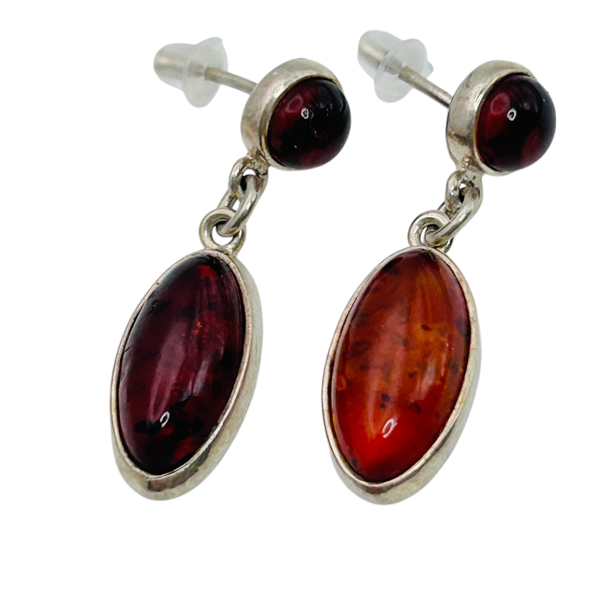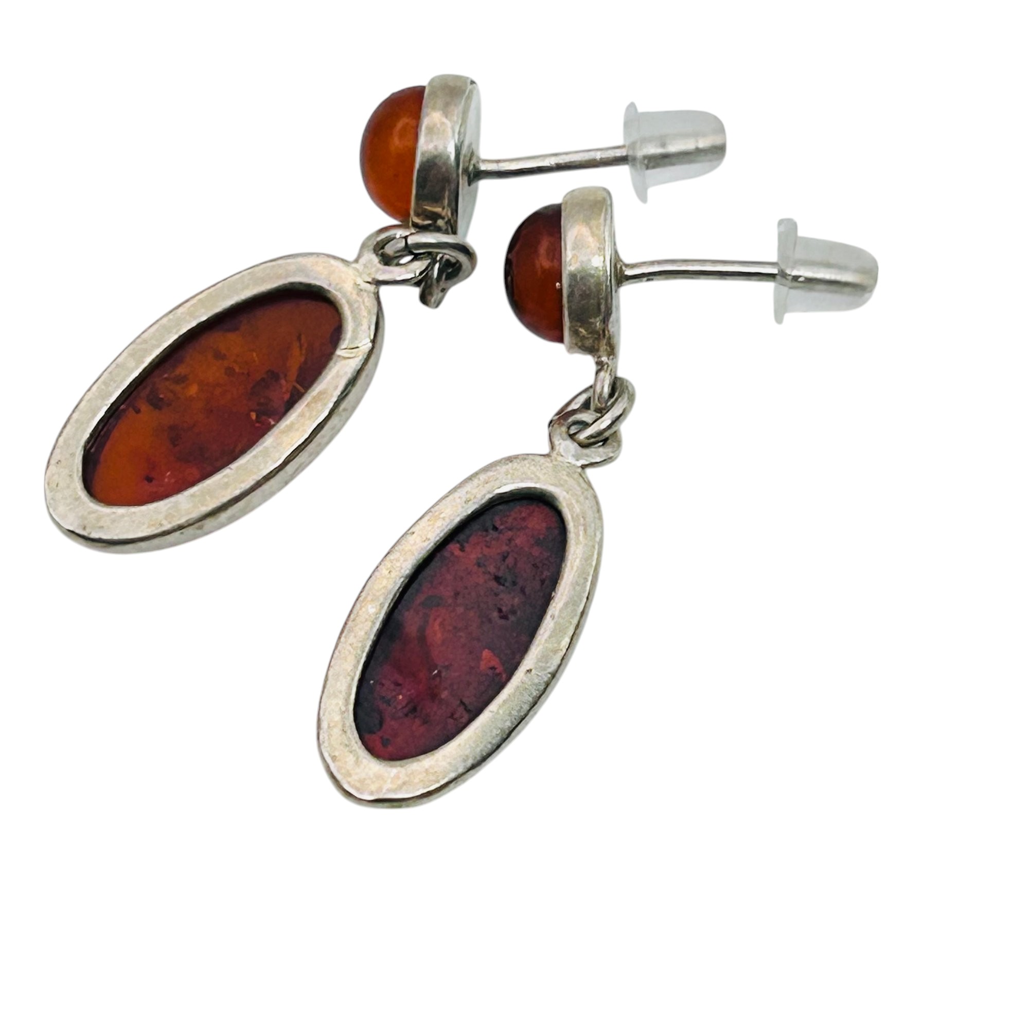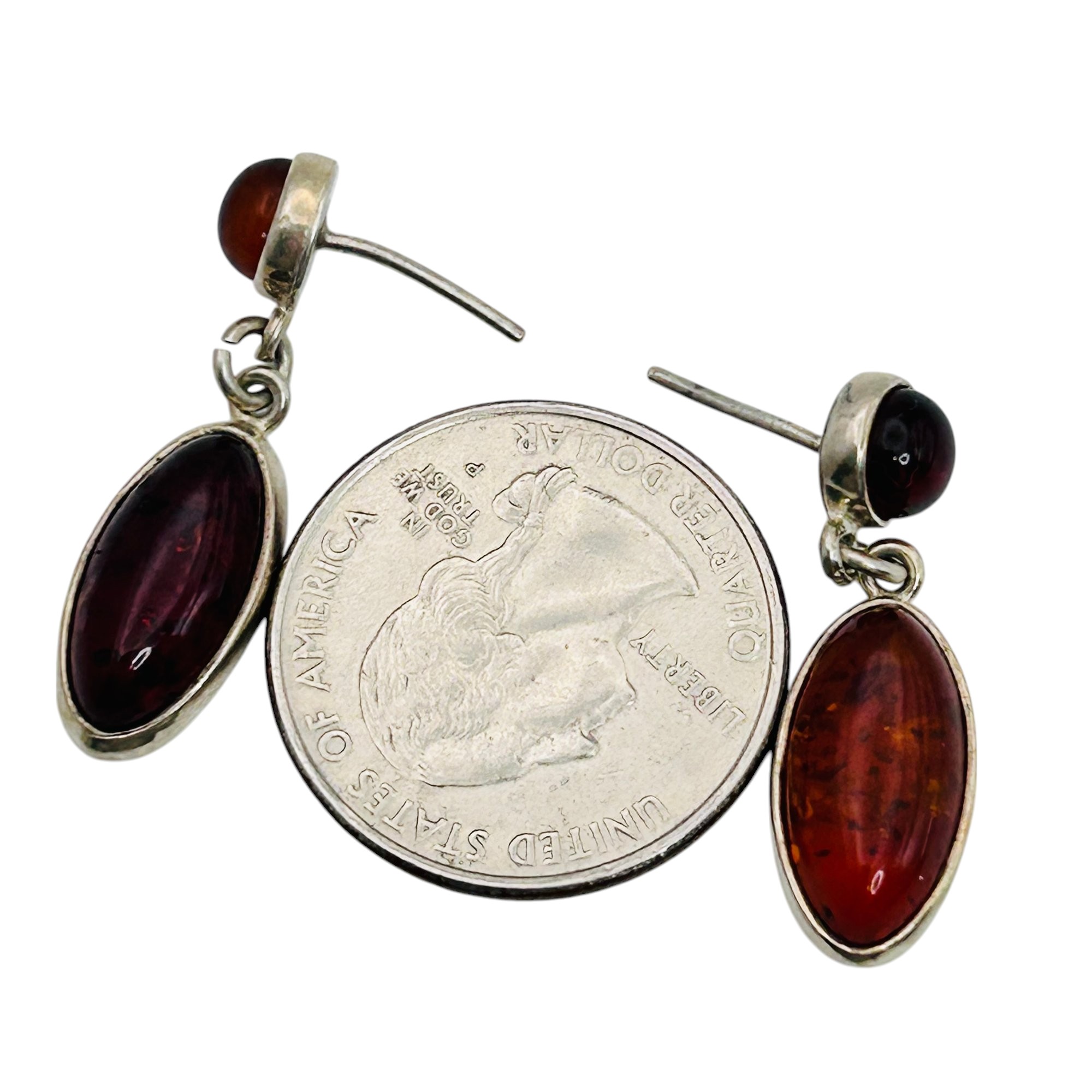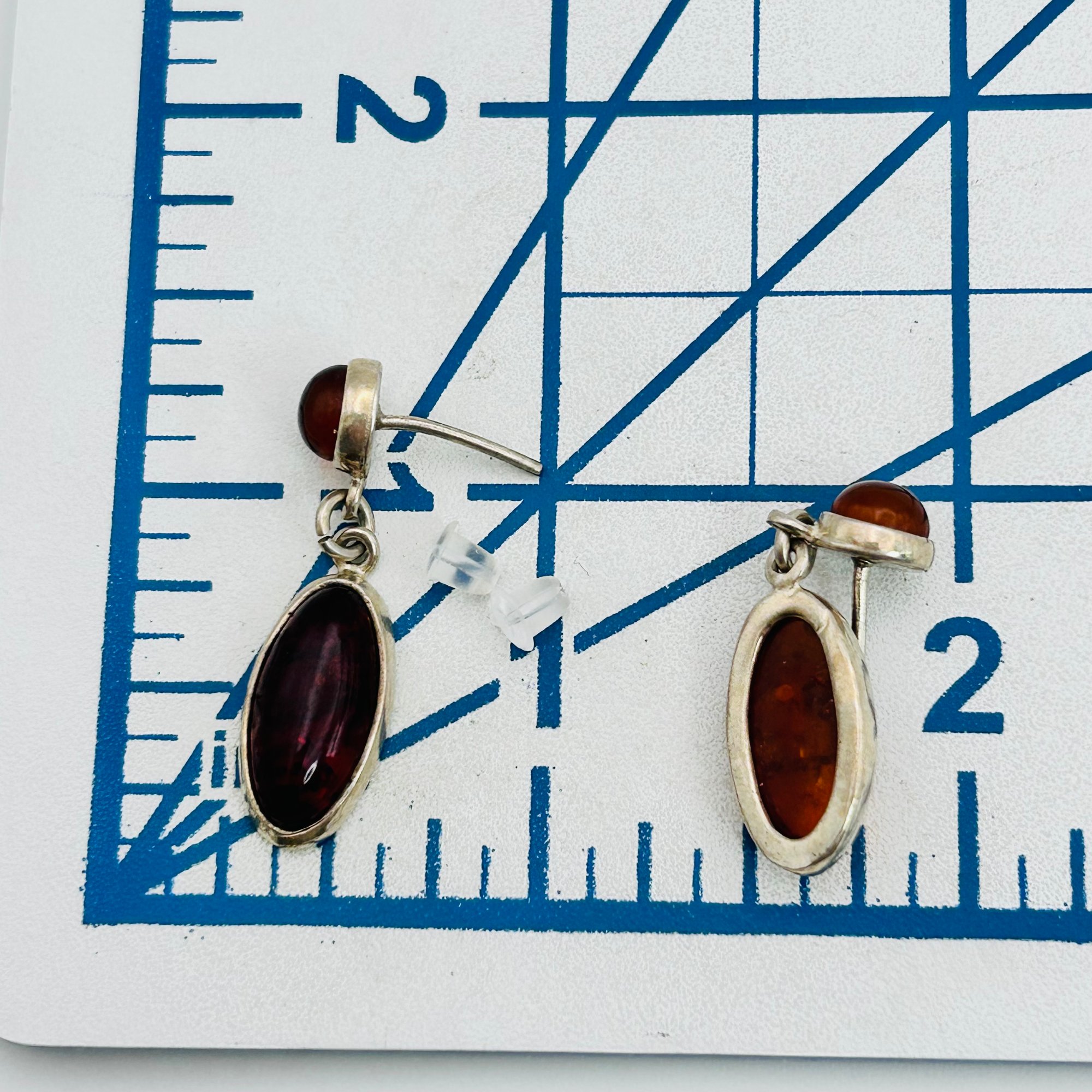 Amber Sterling Dangle Pushback Earrings 3.7 G