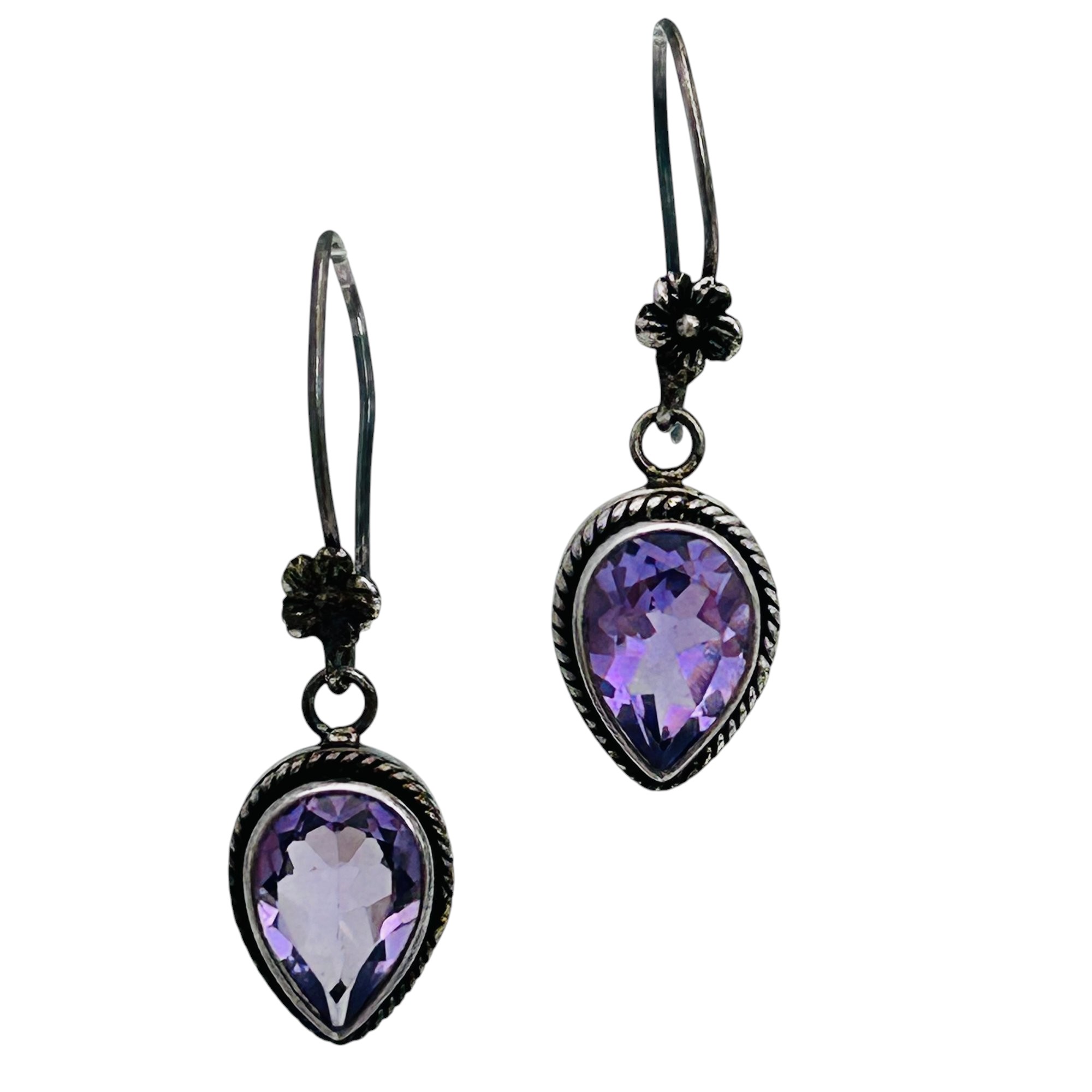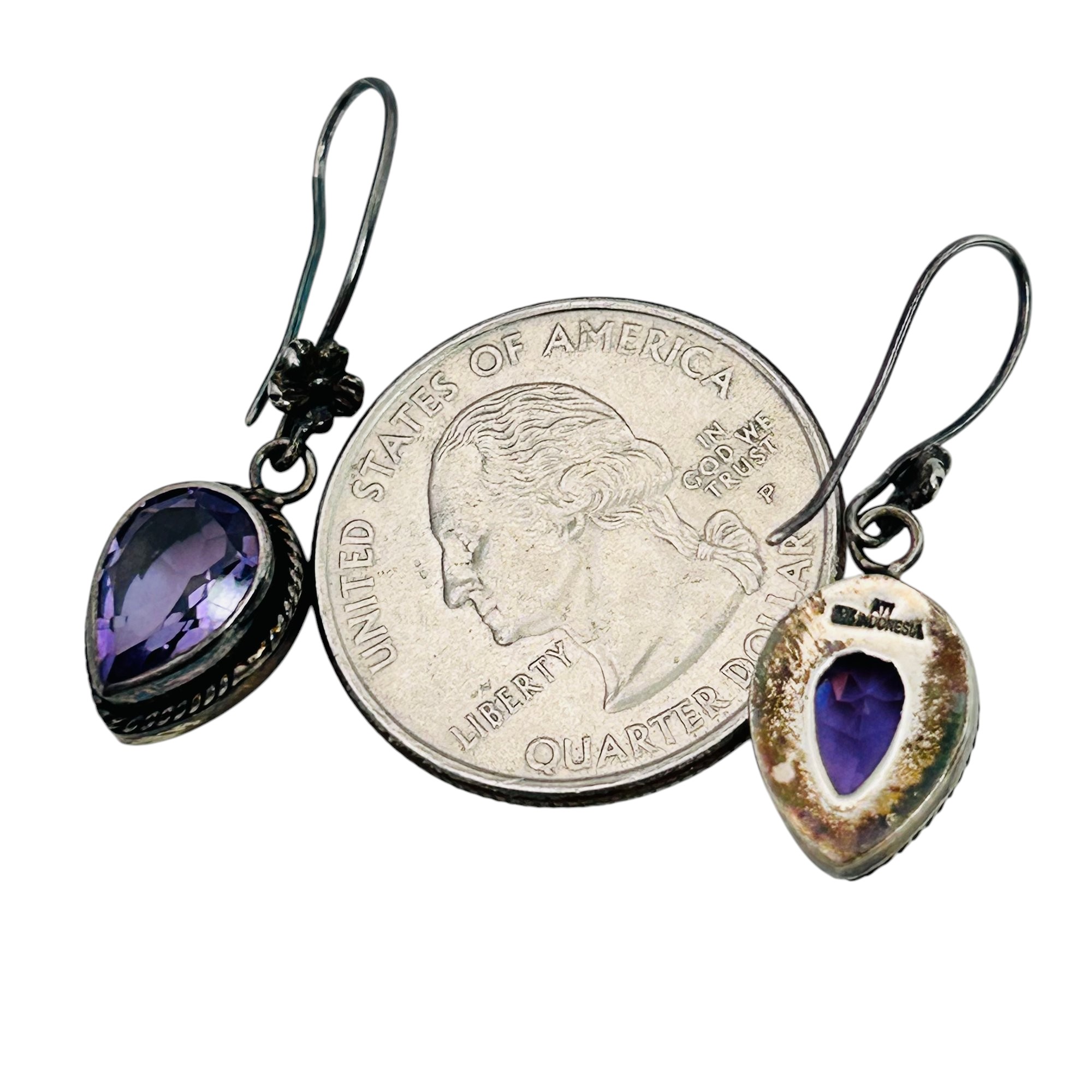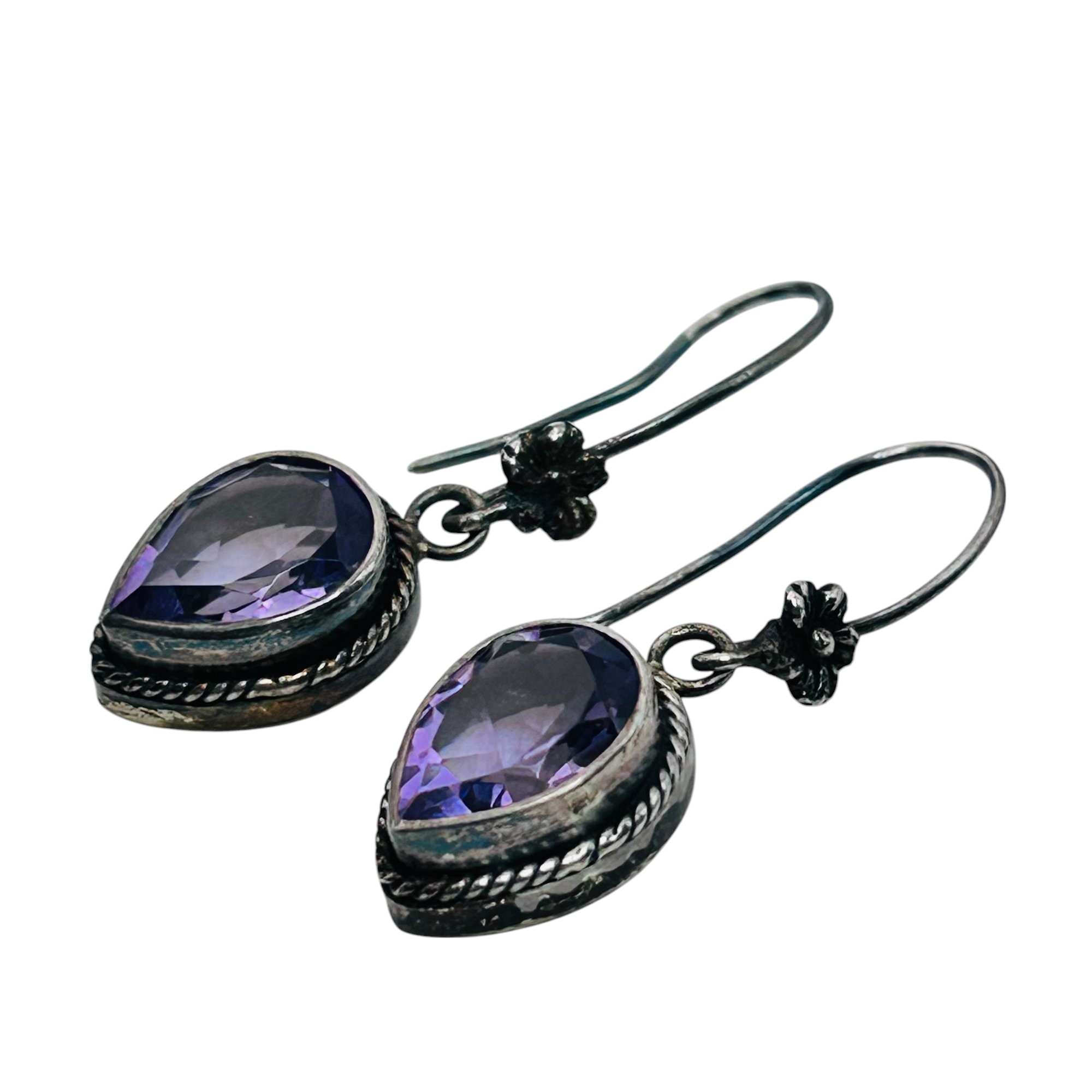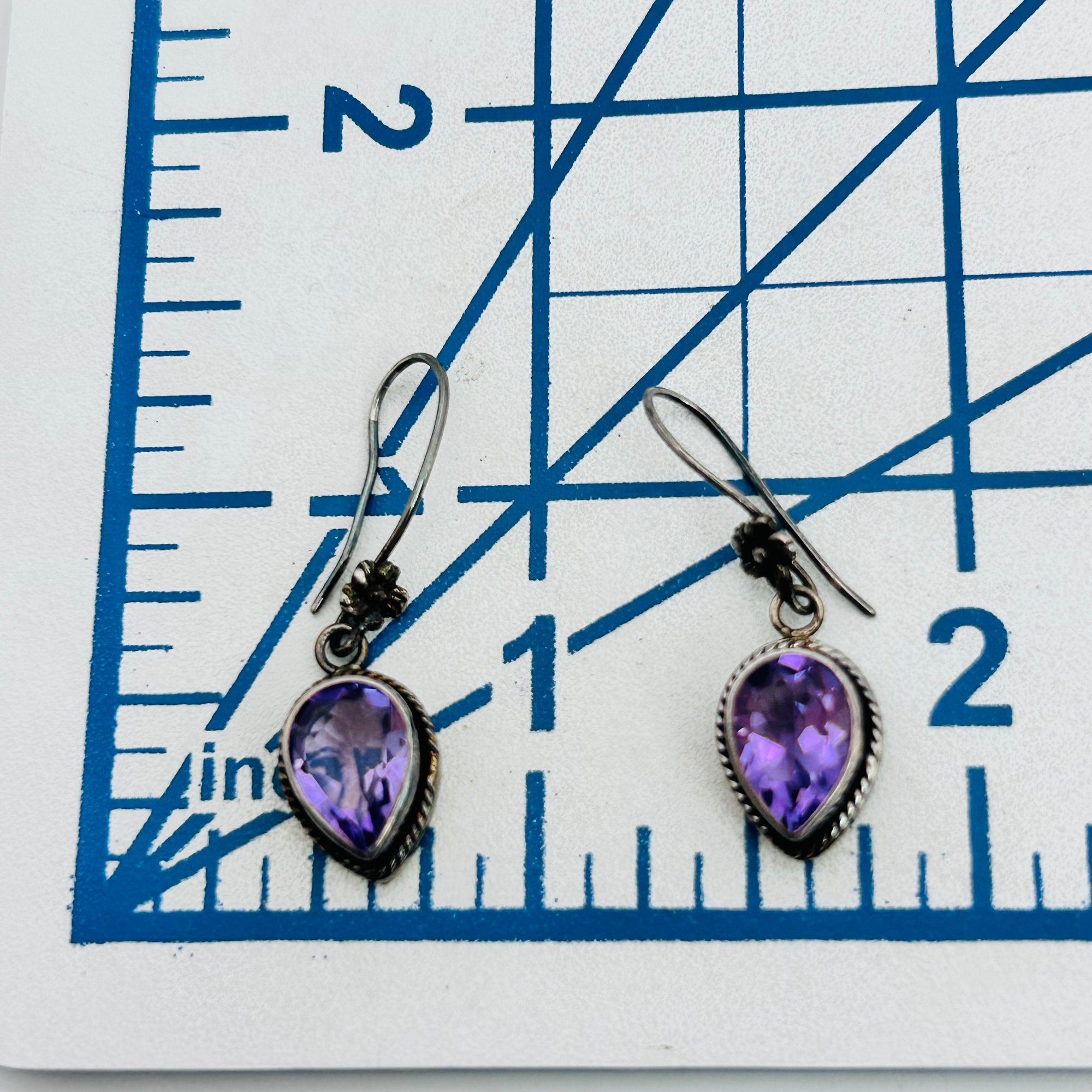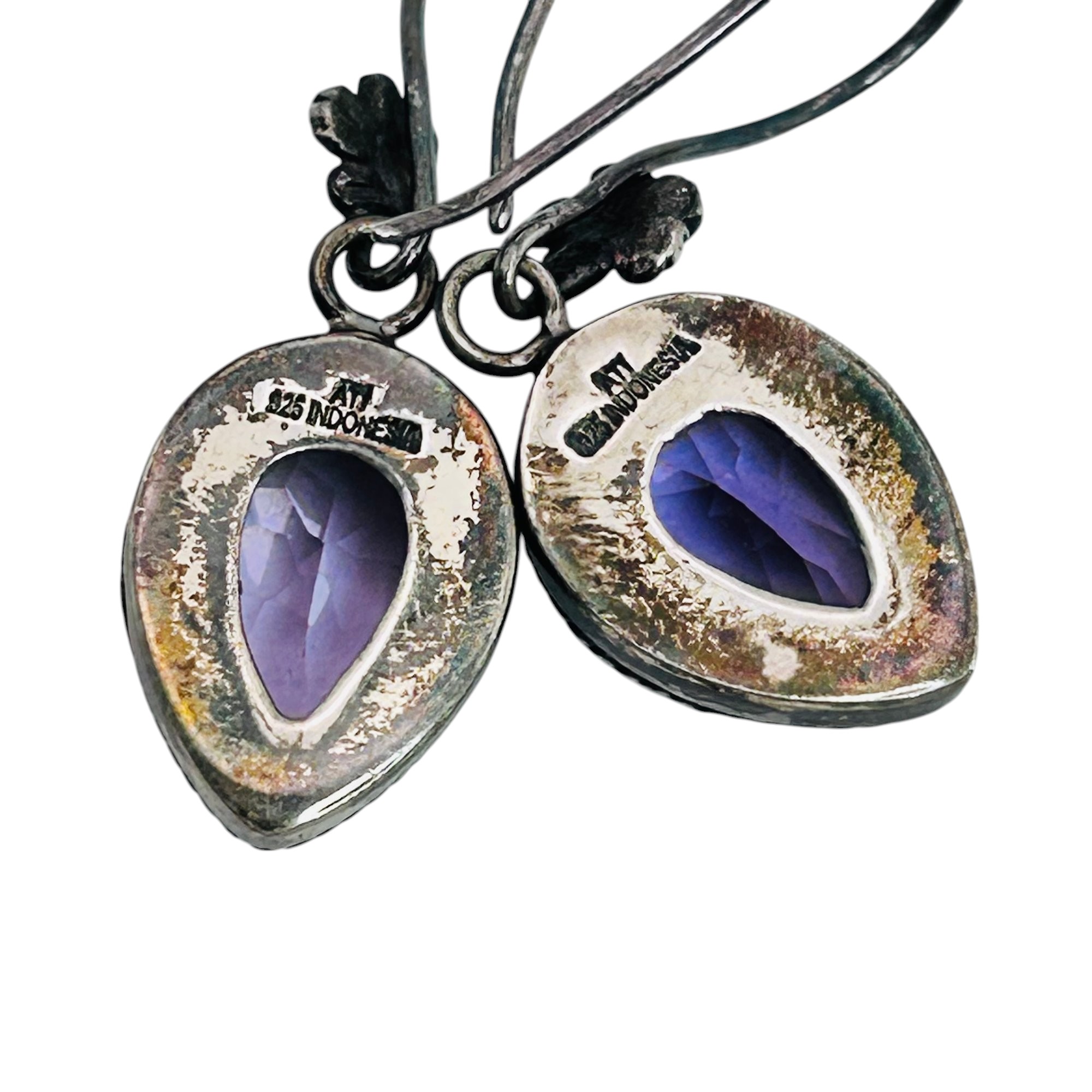 Amethyst ATI Sterling Hook dangle earrings flower detail 4.29 g